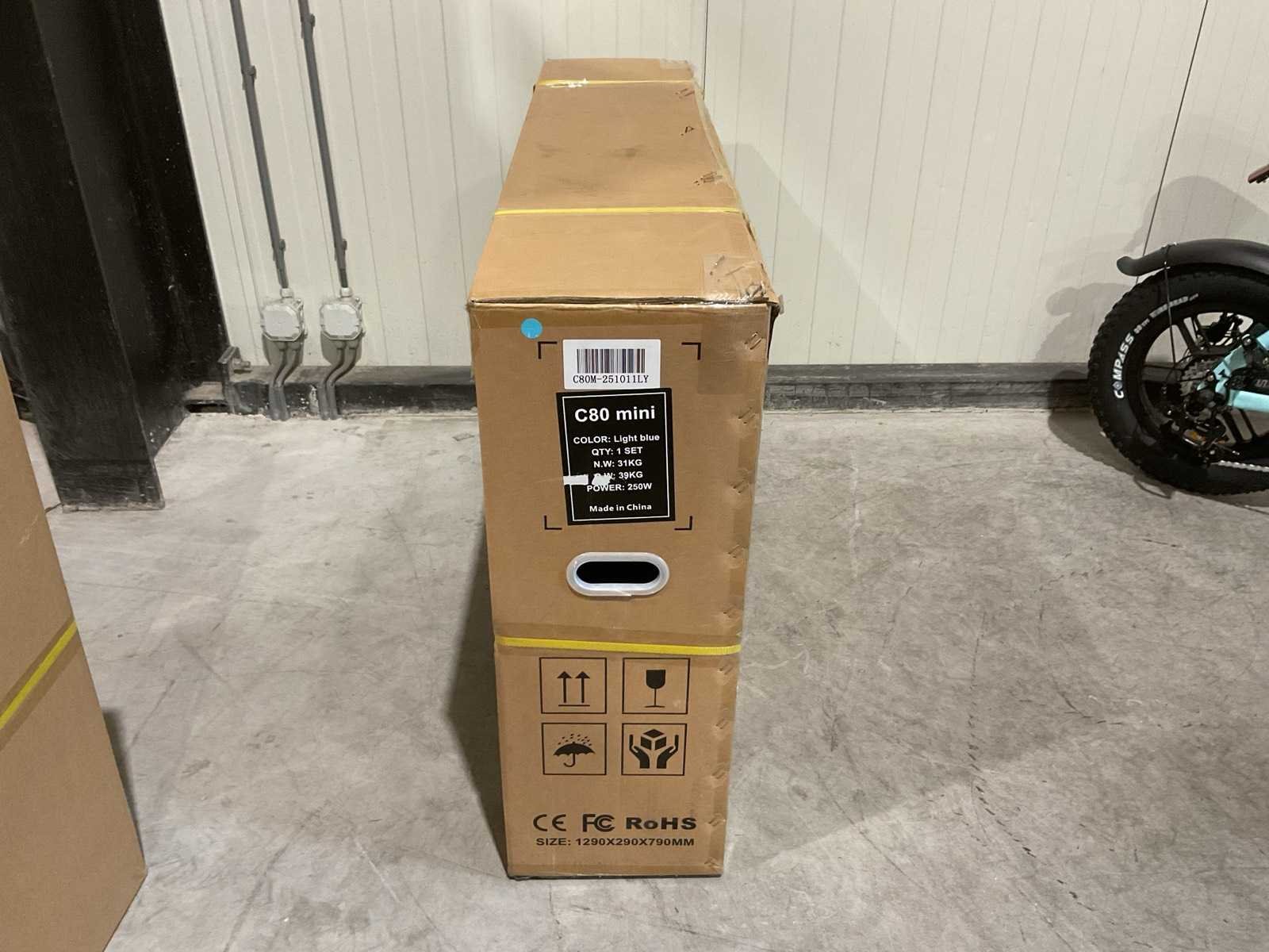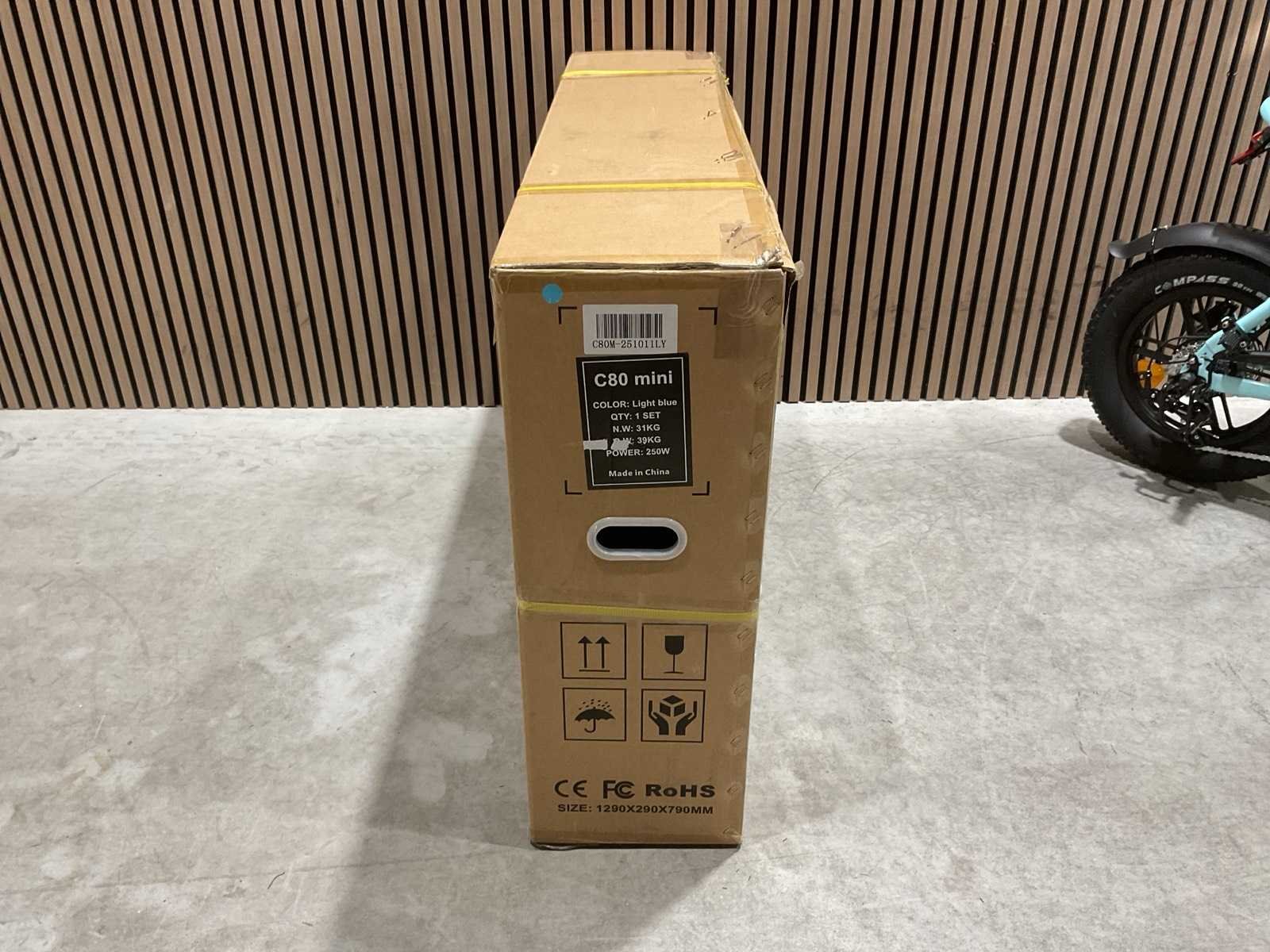Voorzien van Aandrijving: Elektrisch met trapondersteuning; Motorvermogen: 250 W; Motortype: Borstelloze elektromotor; Max. ondersteunde snelheid: 25 km/u; Aandrijving: Achterwielmotor; Accu: 36V Lithium-ion; Accucapaciteit: 10.4 Ah; Laadspanning: 100–240 V / 2A; Wielmaat: 16 inch; Transport gewicht: 39kg; Ongebruikt in doos Merk: C80 Model: Mini Product type: Light blue