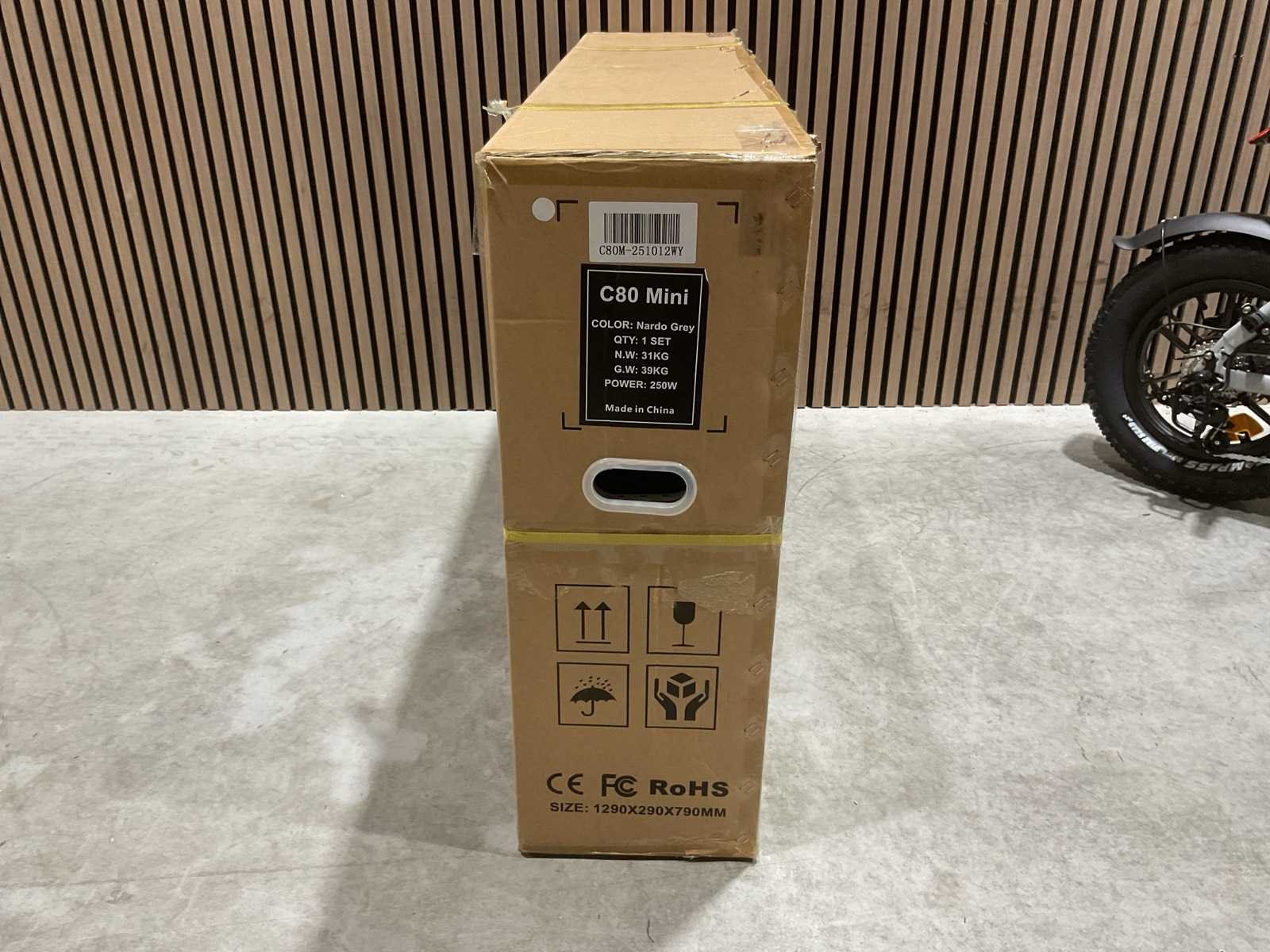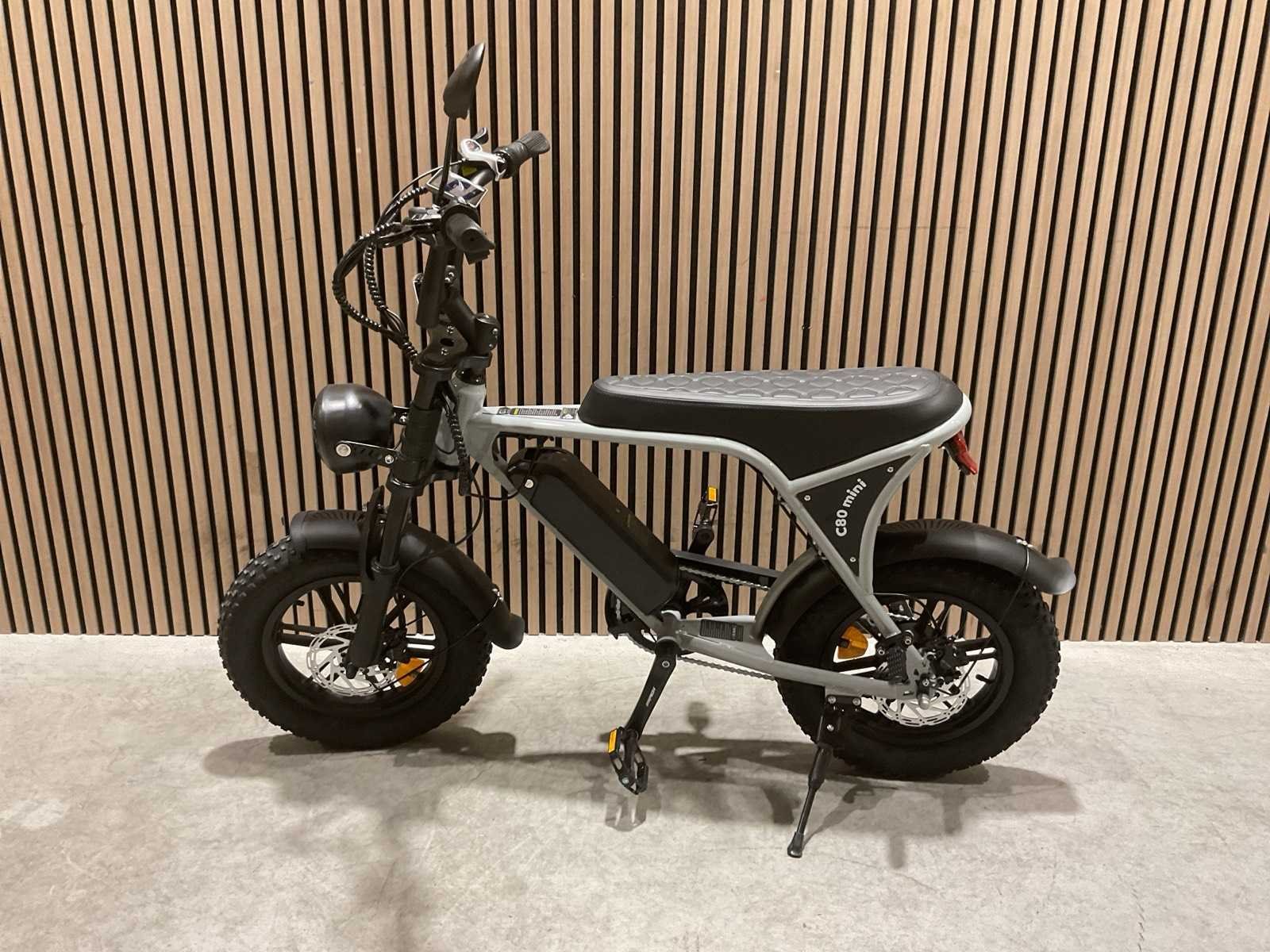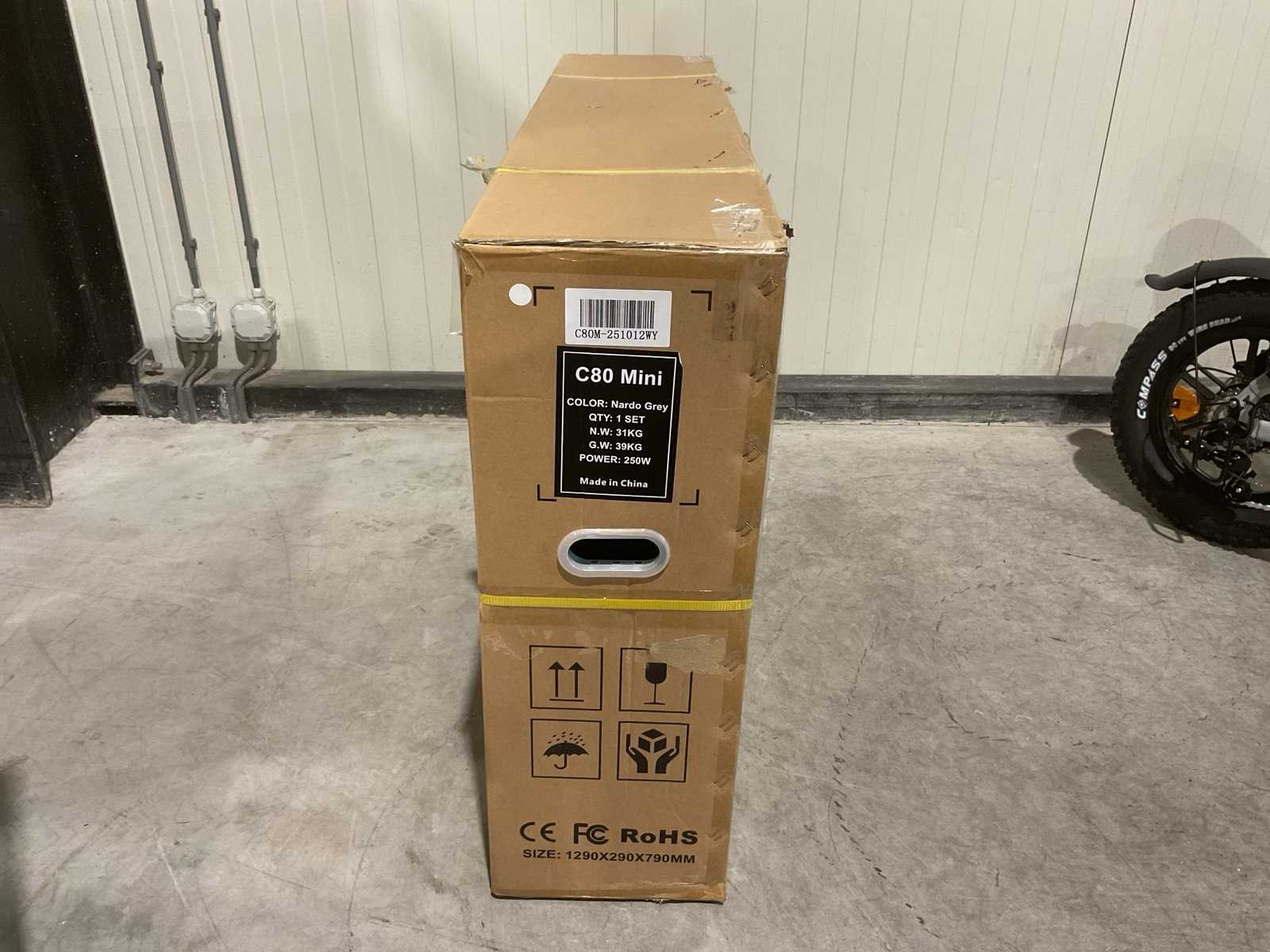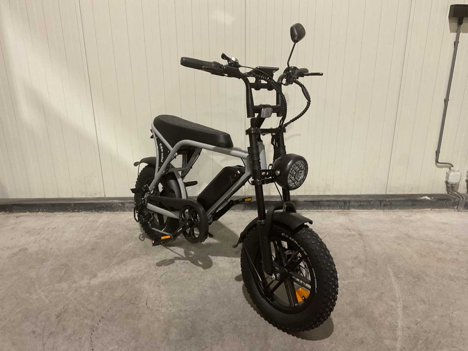Voorzien van Aandrijving: Elektrisch met trapondersteuning; Motorvermogen: 250 W; Motortype: Borstelloze elektromotor; Max. ondersteunde snelheid: 25 km/u; Aandrijving: Achterwielmotor; Accu: 36V Lithium-ion; Accucapaciteit: 10.4 Ah; Laadspanning: 100–240 V / 2A; Wielmaat: 16 inch; Transport gewicht: 39kg; Ongebruikt in doos Merk: C80 Model: Mini Product type: Nardo Grey