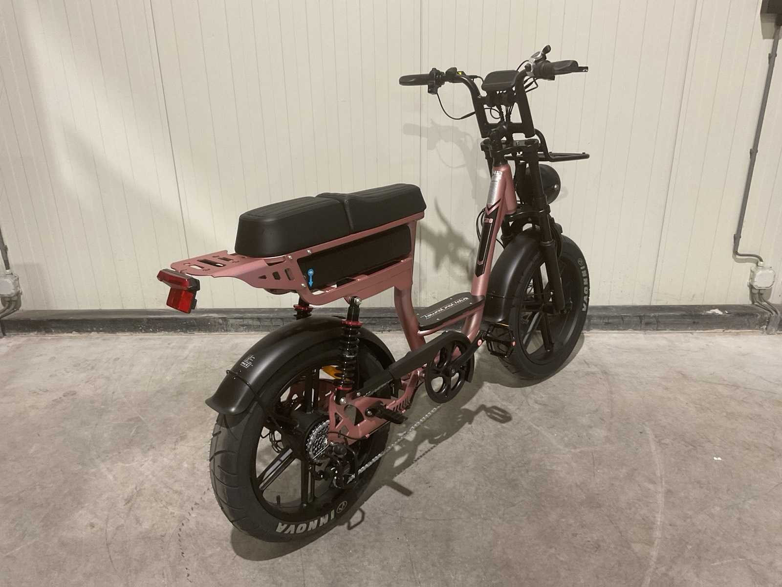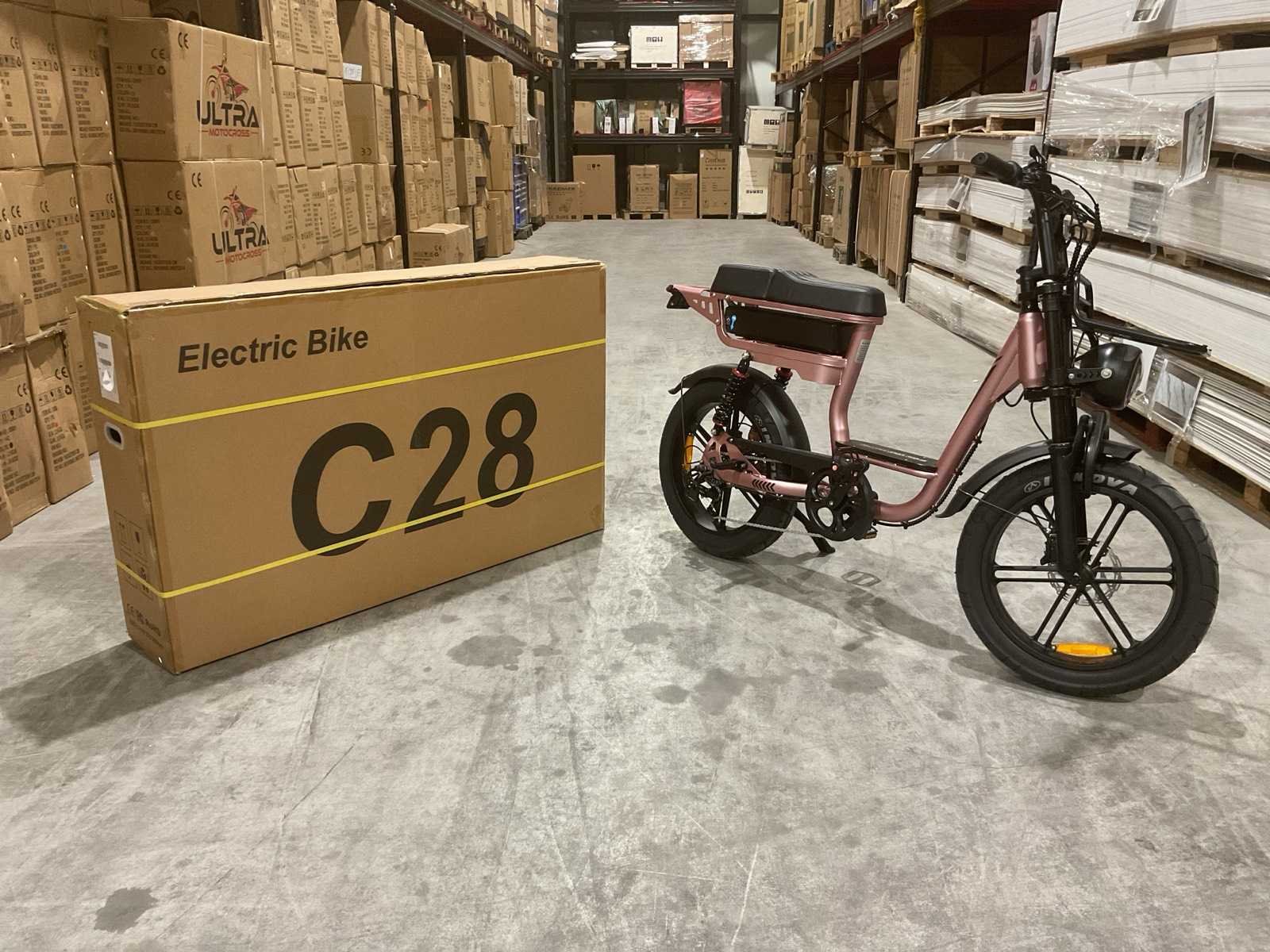 250W; Accu (Batterij) 48V/15Ah (of 15.6Ah); Maximumsnelheid 25 km/u (legaal in Nederland); Actieradius Ongeveer 60 km (gemiddelde ondersteuning); Hydraulische schijfremmen; Wielmaat 20 inch; Versnellingen 7 versnellingen; Frame Aluminium frame; Maximaal gewicht Tot 150 kg Merk: C28 Model: Roze