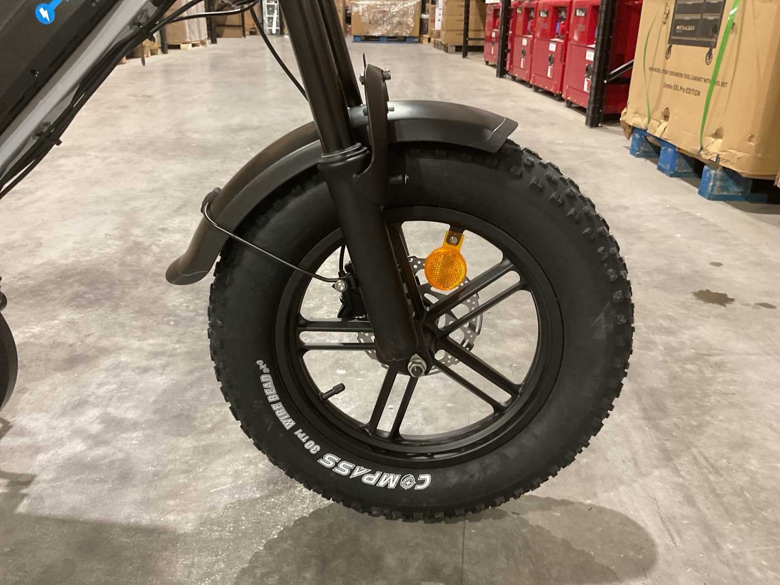 Voorzien van Elektrische aandrijving; Accu: 36V 13Ah; Lader: AC–DC 42V 2A; Ingangsspanning: 100–240V AC; Laadaansluiting: DC 5.5 × 2.1; Max. snelheid: 25 km/u; Max. draagvermogen: 150 kg; Schijfremmen; Bandmaat: 16 × 4.0 inch; Frame materiaal: Staal; Transport 1260x260x790 39,2 kg; Ongebruikt in doos Merk: V20 Model: Mini Product type: Grey Achtervering: true Voorvering: true Versnellingen: 7 Gewicht: 38.8kg Lengte: 143cm Breedte: 65cm Hoogte: 111cm