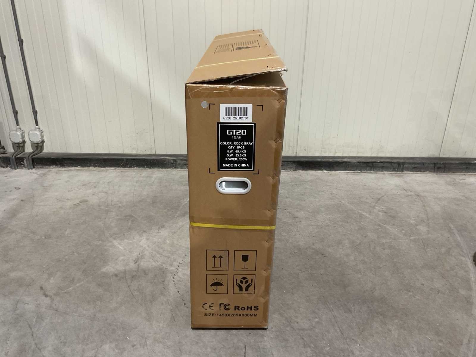 Voorzien van Elektrische trapondersteuning (EPAC); Motorvermogen (continu): 250 W; Max. toegestaan totaalgewicht: 150 kg; Max. ondersteunde snelheid: 25 km/u; Accu: 48V 15Ah; Accutype: Lithium-ion; Opladen: Externe acculader; Frame: Heavy-duty frame; Zadel: Lang zadel (2-persoons geschikt*); Mechanische schijfremmen (voor & achter); Transport 1450x285x880 / 53,6 kg; Ongebruikt in doos Merk: Ouxi Model: GT20 Product type: Rock Gray Achtervering: true Voorvering: true Versnellingen: 7 Gewicht: 45.4kg