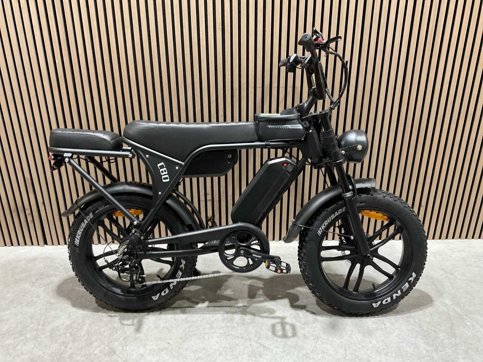 Voorzien van Motorvermogen: 250 W achterwielmotor; 2× 48V 15 Ah Accu's Maximale snelheid: tot 25 km/u; Frame: Robuust staal; Remmen: Hydraulische schijfremmen voor en achterBanden: 20 × 4.0 inch; Vering: Voorvorkvering voor comfortabeler rijden; Versnellingen: Shimano 7-speed derailleur; LCD display; transport gewicht: 49kg Merk: Ouxi Model: C80 Product type: Zwart dubbel accu