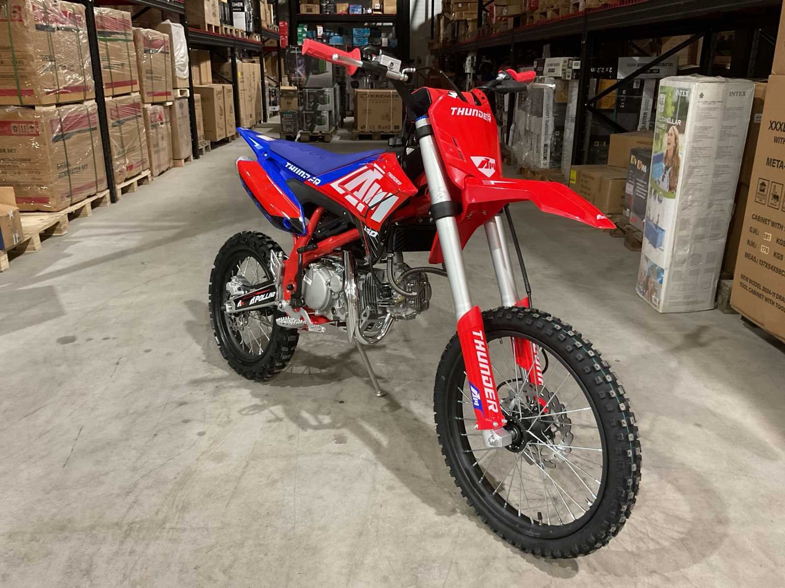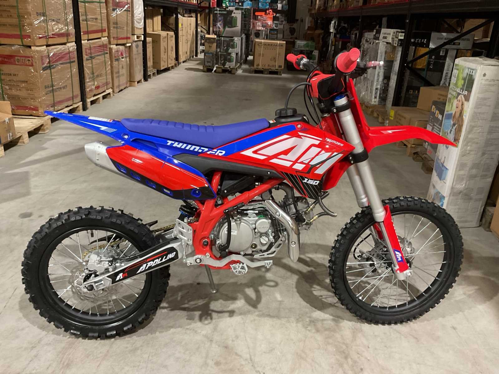 Voorzien van 150 cc motor; 4 takt; kick start; olie gekoeld; bandenmaat voor 19” inch achter 16” inch; hydraulische vering voor en achter; schijfremmen; ongebruikt in doos (transport afmetingen 150x40x75 cm) Merk: Ultra Motocross Type: Thunder 150 BL Brandstof: Benzine 4 Takt Cilinderinhoud: 150cc Gewicht: 91kg Transmissie: Schakel Aantal sleutels: 2