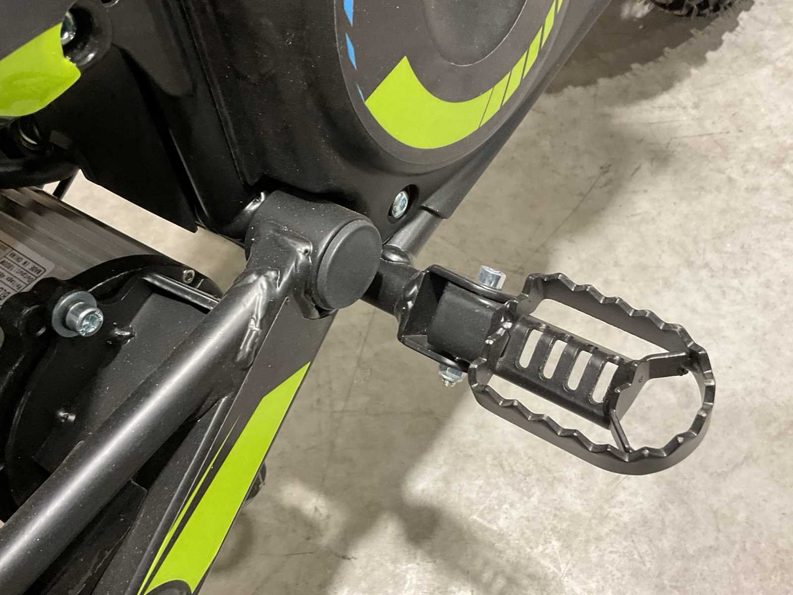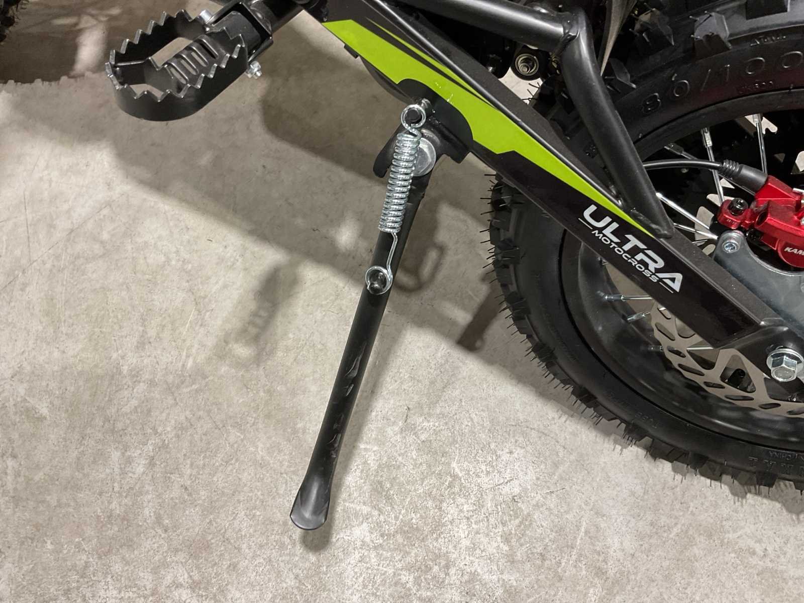 Voorzien van Accu: 48V13Ah lithium; Transmissie: intelligente controller, instelbaar in 2 functies; Gasrespons instelbaar van 0,2S tot 1,0S; Maximale snelheid instelbaar van 10 km/u - 55 km/u (1800W); Eindaandrijving: voor 10T / achter 76T; Actieradius per volle lading (13Ah lithium accu): ~24 km; Velg & banden: Velg met stalen spaken, voor 14" en achter 12"; Band: voor 2,75-14" / achter 3,00-12"; Max. Snelheid: 55 km/u (1800 W); Max. draagvermogen: 65 kg; Remsysteem: mechanische rem/schijf voor en achter (Ø 180 mm); Vering: hydraulische upside-down vork en monoshock achter; Afmetingen (L*B*H): 1470*640*920 mm; Wielbasis: 1010 mm; Zithoogte: 680 mm; Minimale bodemvrijheid: 300 mm; Gewicht: 38 kg; Ongebruikt in doos (Transport afmetingen 129x37x66cm 49kg) Merk: Ultra Motocross Model: ULD01 GR Type: 1800W 48v Brandstof: Electrisch Gewicht: 39kg Kleur: Groen Bouwjaar: 2025