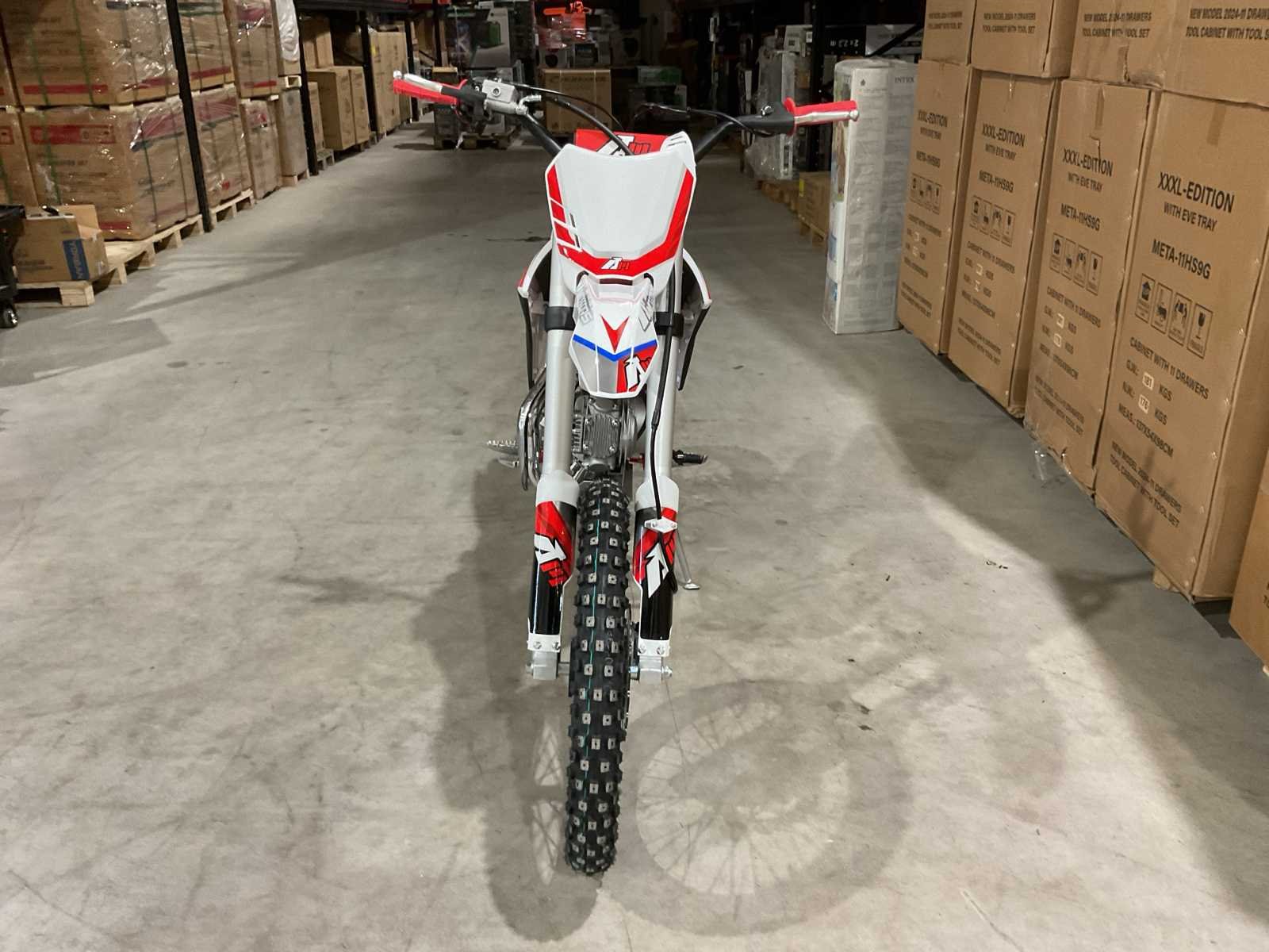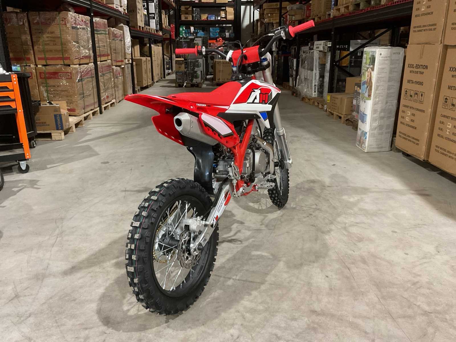 Voorzien van 125 cc motor; 4 takt; kick start; bandenmaat voor 19” inch achter 16” inch; hydraulische vering voor en achter; schijfremmen; ongebruikt in doos (transport afmetingen 150x40x75 cm) Merk: Ultra Motocross Type: Thunder 125 RD Brandstof: Benzine Cilinderinhoud: 125cc Gewicht: 91kg Kleur: Rood Transmissie: Schakel Aantal sleutels: 2