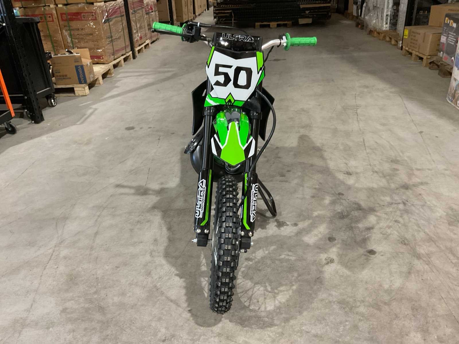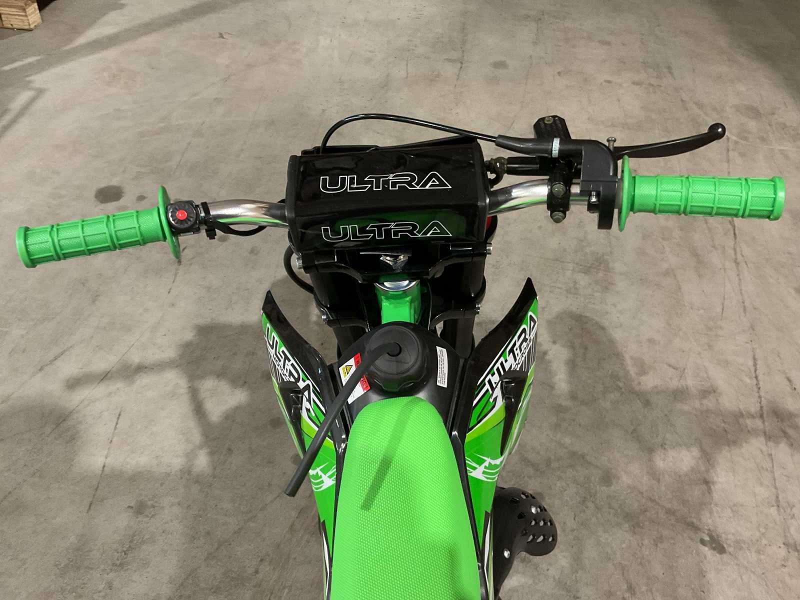 Voorzien van 50cc motor; 2 takt; 9 HP; hydraulische schijfremmen; bandenmaat voor 14” inch achter 12” inch; KTM look a like; ongebruikt in doos (transport afmetingen 135x40x75 cm 56kg) Merk: Ultra Motocross Type: Koshine 50cc 14/12” GR Cilinderinhoud: 50cc Gewicht: 49kg Kleur: Groen Transmissie: Automaat Aantal sleutels: 2 Bouwjaar: 2025