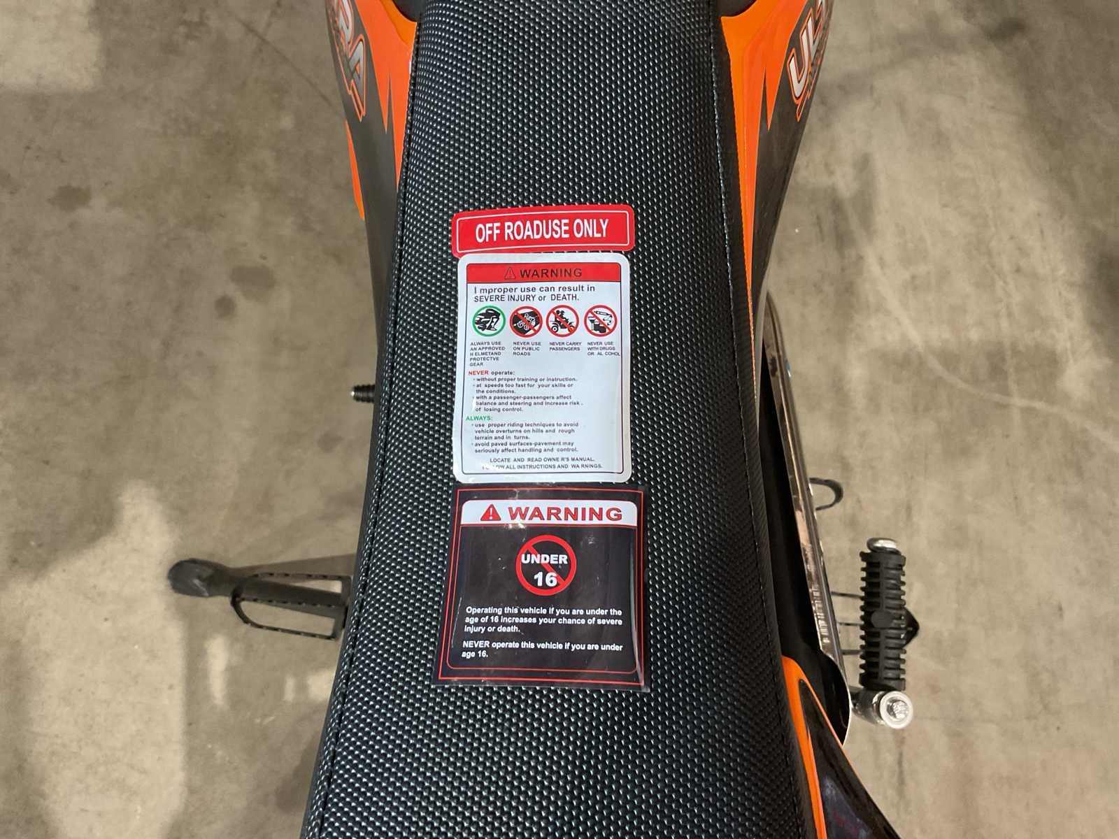 Voorzien van 110cc motor; Manuele koppeling; kickstart; Wiel/velg: V: 90/100-14 (14") A: 70/100-17 (17"); Hydraulische schijfrem; olieschokdemper; Enkele stalen uitlaatpijp; Maximale snelheid: 70 km/u; Ongebruikt in doos (Transport verpakking: 1295 x 375 x 620 mm 75kg) Merk: Ultra Motocross Model: DB001 OR Type: 110CC Cilinderinhoud: 110cc Gewicht: 68kg Kleur: Oranje zwarte zadel Transmissie: Manuele Bouwjaar: 2025