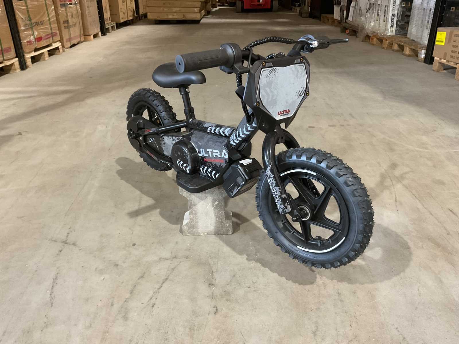 Voorzien van 200W elektrische motor; 2 verschillende snelheden; verstelbaar zadel; verwijderbare accu; bandenmaat 12” inch; ongebruikt in doos (transport afmetingen 90x25x45 cm) Merk: Ultra Motocross Product type: TRX200 ZW Kleur: Zwart Gewicht: 10kg Lengte: 90cm Breedte: 25cm Hoogte: 45cm