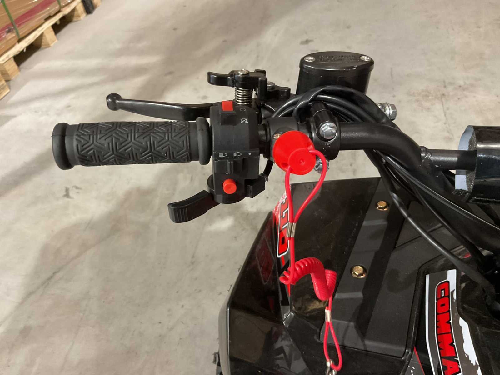 Voorzien van elektrische start; bandenmaat 7” inch; hydraulische schijfremmen; 2 sleutels; ongebruikt in krat (transport afmeting 120x75x65 cm) Merk: Ultra Motocross Product type: Commander 110 ZW Gewicht: 95kg Transmissie: Semi automaat Bouwjaar: 2025 Cilinderinhoud: 110cc Brandstof: Benzine Kleur: Zwart