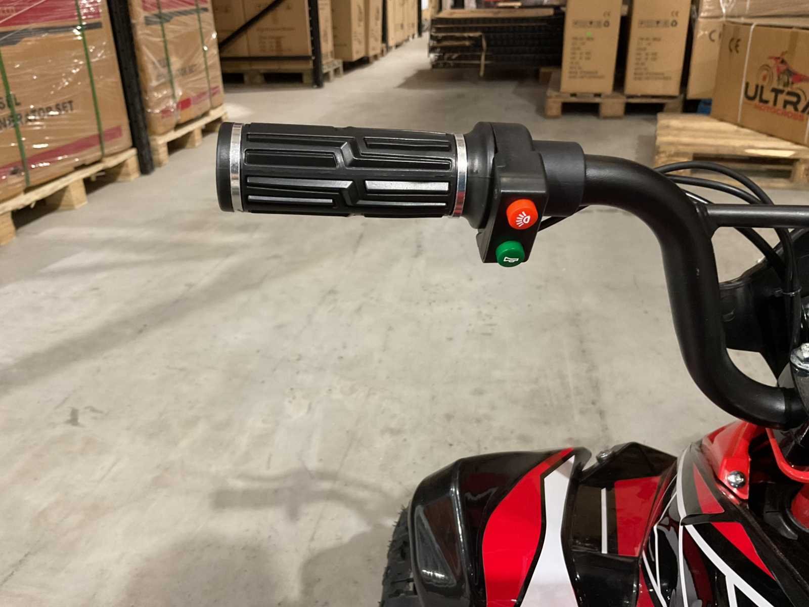 Voorzien van 1000W 36V elektrische motor; ouderen sleutel 3 verschillende snelheden; achterwielaandrijving; bandenmaat 6” inch; 2 sleutels; ongebruikt in doos (transport afmetingen 100x55x45 cm 48kg) Merk: Ultra Motocross Model: MA03E Product type: ATX 1000 RD Gewicht: 45kg Aantal sleutels: 2 Transmissie: Automaat Bouwjaar: 2025 Vermogen (kW): 1kW Brandstof: Elektrisch Kleur: Rood