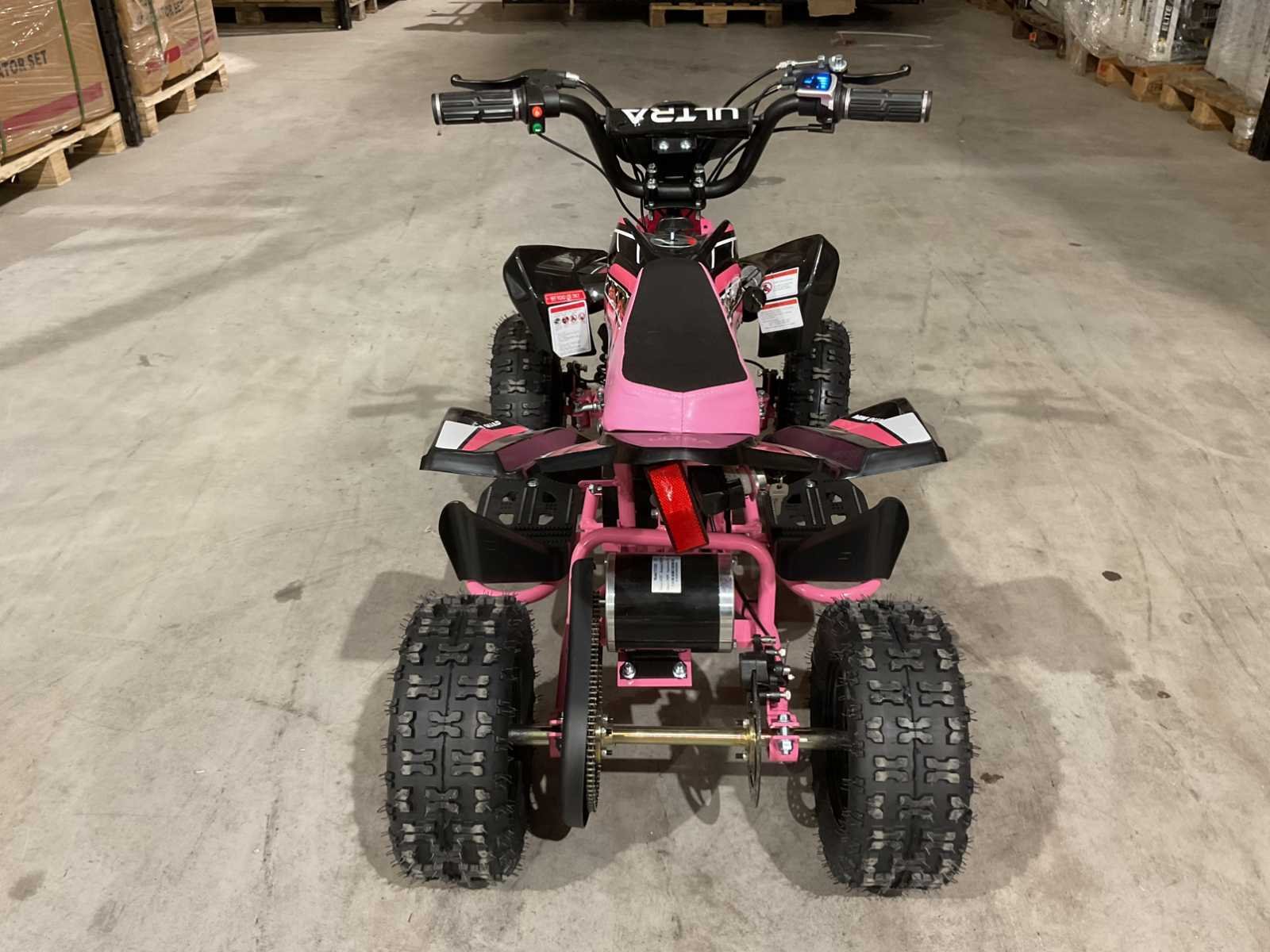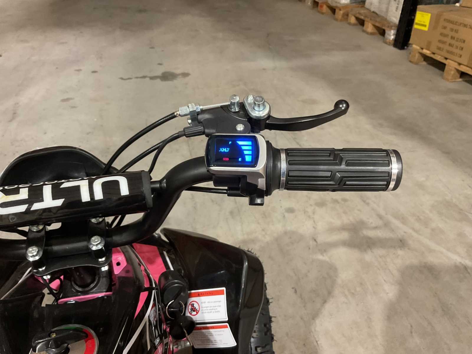 Voorzien van 1000W 36V elektrische motor; ouderen sleutel 3 verschillende snelheden; achterwielaandrijving; bandenmaat 6” inch; 2 sleutels; ongebruikt in doos (transport afmetingen 100x55x45 cm 48kg) Merk: Ultra Motocross Model: MA03E Product type: ATX 1000 RZ Gewicht: 45kg Aantal sleutels: 2 Transmissie: Automaat Bouwjaar: 2025 Vermogen (kW): 1kW Brandstof: Elektrisch Kleur: Roze Lengte: 100cm Breedte: 55cm Hoogte: 45cm