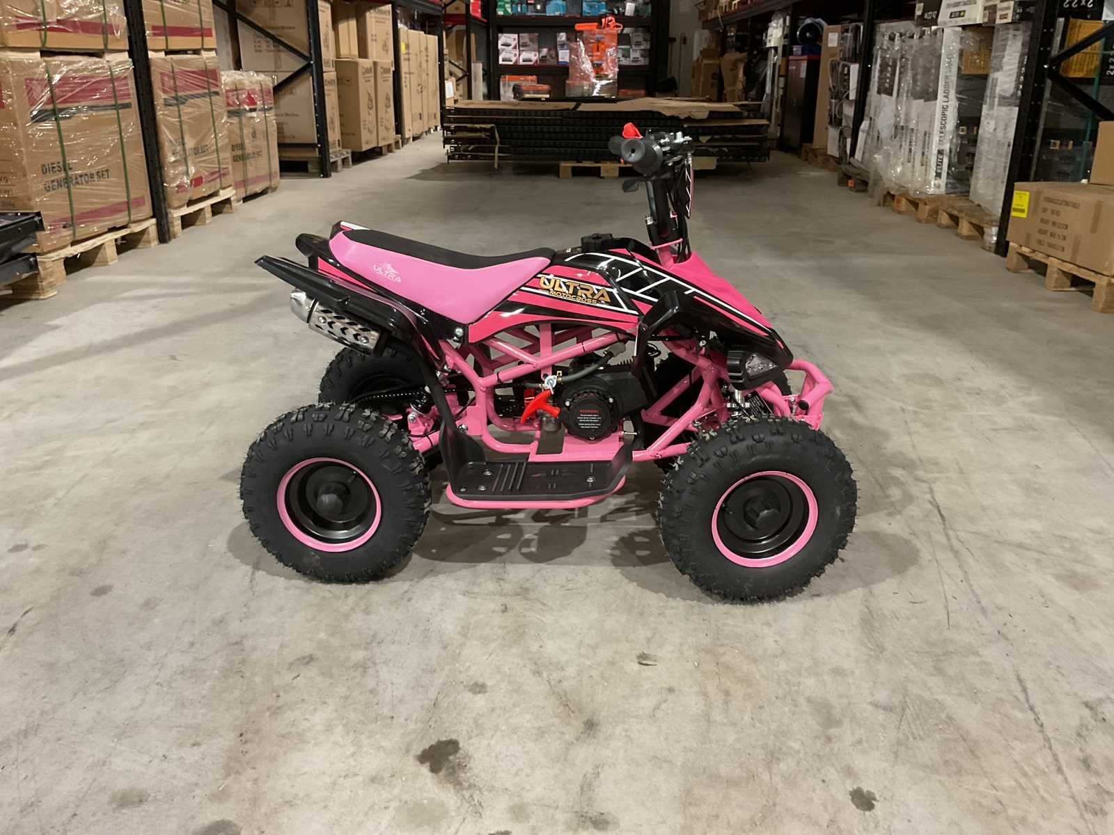 Voorzien van 49cc benzine motor; 2 takt; trek start; 3 verschillende snelheden; kill-switch; bandenmaat 6” inch; 2 sleutels; ongebruikt in doos (transport afmetingen 100x55x45 cm 36kg) Merk: Ultra Motocross Model: MA03 Product type: ATX 49 RZ Gewicht: 34kg Aantal sleutels: 2 Transmissie: Automaat Bouwjaar: 2025 Cilinderinhoud: 49cc Brandstof: Benzine 2 Takt Kleur: Roze