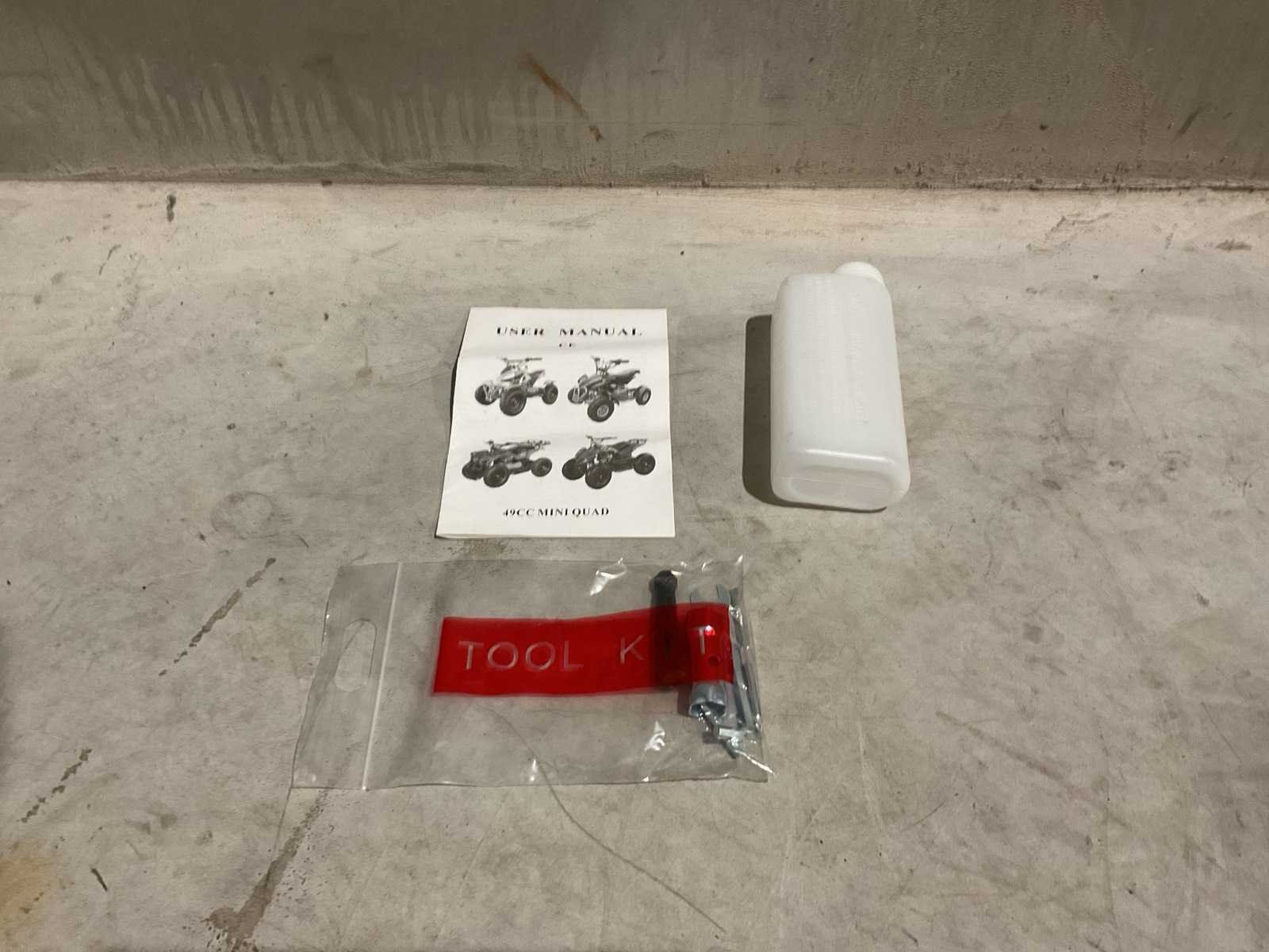 Voorzien van 49cc benzine motor; luchtgekoeld; trekstart; automaat; trekstart; schijfremmen; twee sleutels; ongebruikt in doos Merk: MMX Model: TWHHATV-008 Product type: Blauw