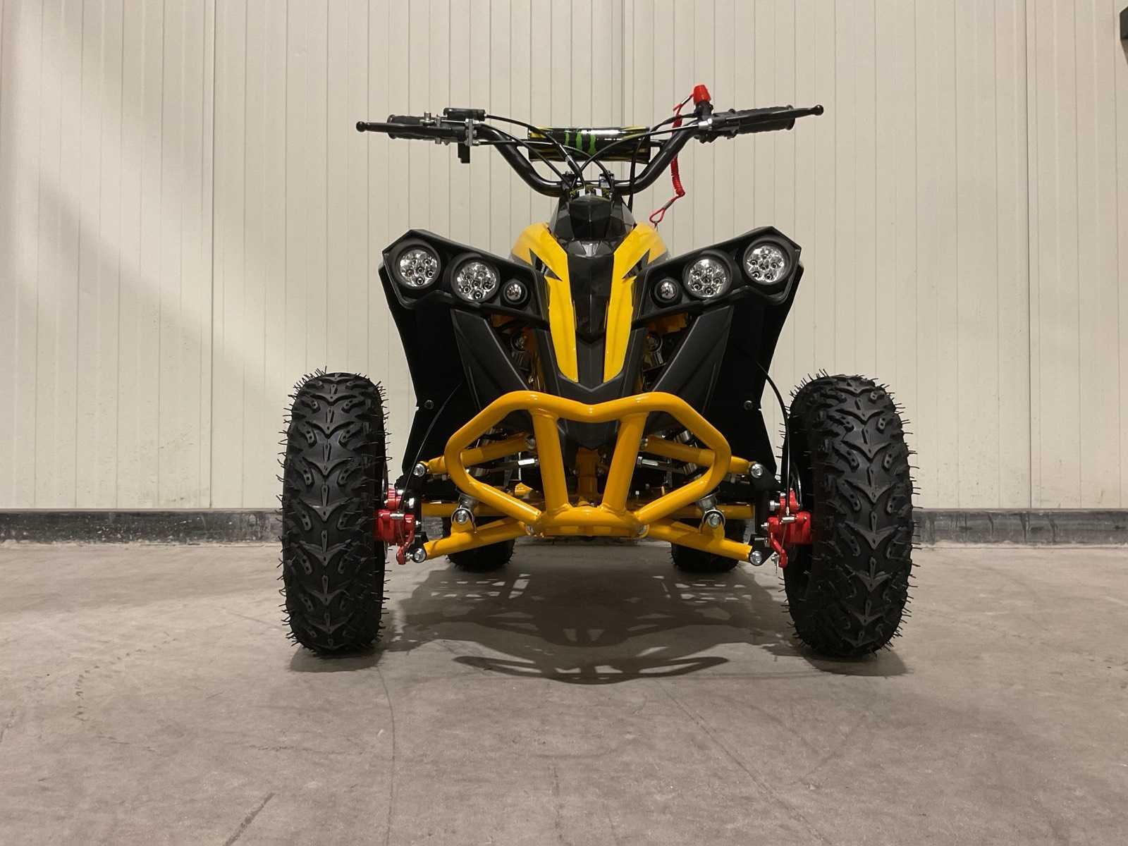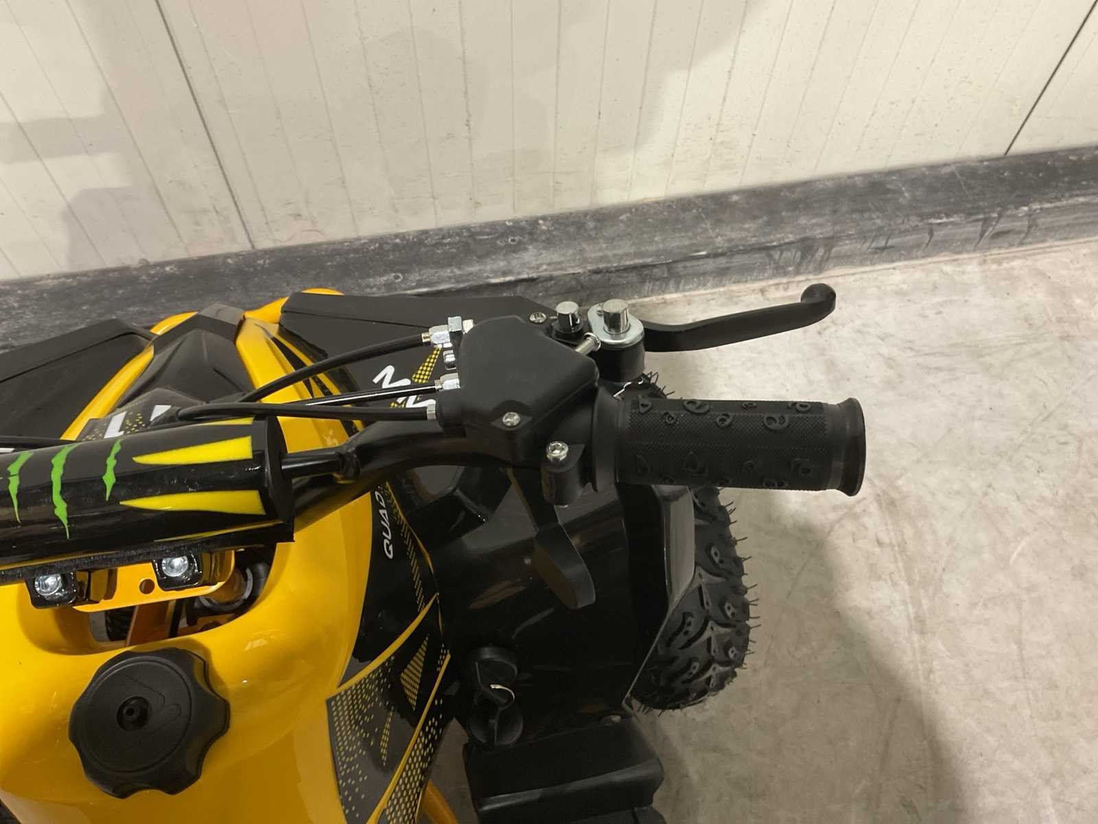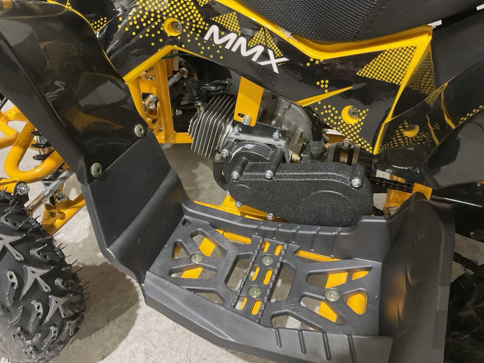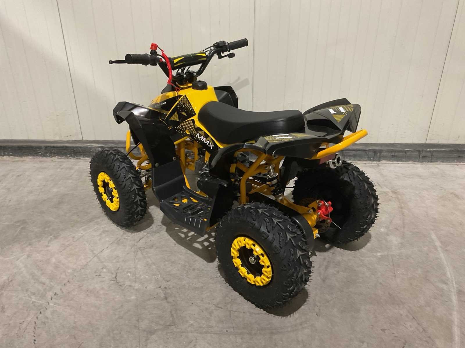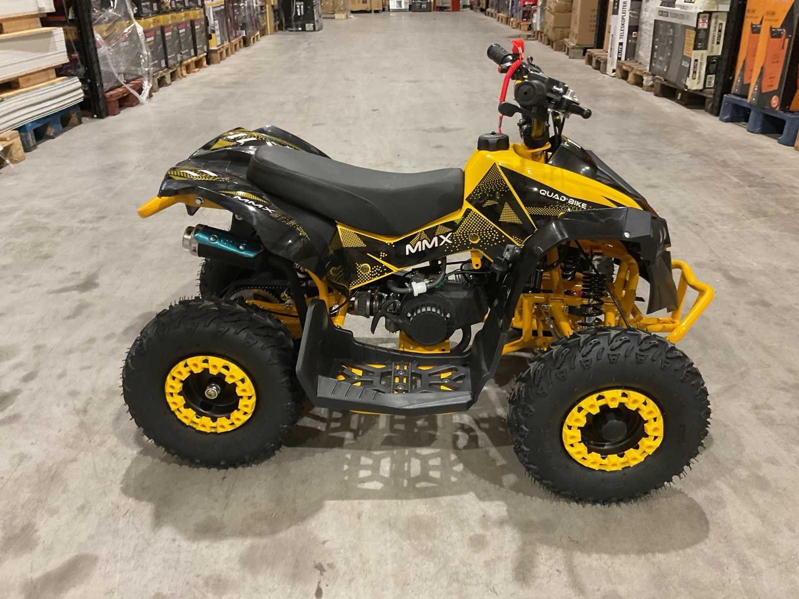 Voorzien van 49cc benzine motor; luchtgekoeld; trekstart; automaat; trekstart; schijfremmen; twee sleutels; Transport afmetingen: 105x62x52 cm; transport gewicht: 46kg; ongebruikt in doos Merk: MMX Model: TWHHATV-008 Product type: Geel Gewicht: 42kg Aantal sleutels: 2 Transmissie: Automaat Lengte: 120cm Breedte: 70cm Hoogte: 74cm