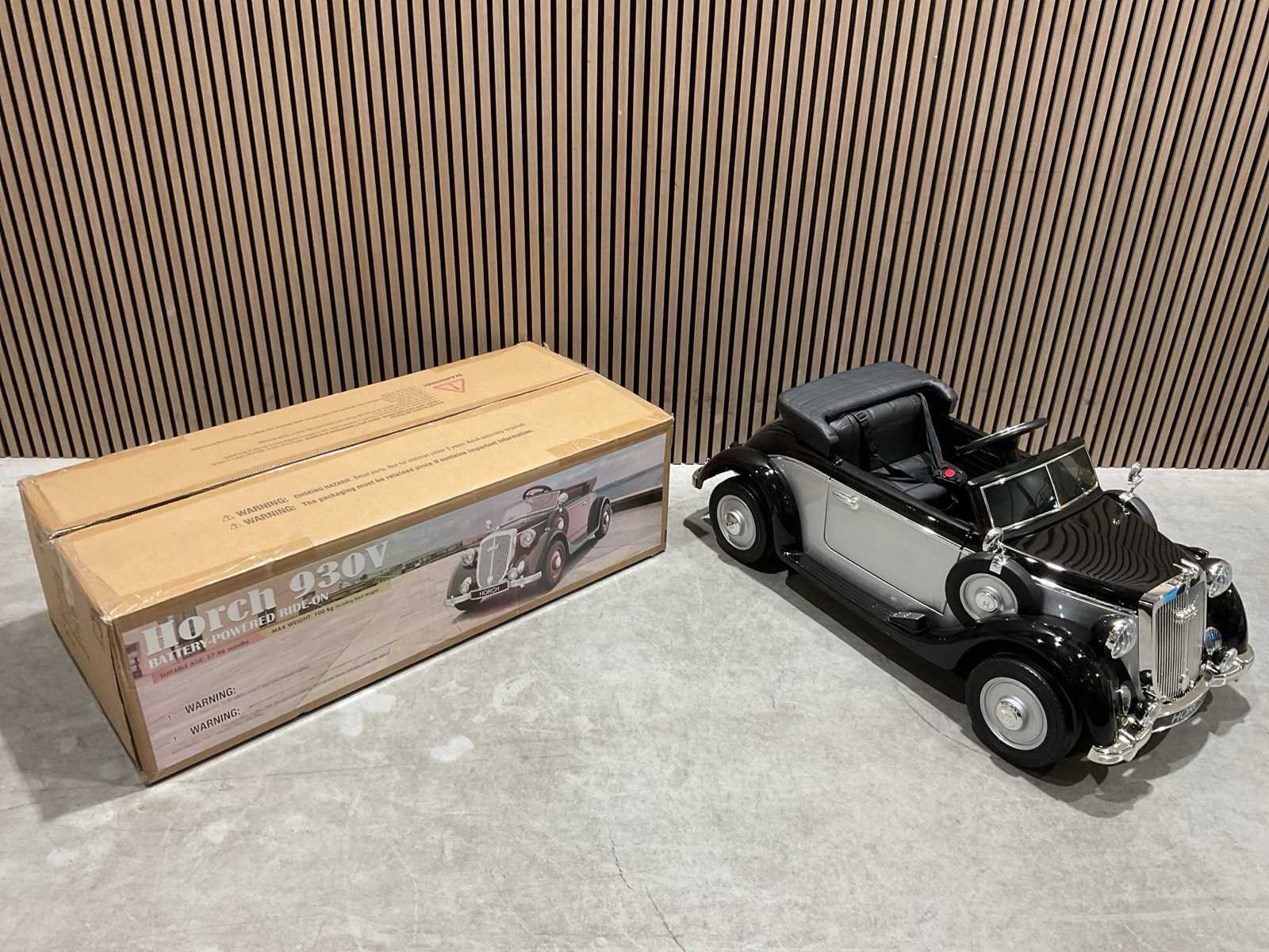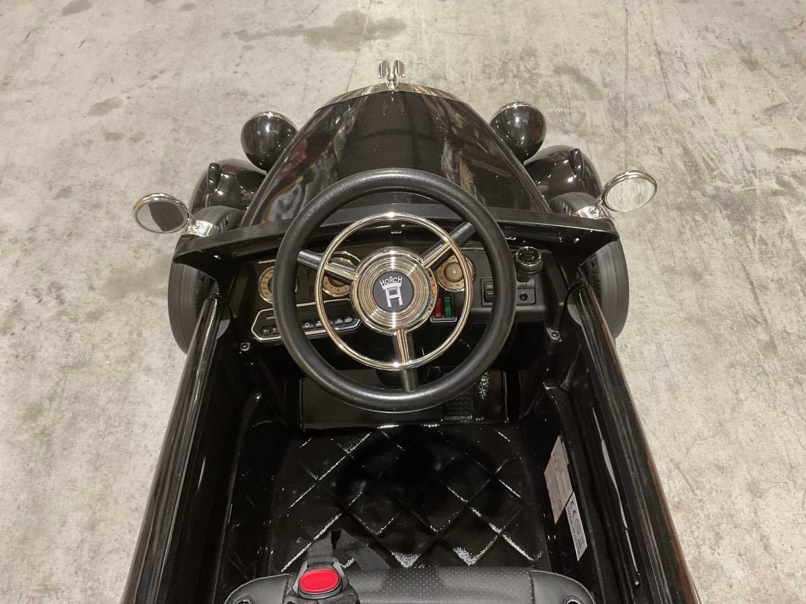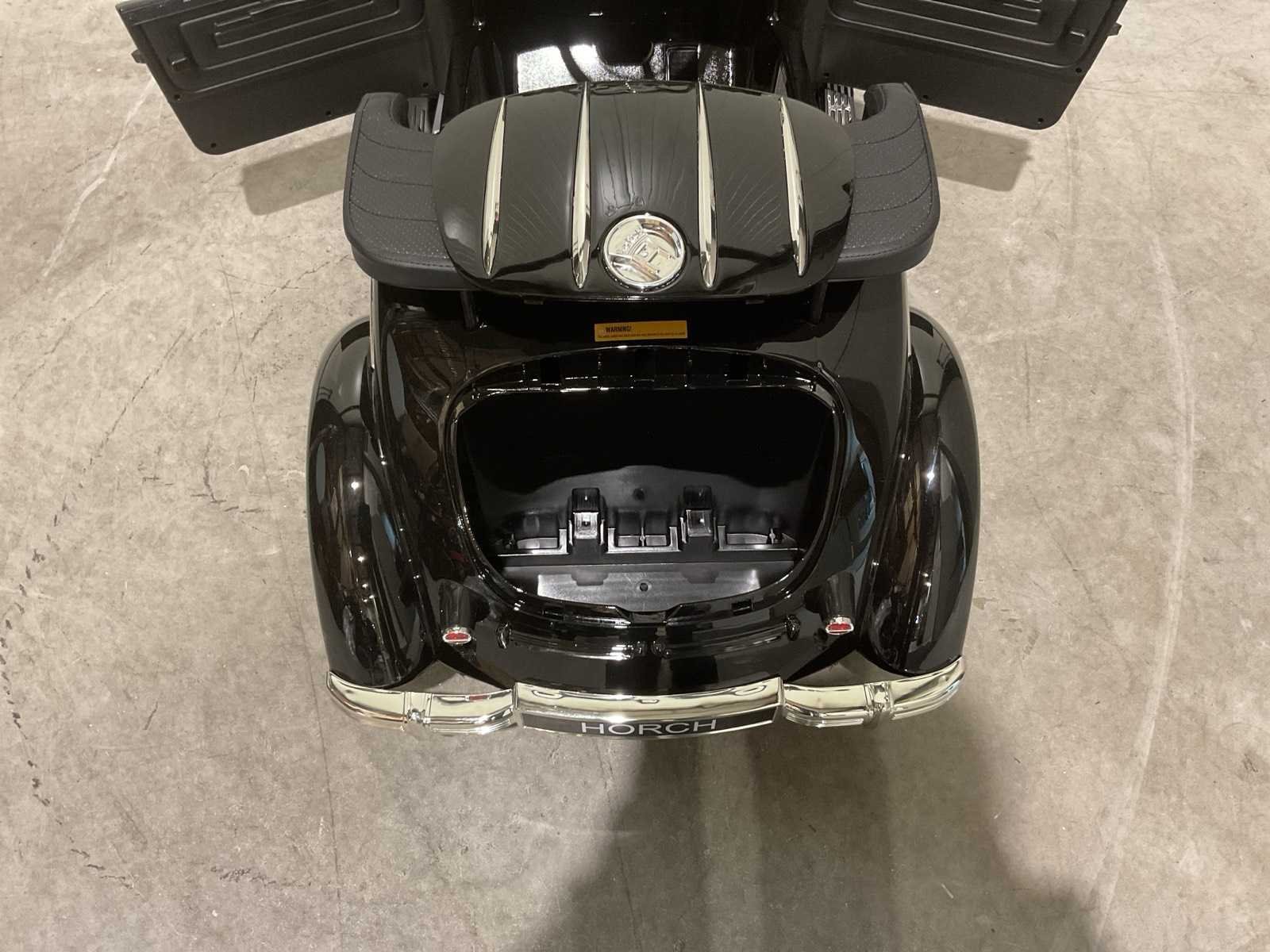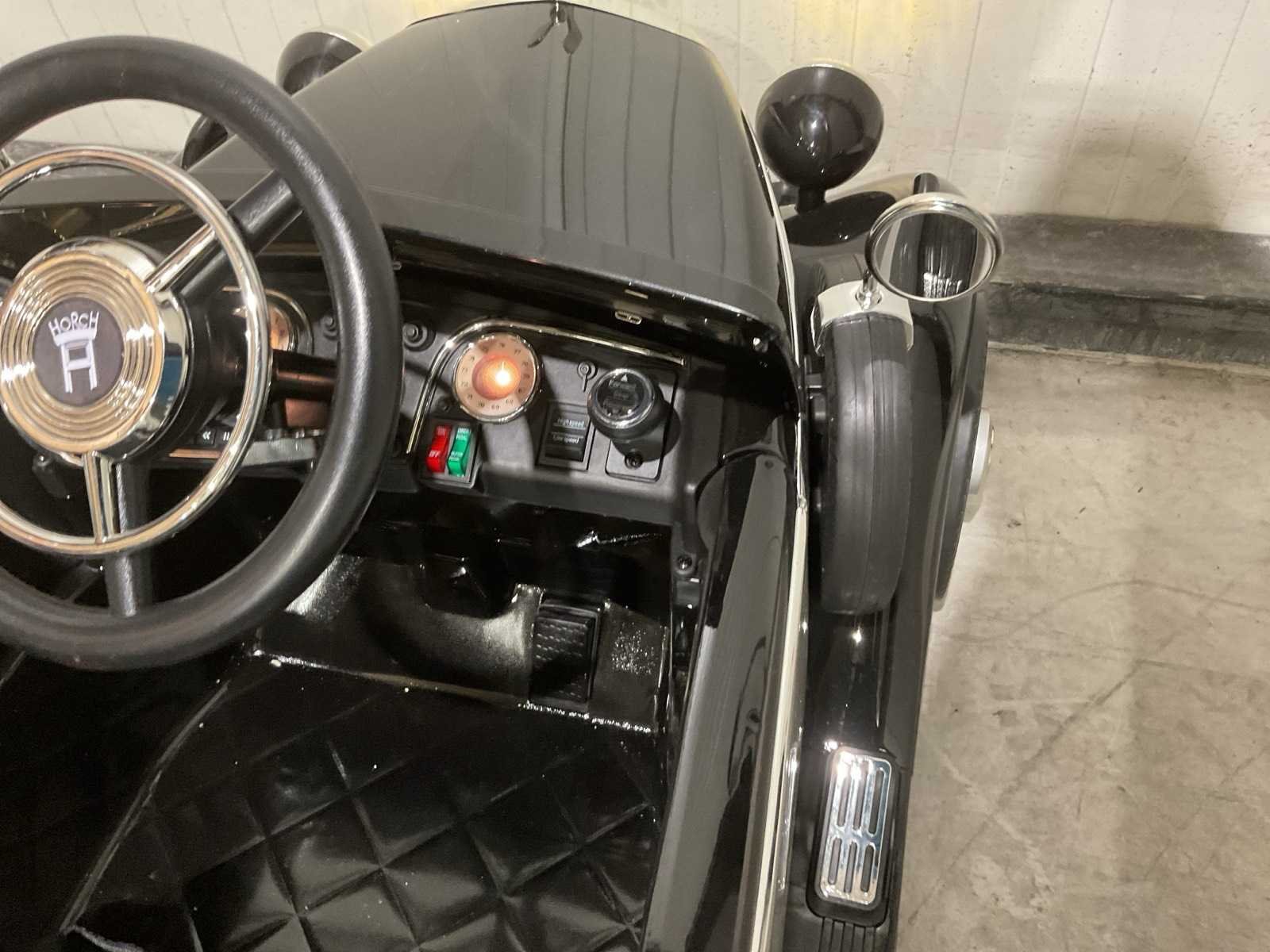 Voorzien van elektrische motor; Klassieke Horch design; Verlichting; openende deuren; maximum gewicht: 100kg; afstandsbediening; Voetpedaal; usb aansluiting; Geluidseffecten; ongebruikt in doos Merk: Audi Model: JE1005 Product type: Horch 930V Zwart Gewicht: 24kg Lengte: 125cm Breedte: 65cm Hoogte: 60cm