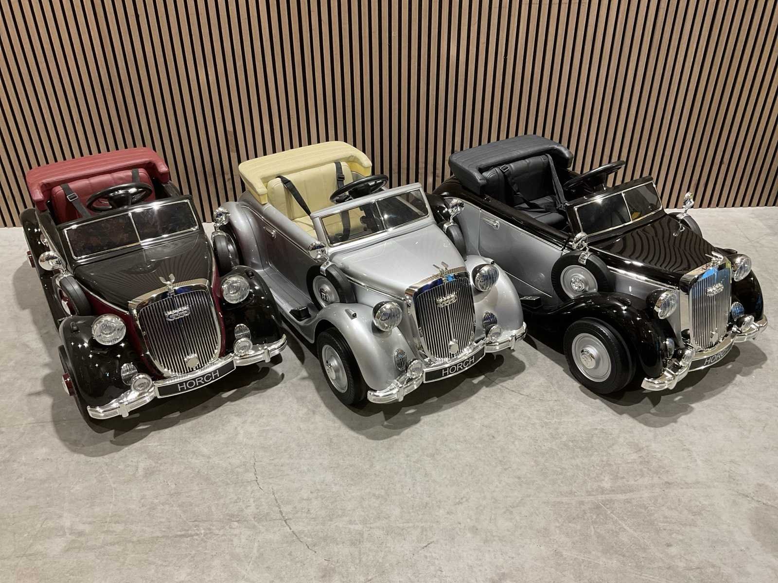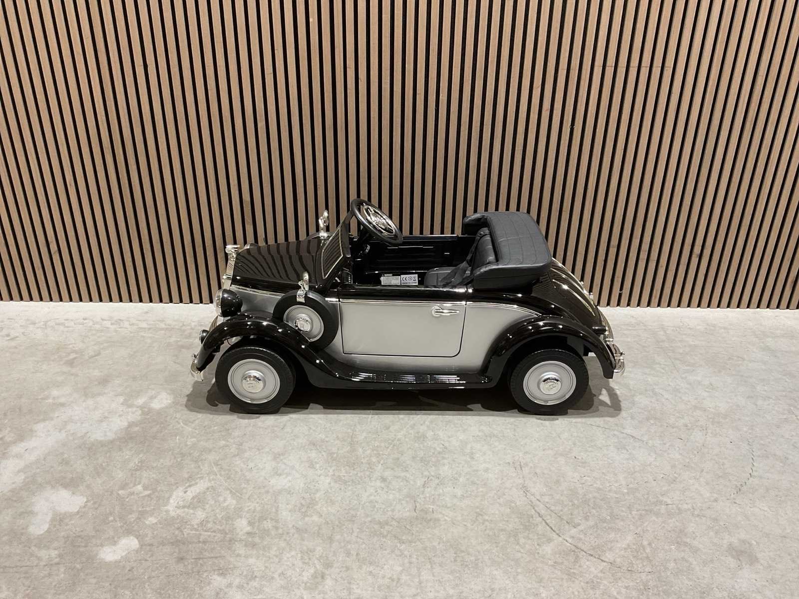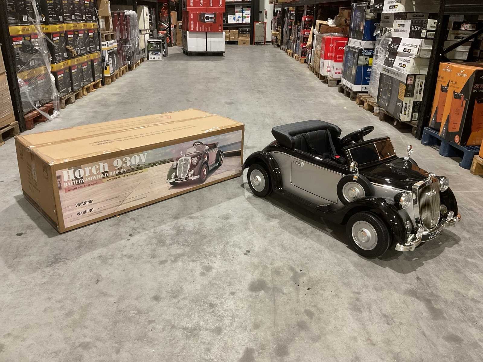 Voorzien van elektrische motor; Klassieke Horch design; Verlichting; openende deuren; maximum gewicht: 100kg; afstandsbediening; Voetpedaal; usb aansluiting; Geluidseffecten; ongebruikt in doos Merk: Audi Model: JE1005 Product type: Horch 930V Zwart Gewicht: 24kg Lengte: 125cm Breedte: 65cm Hoogte: 60cm