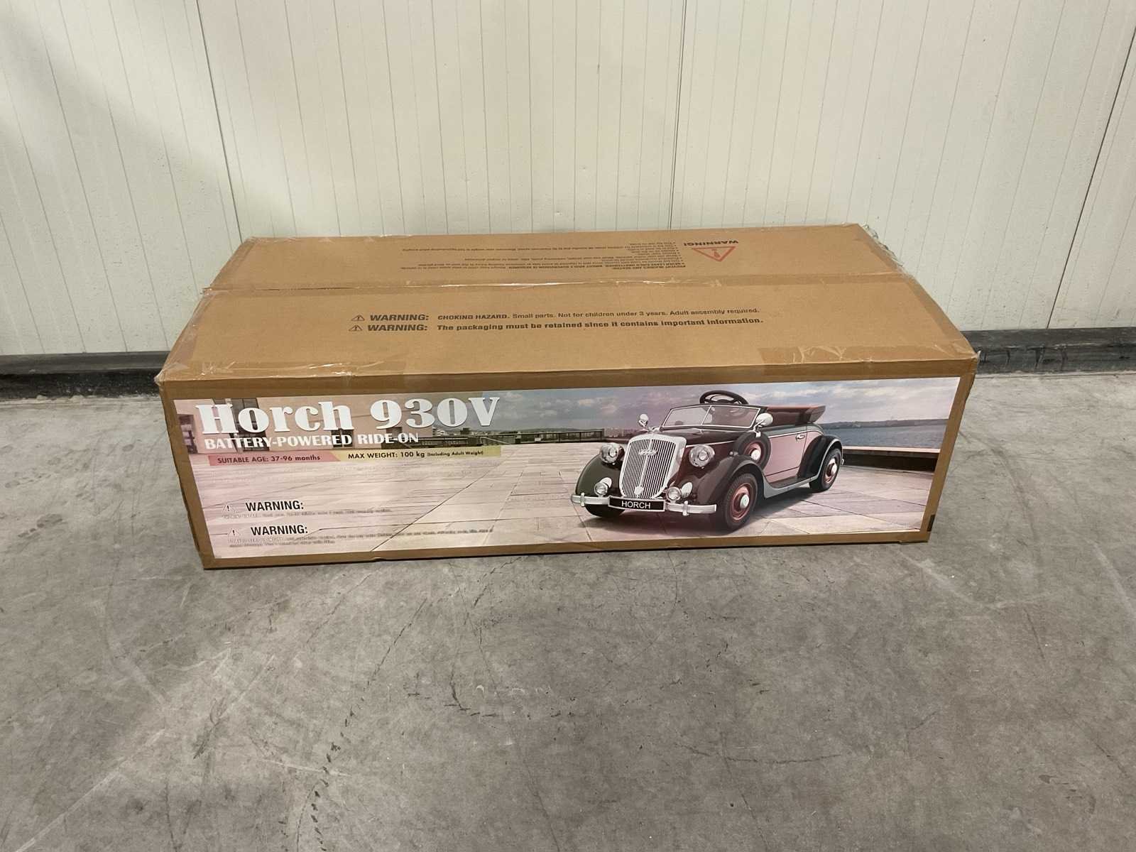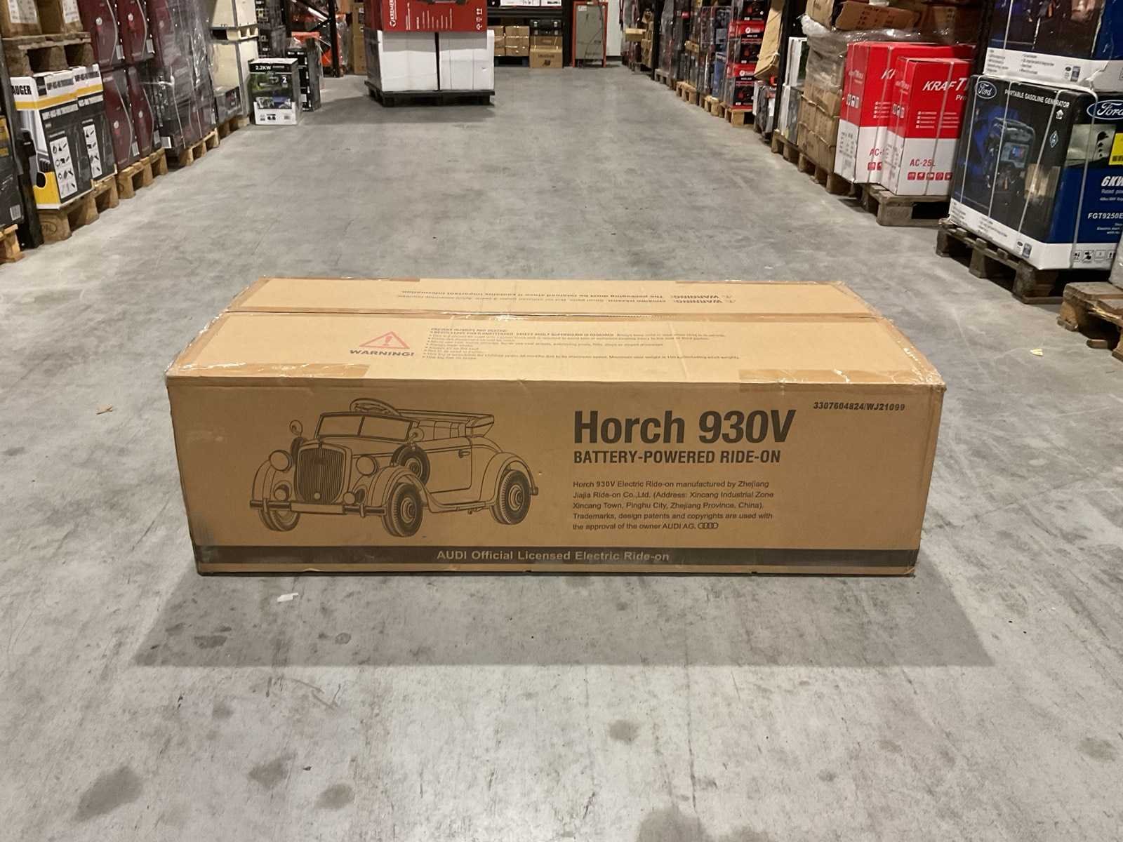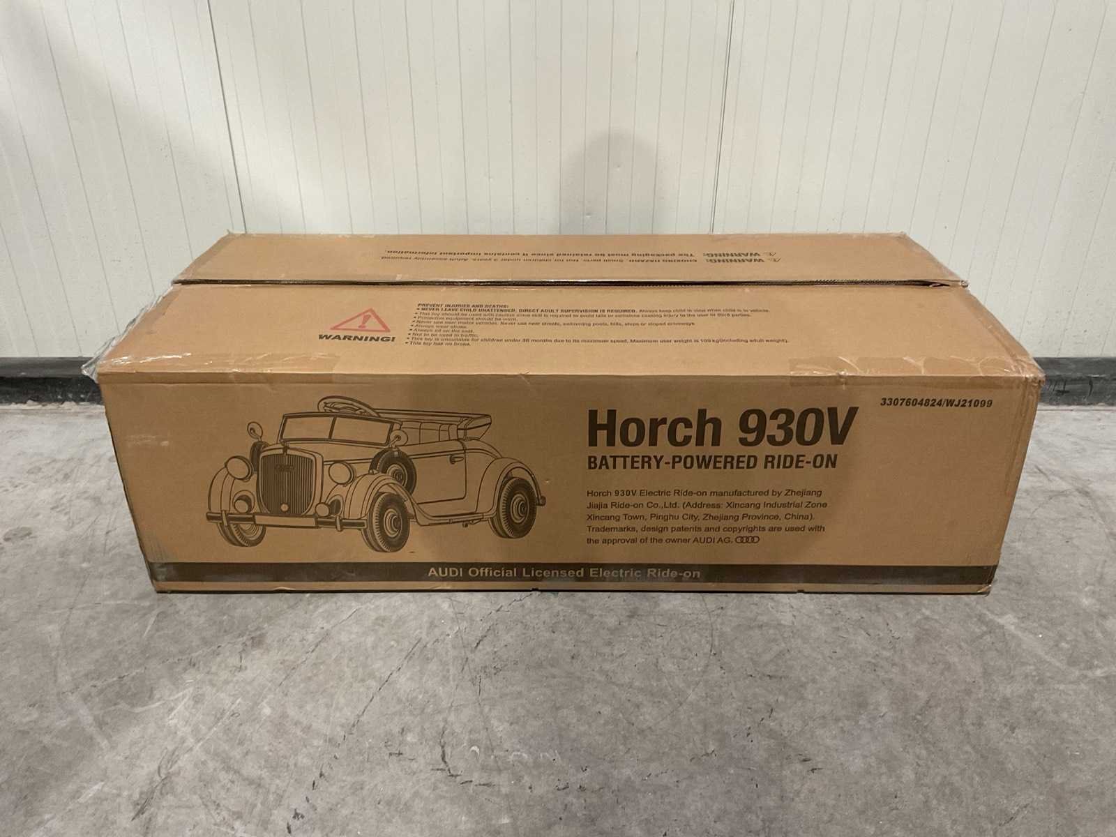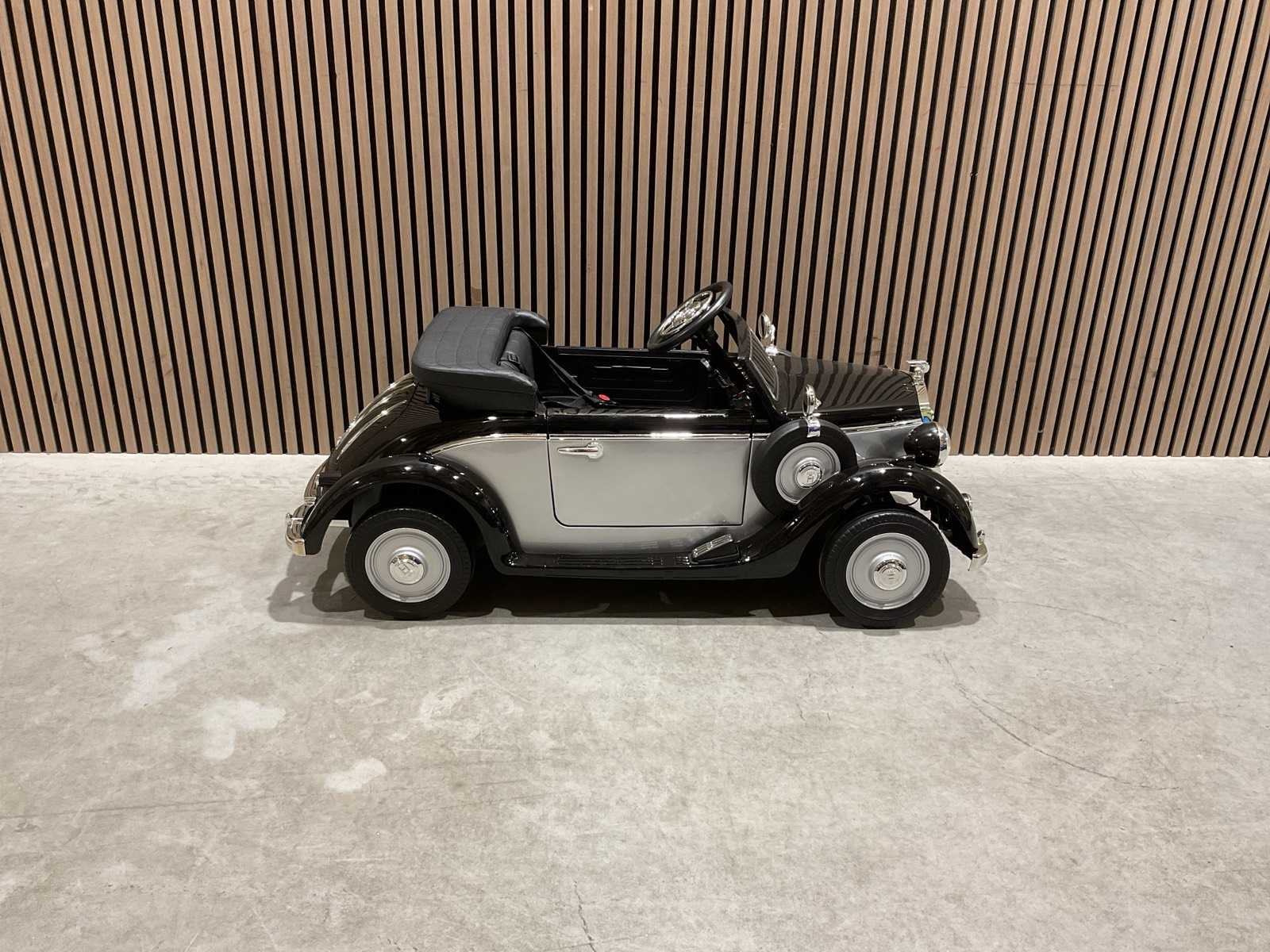 Voorzien van elektrische motor; Klassieke Horch design; Verlichting; openende deuren; maximum gewicht: 100kg; afstandsbediening; Voetpedaal; usb aansluiting; Geluidseffecten; ongebruikt in doos Merk: Audi Model: JE1005 Product type: Horch 930V Zwart Gewicht: 24kg Lengte: 125cm Breedte: 65cm Hoogte: 60cm