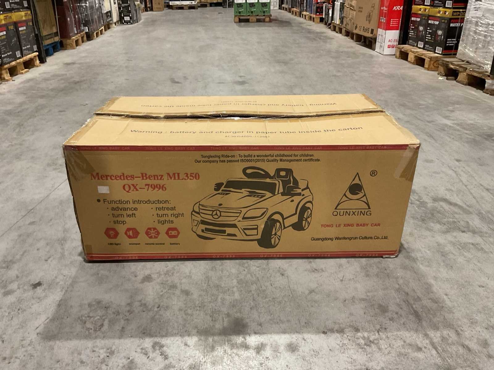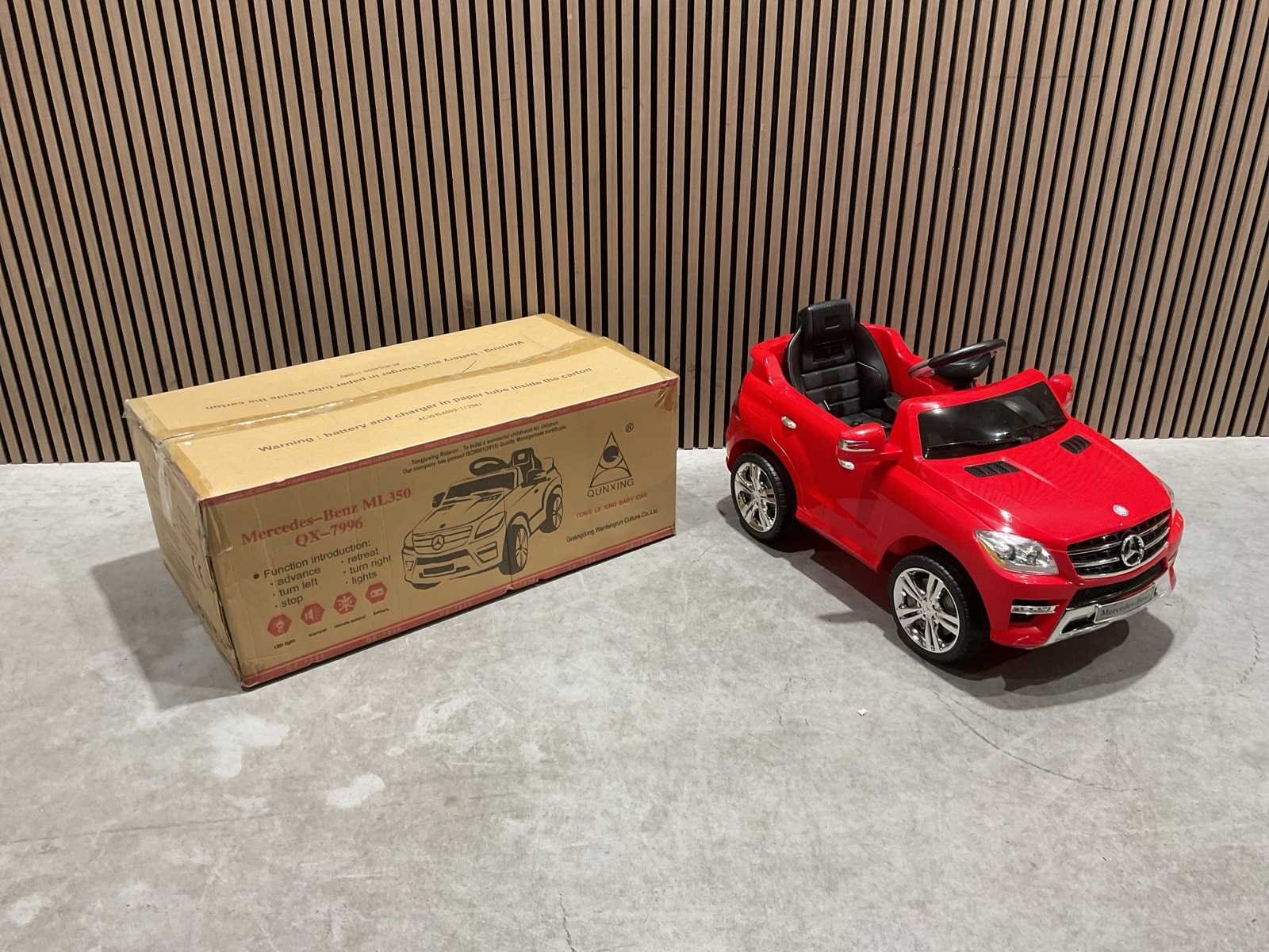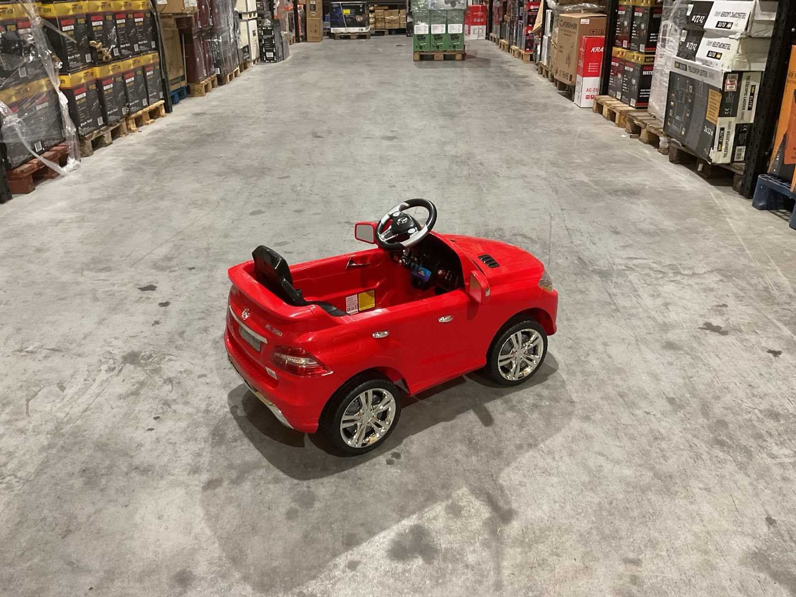 Voorzien van Zitplaatsen:Aandrijving: Elektrisch (accu-aangedreven); Accu: 6V gesloten droge accu; Capaciteit: 1 persoon; Materiaal: Kunststof; Verlichting; Geluidseffecten; Afstandsbediening; Voetpedaal; Draagvermogen: Max. 20 kg; Geschikte leeftijd: 37 tot 72 maanden; Transport gewicht: 13.2 kg; Transport afmetingen: Afmetingen verpakking: 99 × 55 × 39,5 cm; Ongebruikt in doos Merk: Mercedes Model: QX-7996 Rood Product type: ML350