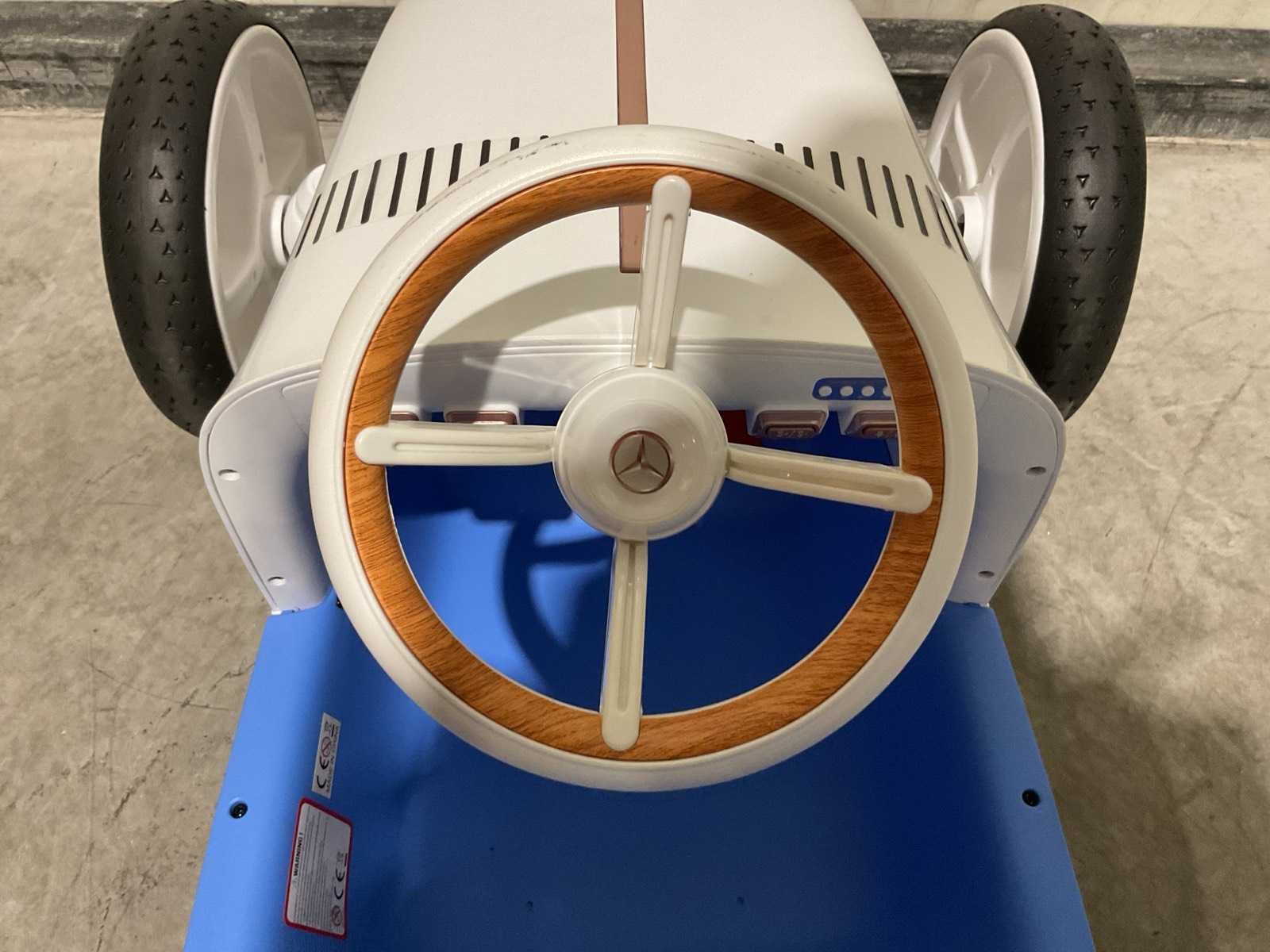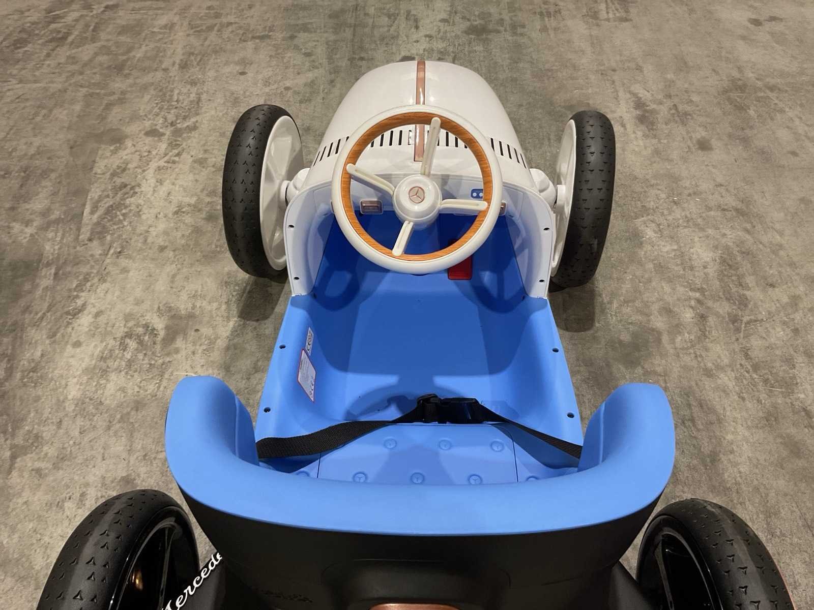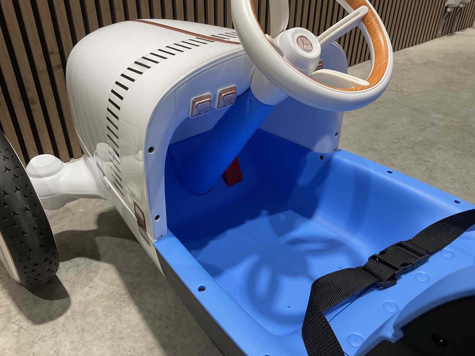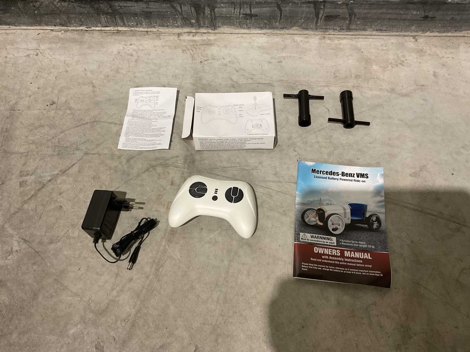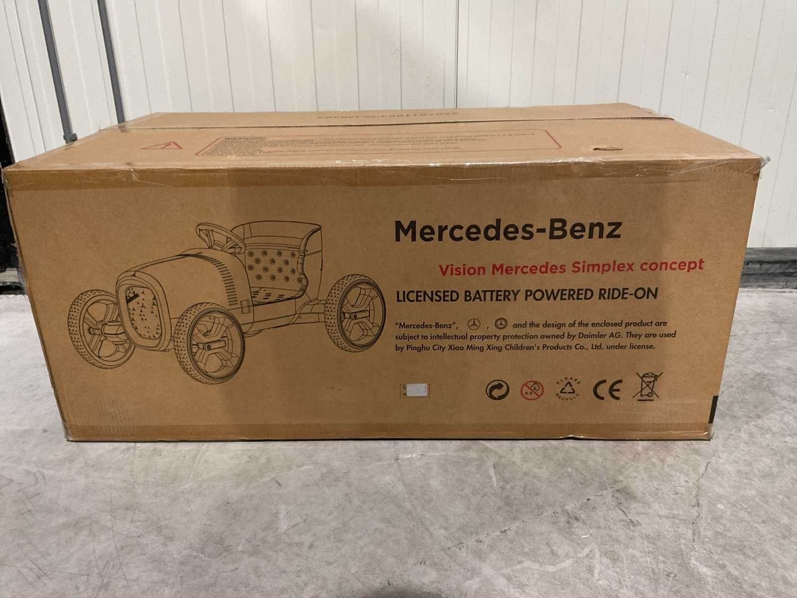Voorzien van Elektrische motor; 12V voltage; radio; voetpedaal; Afstandsbediening; Rubbere banden; Maximaal belastbaar gewicht: 50kg; Transport gewicht: 21.5; Transport afmetingen: 103x61x44 cm; Ongebruikt in doos Merk: Mercedes-benz Product type: XMX620 Model: Vision Mercedes Simplex Concept