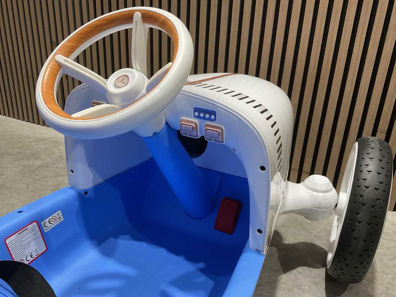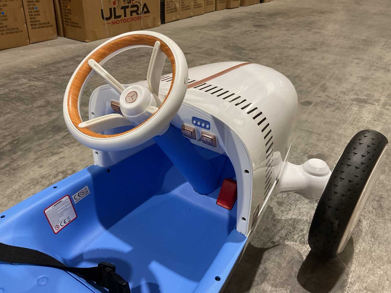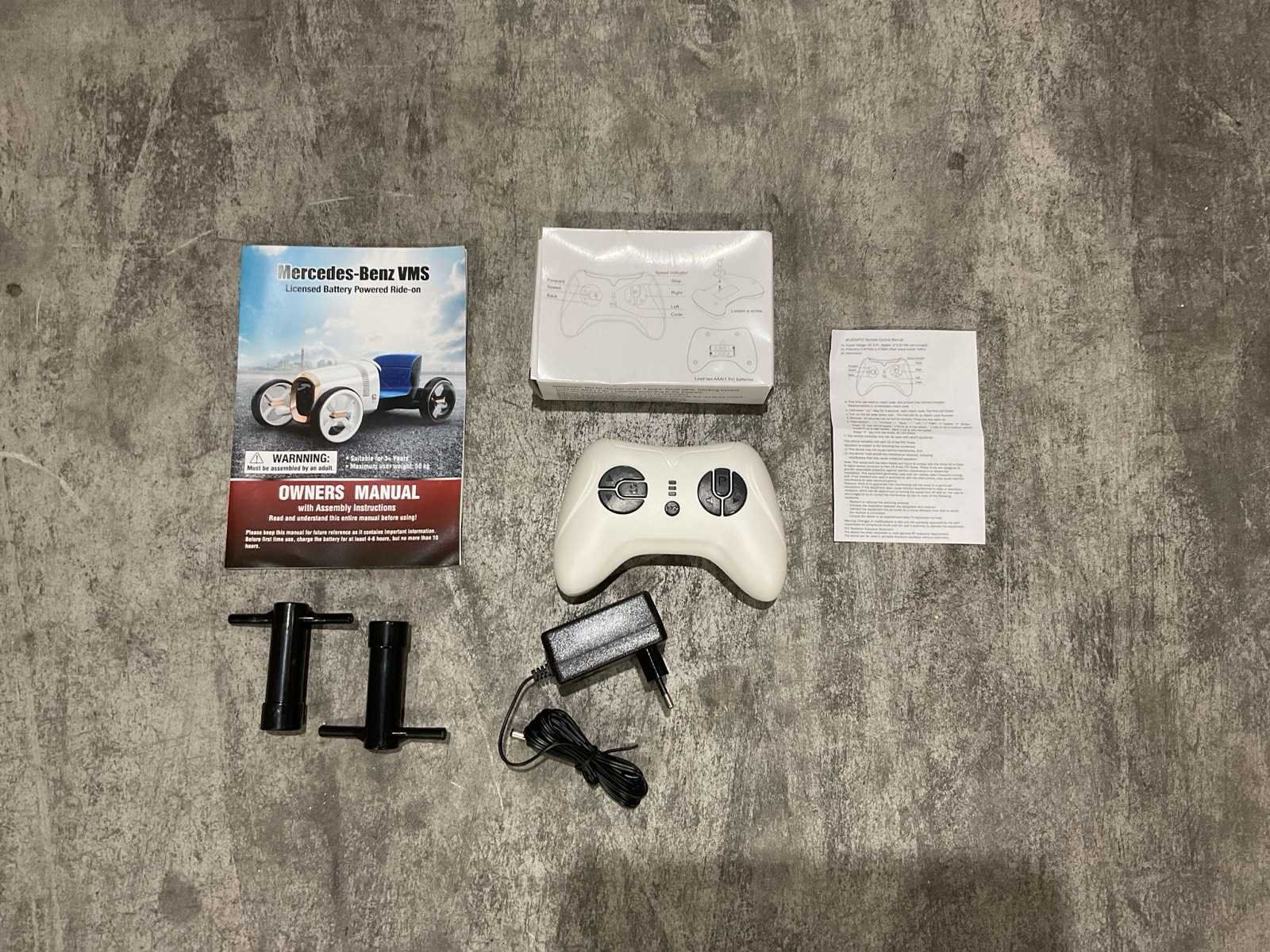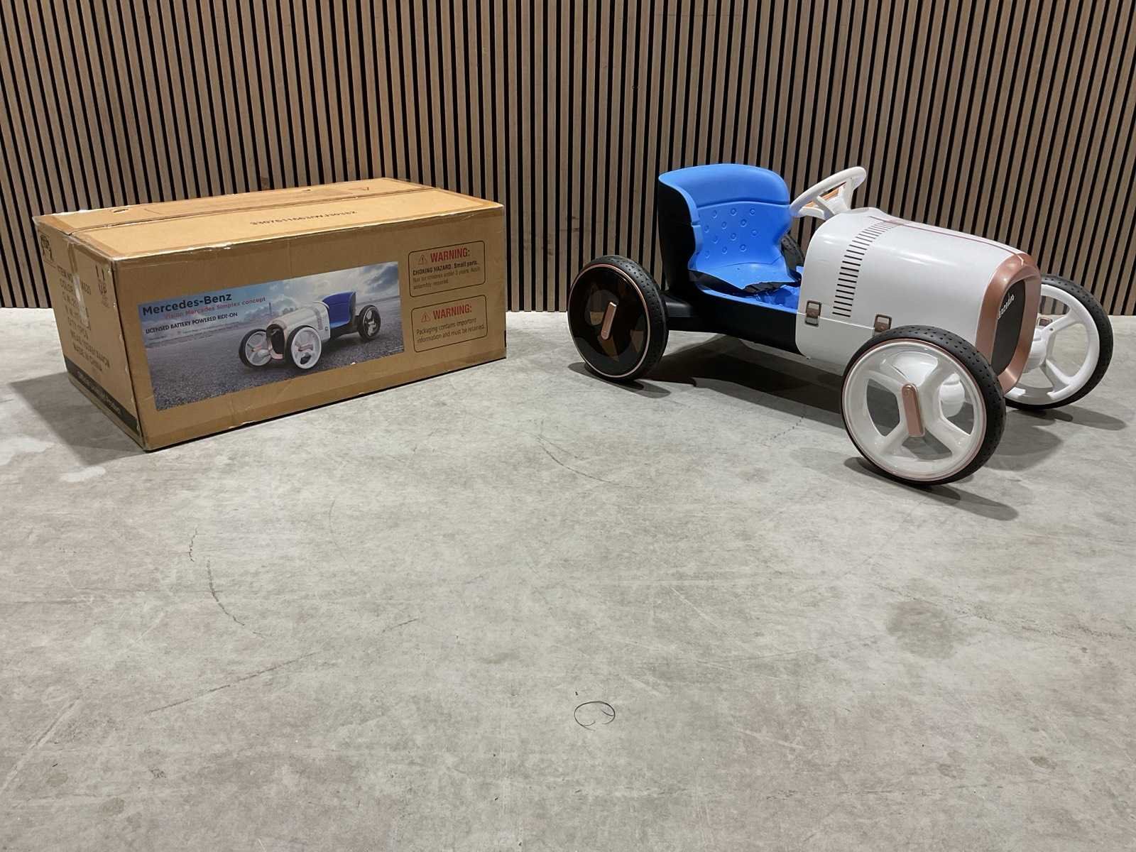 Voorzien van Elektrische motor; 12V voltage; radio; voetpedaal; Afstandsbediening; Rubbere banden; Maximaal belastbaar gewicht: 50kg; Transport gewicht: 21.5; Transport afmetingen: 103x61x44 cm; Ongebruikt in doos Merk: Mercedes-benz Product type: XMX620 Model: Vision Mercedes Simplex Concept