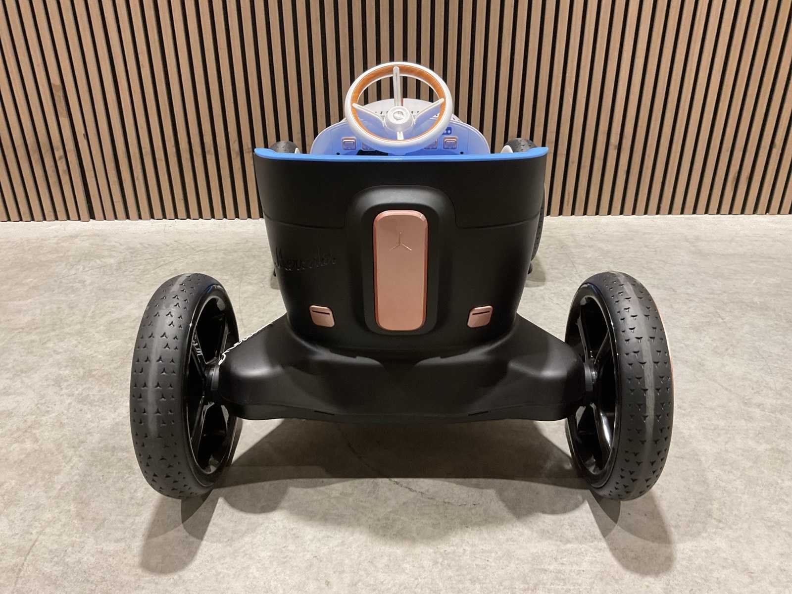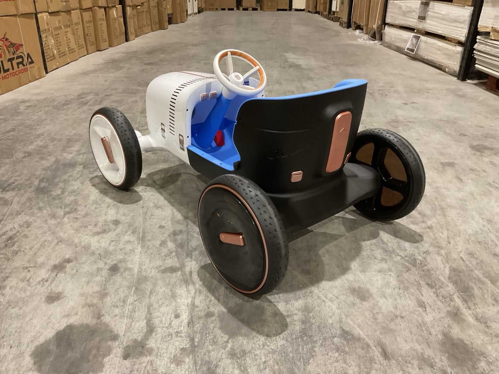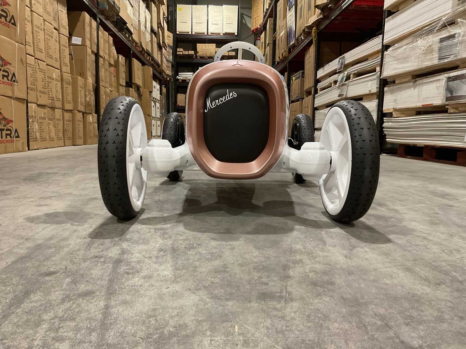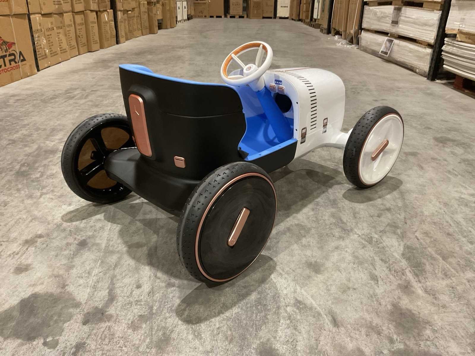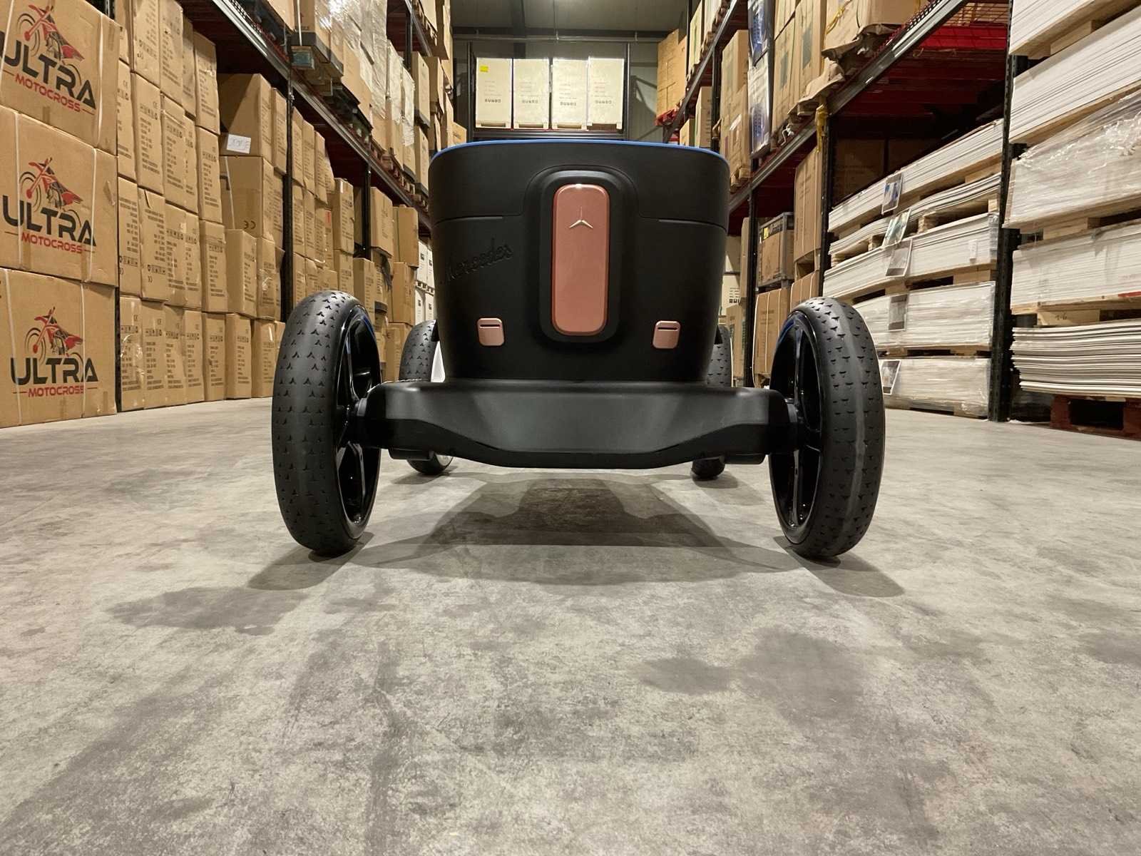 Voorzien van Elektrische motor; 12V voltage; radio; voetpedaal; Afstandsbediening; Rubbere banden; Maximaal belastbaar gewicht: 50kg; Transport gewicht: 21.5; Transport afmetingen: 103x61x44 cm; Ongebruikt in doos Merk: Mercedes-benz Product type: XMX620 Model: Vision Mercedes Simplex Concept