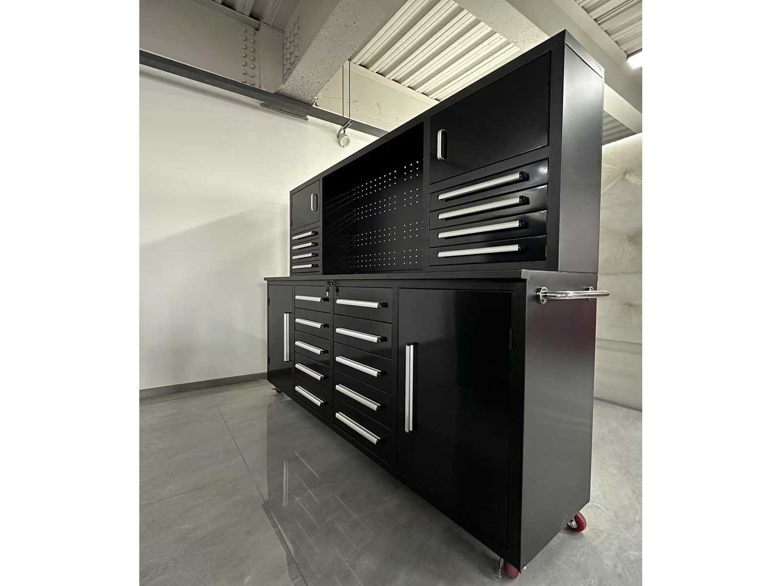 Voorzien van Gepoedercoat staal; 18 lades 4 kastdeuren; Ongebruikt (Transport afmetingen 2205x600x1700mm) Merk: Rhino-Cross-Workbench Type: H7FT-18D-1C Zwart