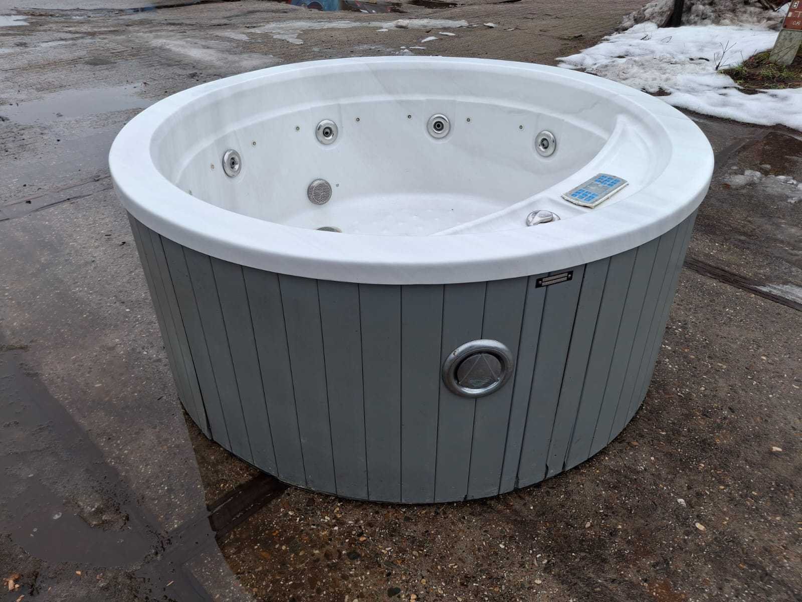 Voorzien van cover; Niet getest op functioneren (Marge, geen BTW) Model: 4 persoons Verlichting: Ja Jets: 6 Aantal personen: 4 Lengte: 150cm Breedte: 150cm Hoogte: 69cm