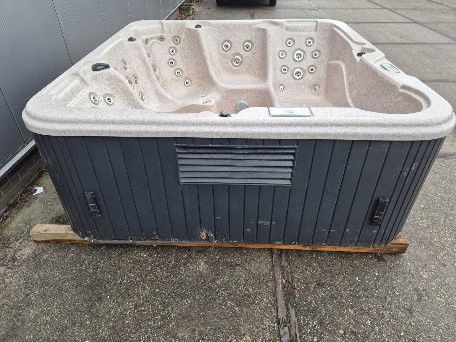 Voorzien van waterval; 2 ligplaatsen; 3 zitplaatsen; nek/schouder massage; automatisch filtersysteem; 1 paneel mist door transport zie laatste foto; Niet getest op functioneren (Marge, geen BTW) Model: 5 persoons Verlichting: Ja Jets: 60 Aantal personen: 5 Lengte: 225cm Breedte: 215cm Hoogte: 87cm