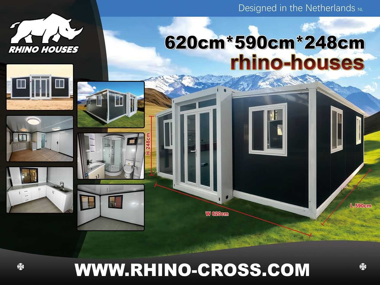 2025 rhino houses 36,5 m2 2 slaapkamers, badkamer en keuken mobiele woonunit / tiny house