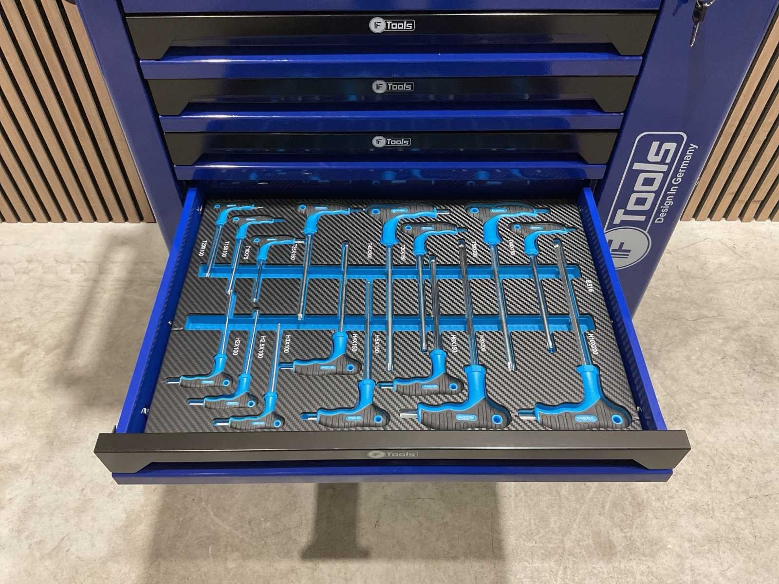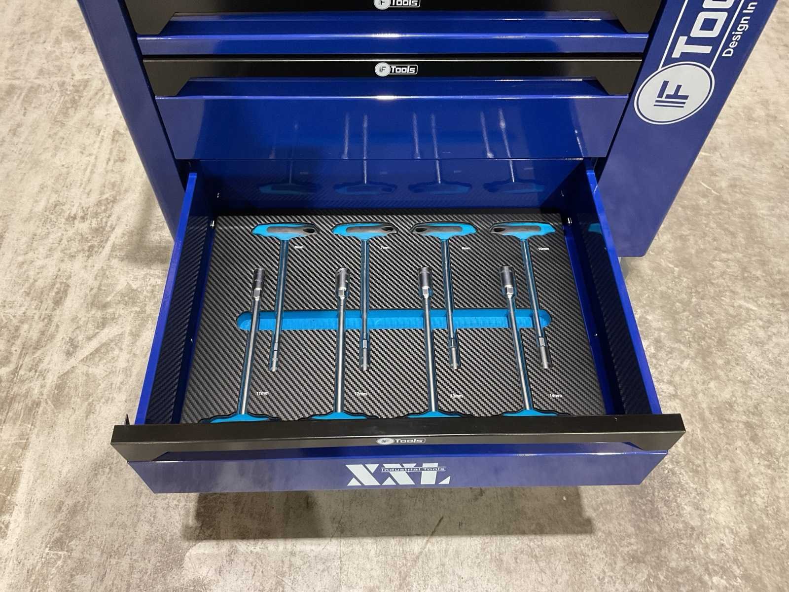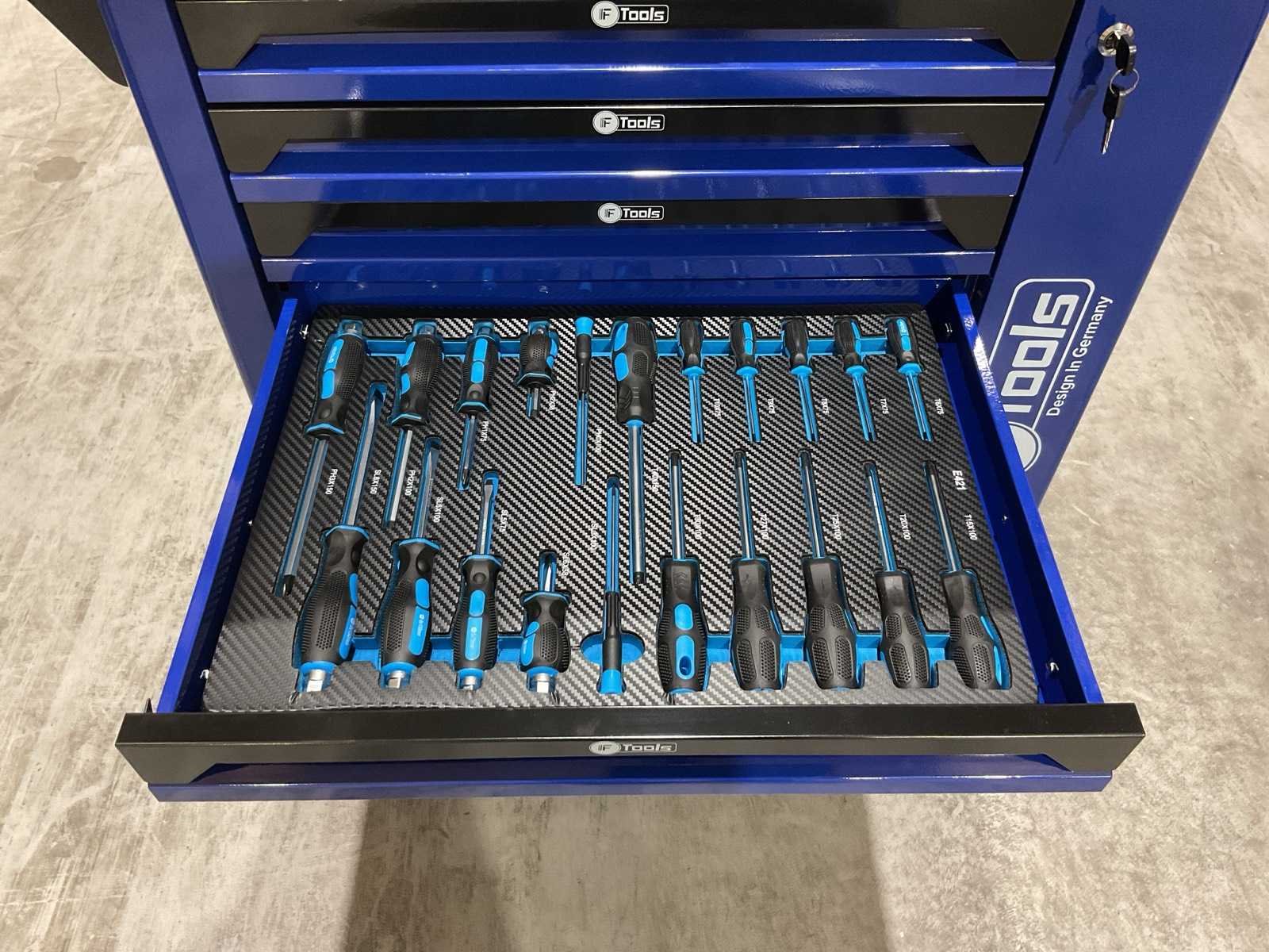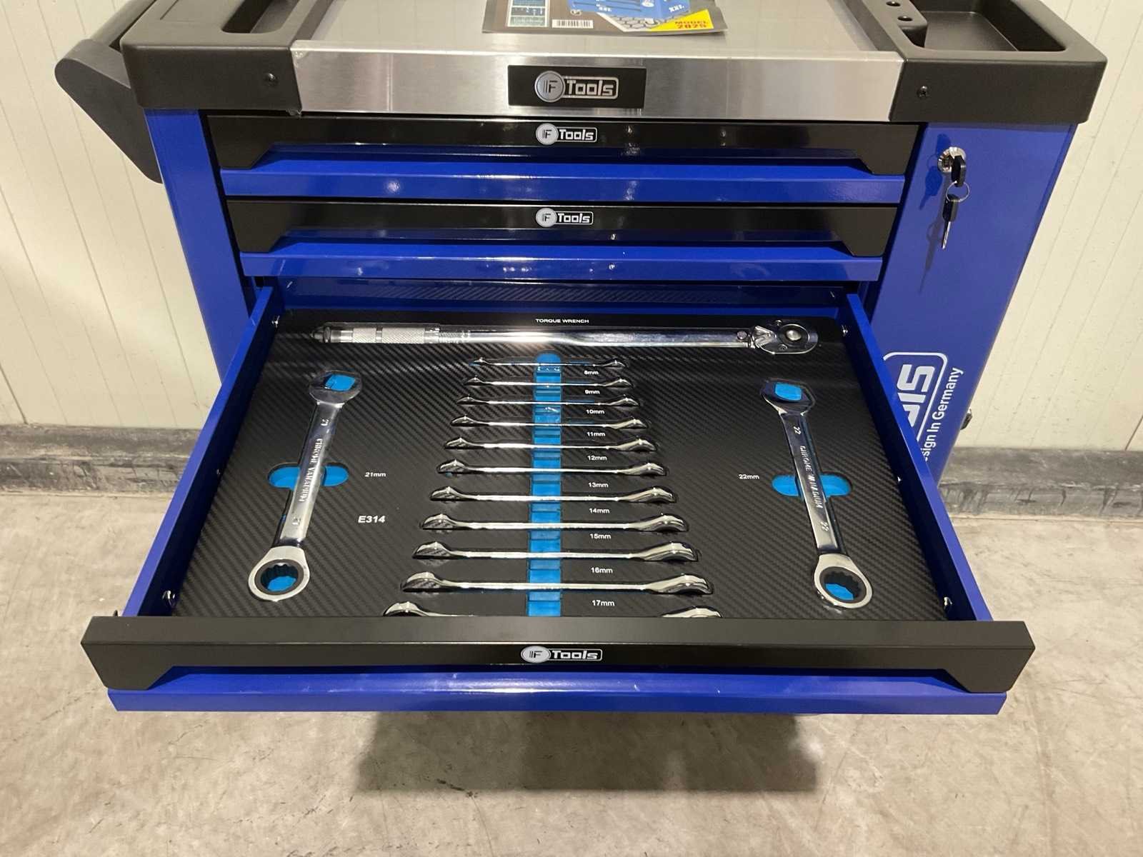 Voorzien van 7 lades gevuld met gereedschap; RVS werkblad; centrale vergendeling; Materiaal gereedschap: Chroom-Vanadium staal (CrV); Kogellager ladegeleiding; Bovenblad met geïntegreerde opbergvakken; Transport gewicht: 76 kg; Transport afmetingen 790x480x860 mm; ongebruikt in doos Merk: Ftools Type: FT3006