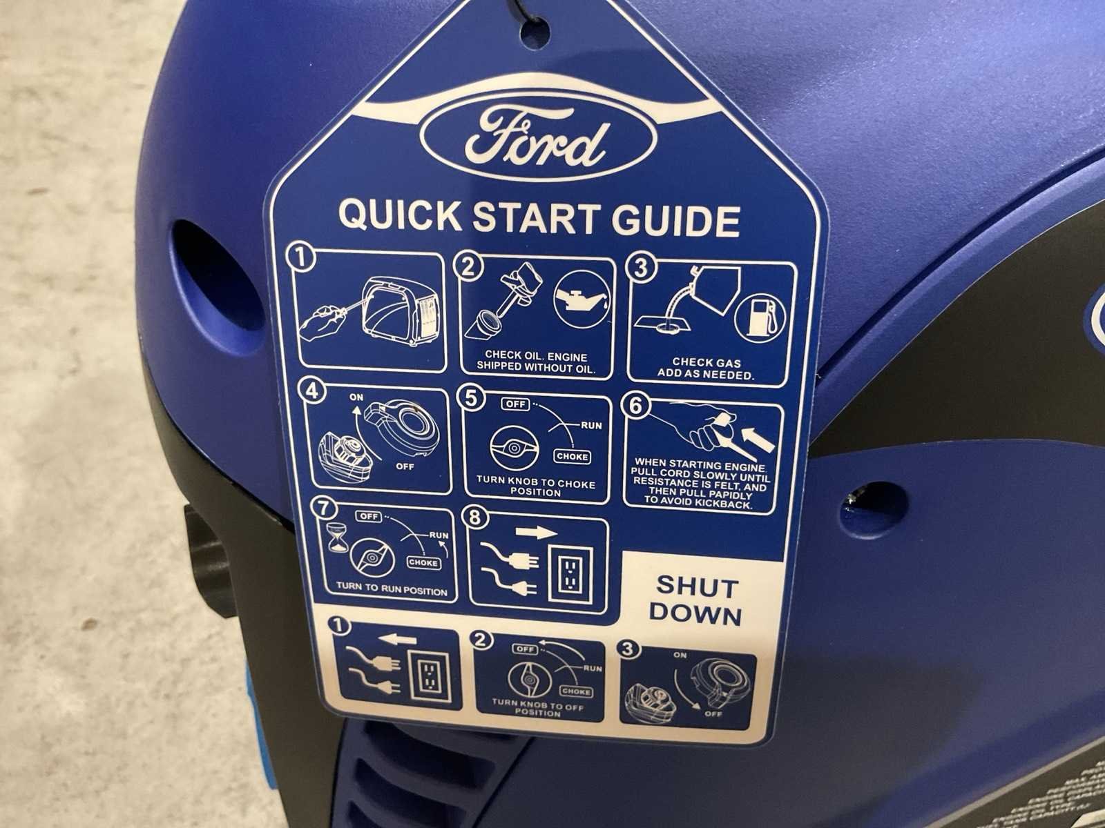 Vermogen (COP): 2000W; Vermogen (MAX): 2200W; Spanning: 230V; Frequentie: 50Hz; Motor: 98cc, 4-takt; luchtgekoeld; Tank: 1,18 gallon / 4,5 liter loodvrije benzine; Olietype: SAE 10W30; Olie-inhoud: 11,8 oz / 350 ml Trekstart; ongebruikt in doos. Merk: Ford Type: FG2950iS Bouwjaar: 2025 Benzine: true Type motor: Ford Aantal cilinders: 1 Luchtgekoeld: true Mobiel: true Machinegewicht: 24.5kg Totale afmeting L: 550mm Totale afmeting Breedte: 330mm Totale afmeting Hoogte: 475mm