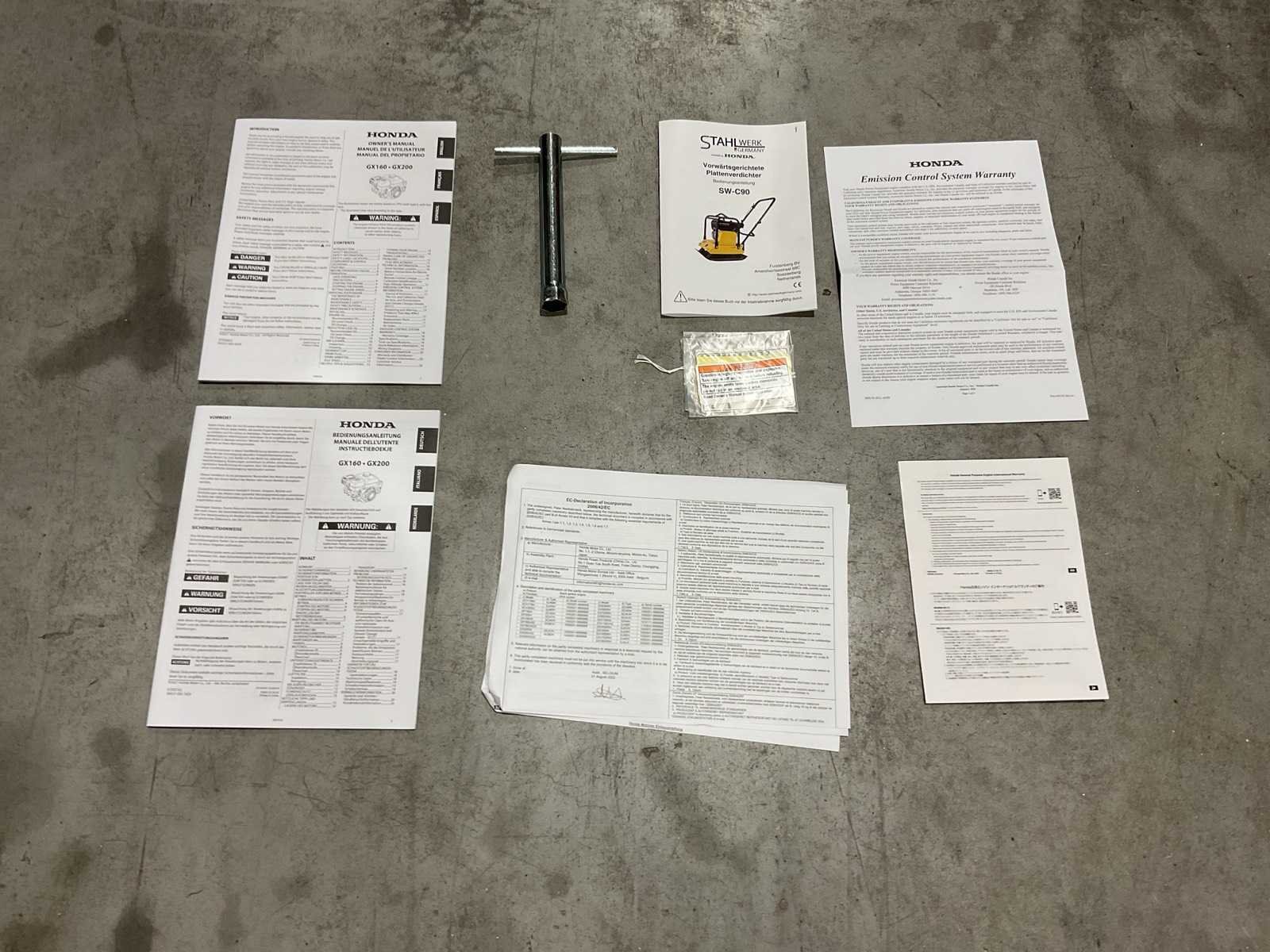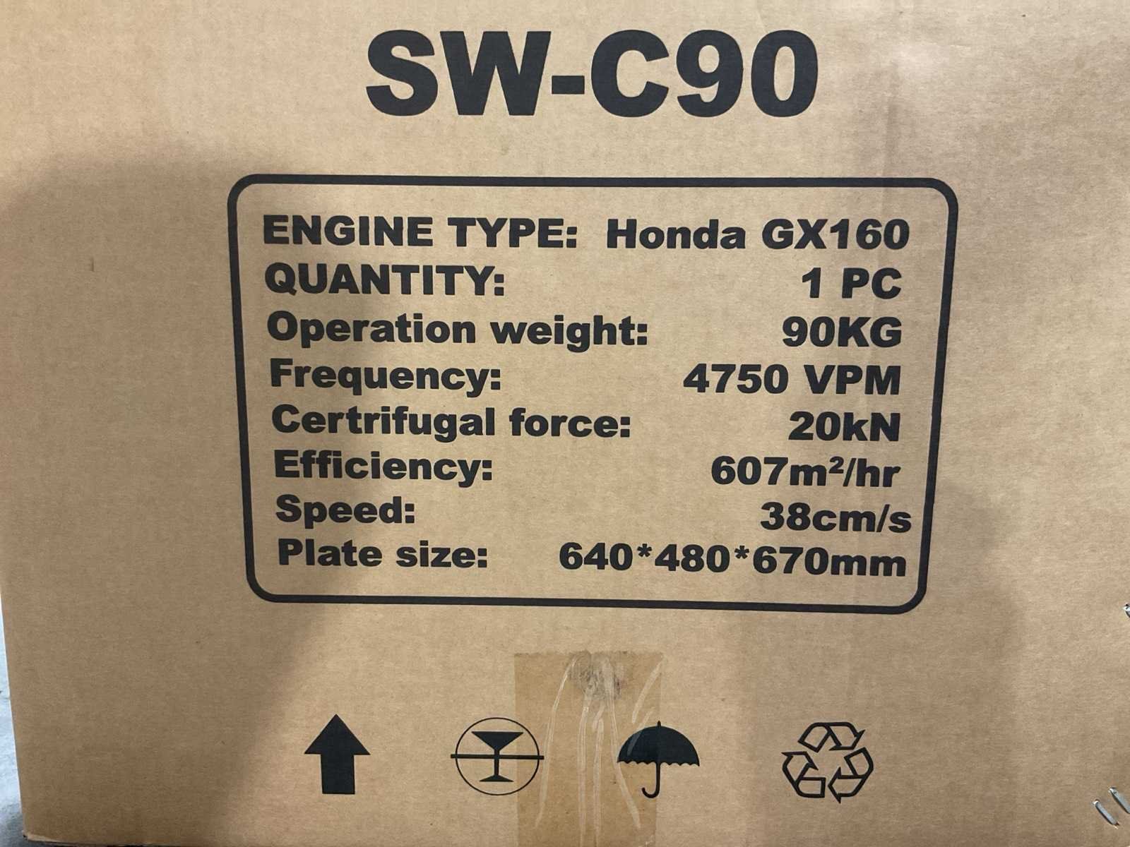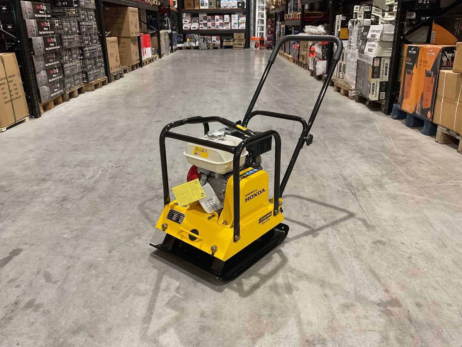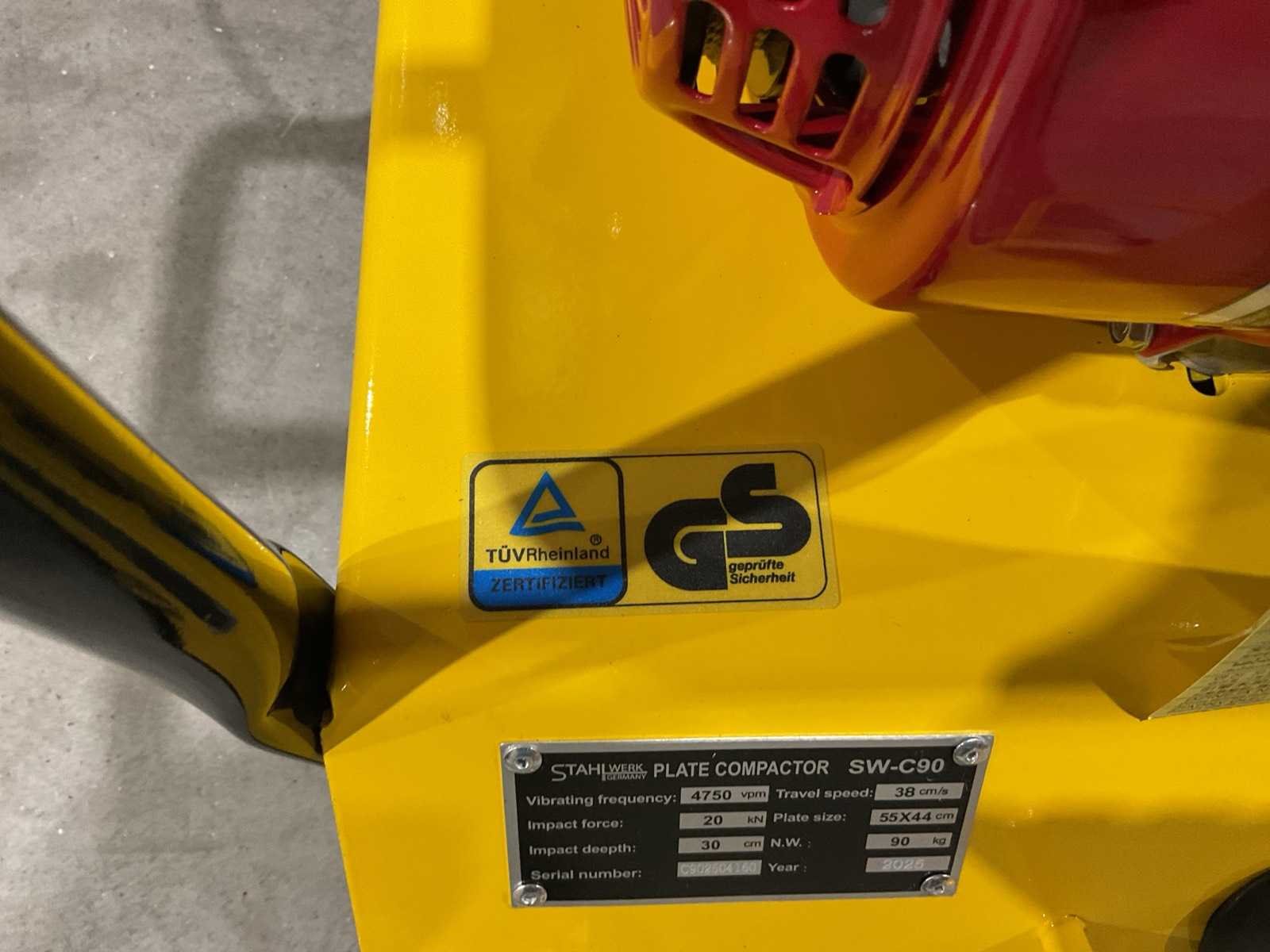 Voorzien van honda fx160 benzinemotor; 163cc motorinhoud; 4,8 pk; trekstart; werkbreedte trilplaat 450 mm; slagkracht 20 kN; werksnelheid 20 m/min; ca 450 m²/uur; 90kg machinegewicht; nieuw in doos Merk: Stahlwerk Type: SW-C90 Bouwjaar: 2025 Bedrijfsgewicht: 90kg Grondplaat afm. l: 640mm Grondplaat afm. b: 480mm Centrifugale kracht: 20kN Merk motor: Honda Eigen gewicht: 90kg Totale afmeting L: 645mm Totale afmeting Breedte: 485mm Totale afmeting Hoogte: 680mm