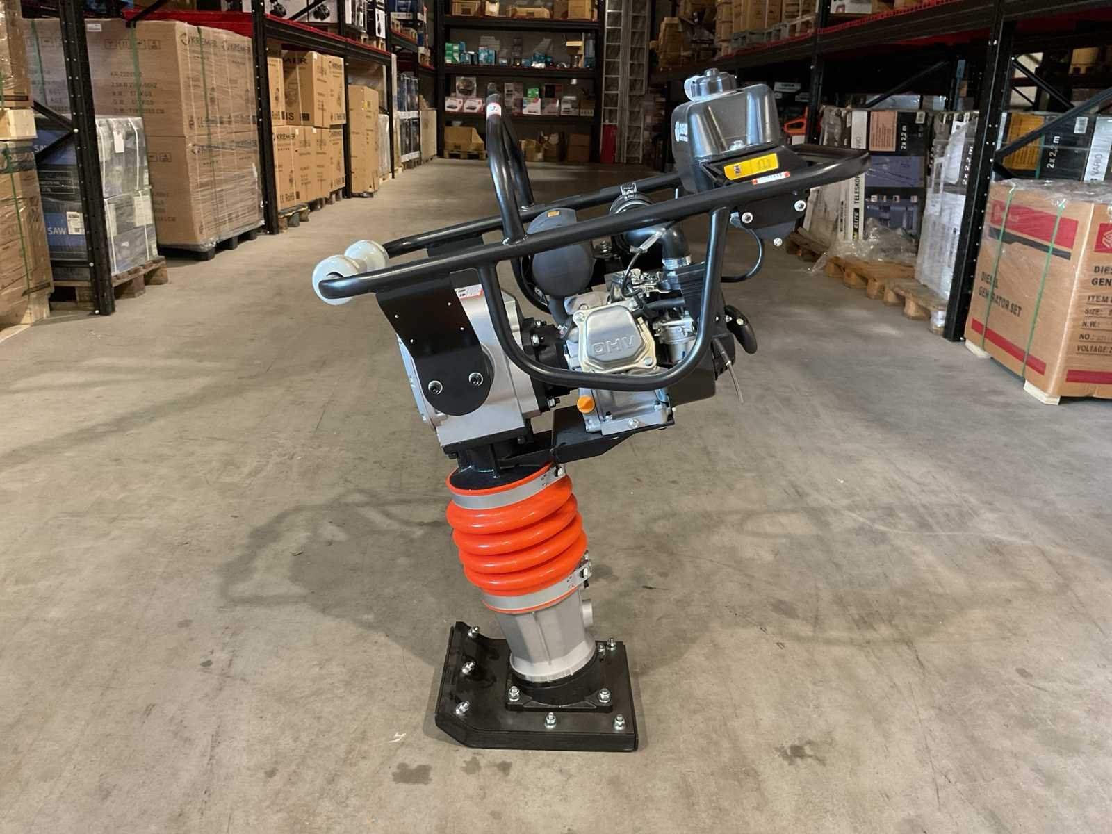 Voorzien van 6.5PK; Benzine motor; Snelheid 9-12m/min; Eigen gewicht: 75 kg; Tankinhoud: 2 L; Jumping stoke max. 40-65mm; Grondplaat afmeting: 330x290 mm; Machine afmeting: 750x480x1080 mm; Centrifugale kracht: 10 kN; Ongebruikt in doos Merk: Daewoo Type: DARM80 Bouwjaar: 2025 Bedrijfsgewicht: 62kg Grondplaat afm. l: 290mm Grondplaat afm. b: 290mm Centrifugale kracht: 10kN Merk motor: Login Brandstof: Benzine Eigen gewicht: 62kg Totale afmeting L: 780mm Totale afmeting Breedte: 500mm Totale afmeting Hoogte: 1150mm