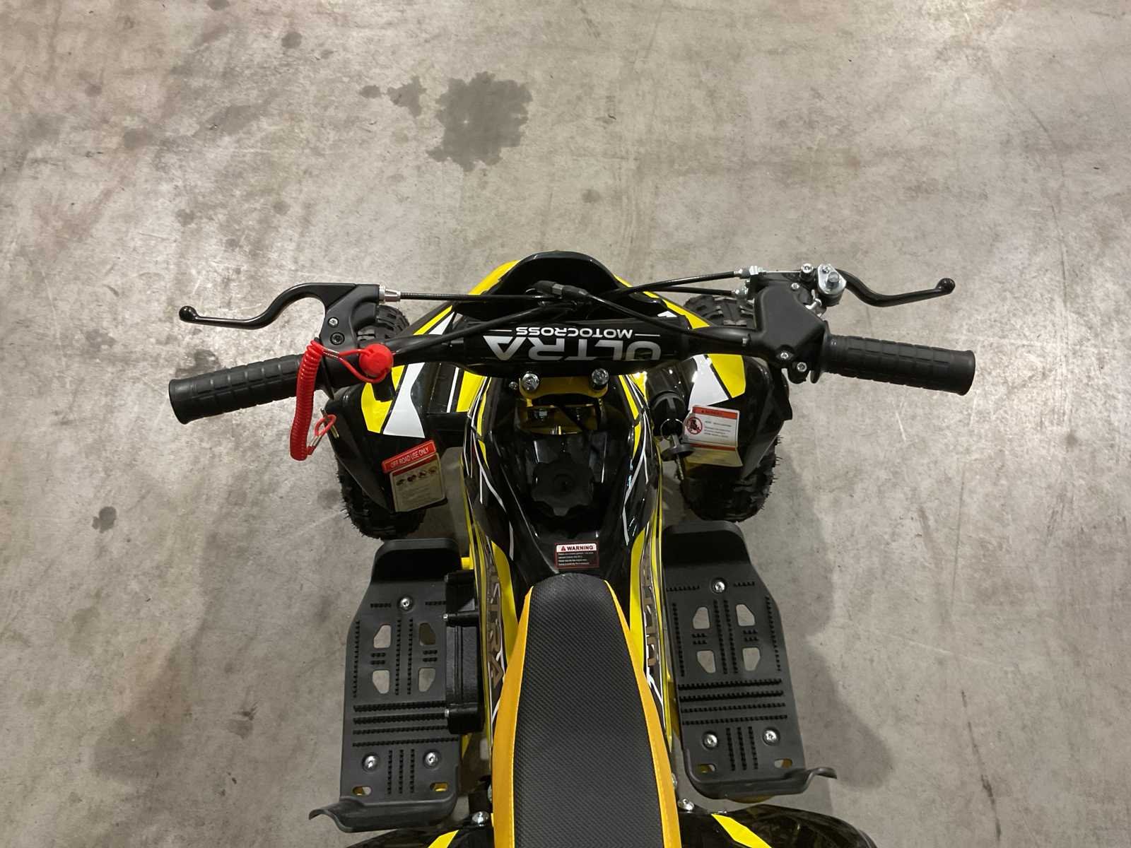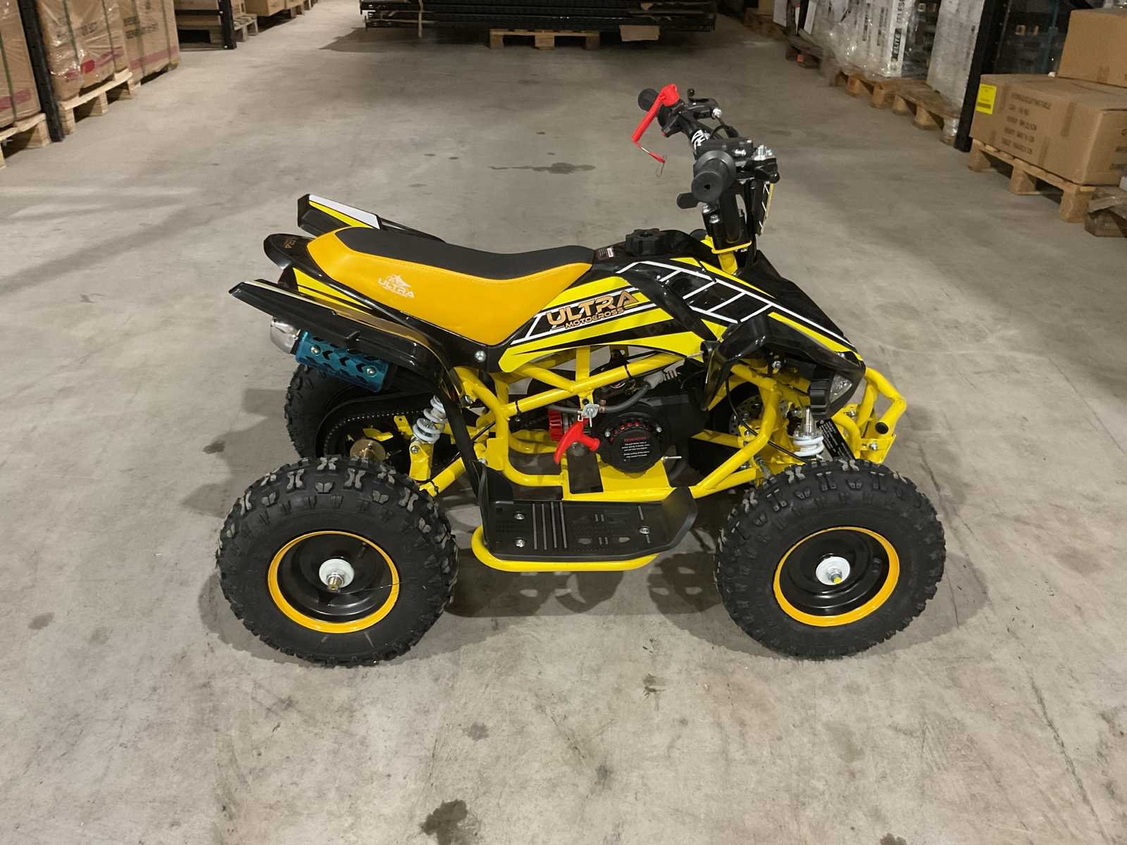 Voorzien van 49cc benzine motor; 2 takt; trek start; 3 verschillende snelheden; kill-switch; bandenmaat 6” inch; 2 sleutels; ongebruikt in doos (transport afmetingen 100x55x45 cm 36kg) Merk: Ultra Motocross Model: MA03 Product type: ATX 49 GE Gewicht: 34kg Aantal sleutels: 2 Transmissie: Automaat Bouwjaar: 2025 Cilinderinhoud: 49cc Brandstof: Benzine 2 Takt Kleur: Geel