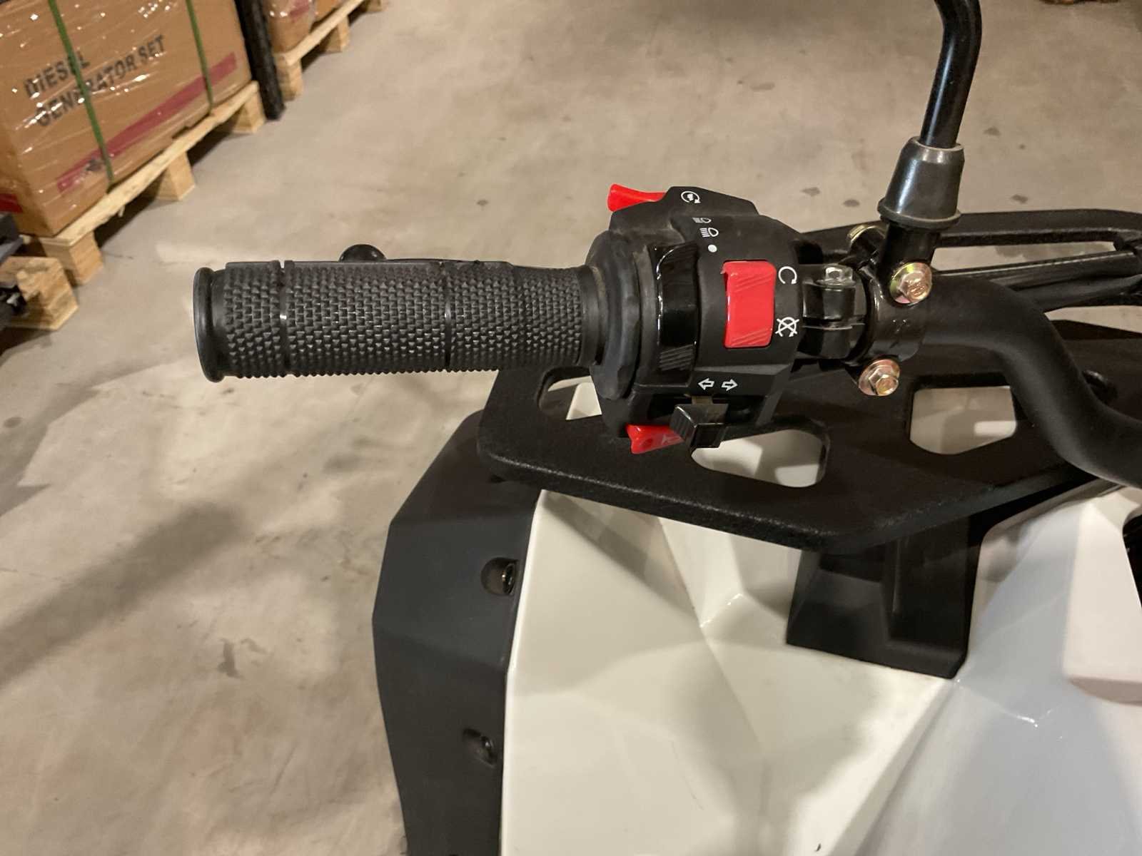 Voorzien van elektrische start; bandenmaat 10” inch; hydraulische schijfremmen; LCD scherm; 2 sleutels; ongebruikt in krat (transport afmeting 170x105x110 cm) Merk: Ultra Motocross Product type: Commander 200 Gewicht: 180kg Transmissie: Semi automaat Bouwjaar: 2024 Vermogen (pk): 12hp Cilinderinhoud: 200cc Brandstof: Benzine Kleur: WIt