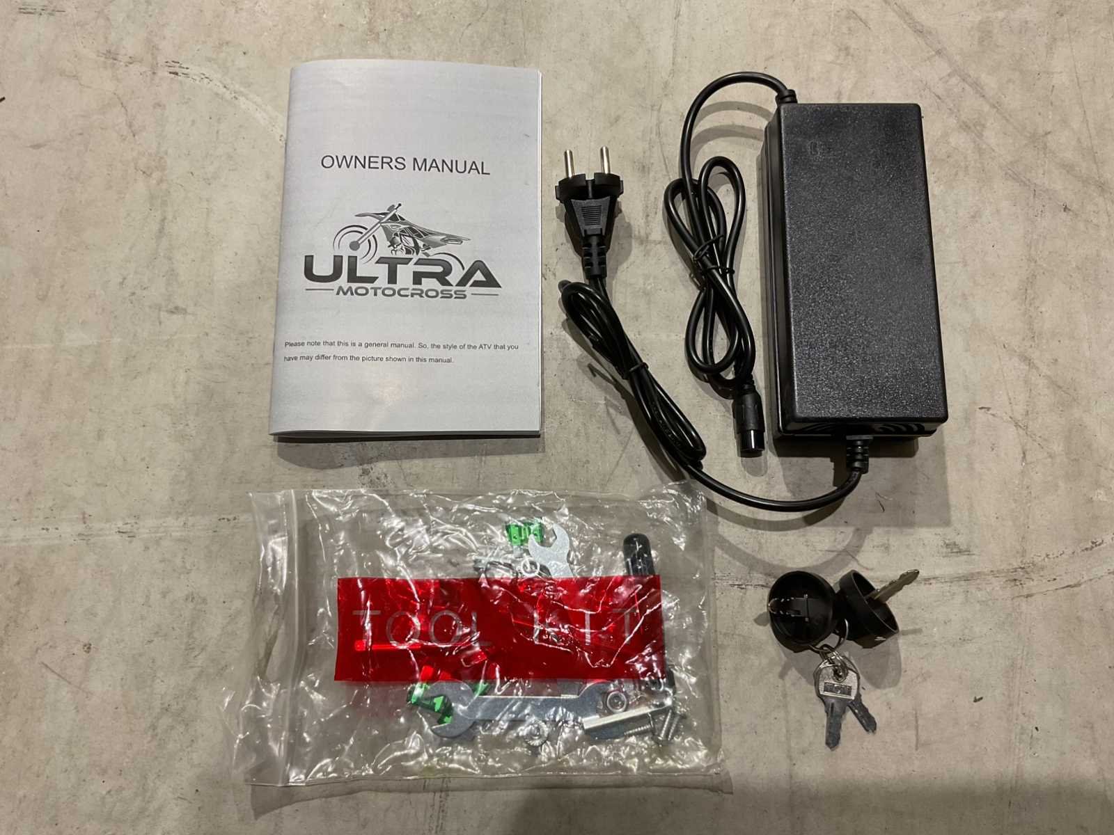 Voorzien van 1000W 48V elektrische motor; ouderen sleutel 3 verschillende snelheden; achterwielaandrijving; bandenmaat 6” inch; 2 sleutels; ongebruikt in doos (transport afmetingen 100x60x55 cm) Merk: Ultra Motocross Model: Met rekje Product type: ATX 1000 Gewicht: 60kg Aantal sleutels: 2 Transmissie: Automaat Bouwjaar: 2025 Vermogen (kW): 1kW Brandstof: Elektrisch