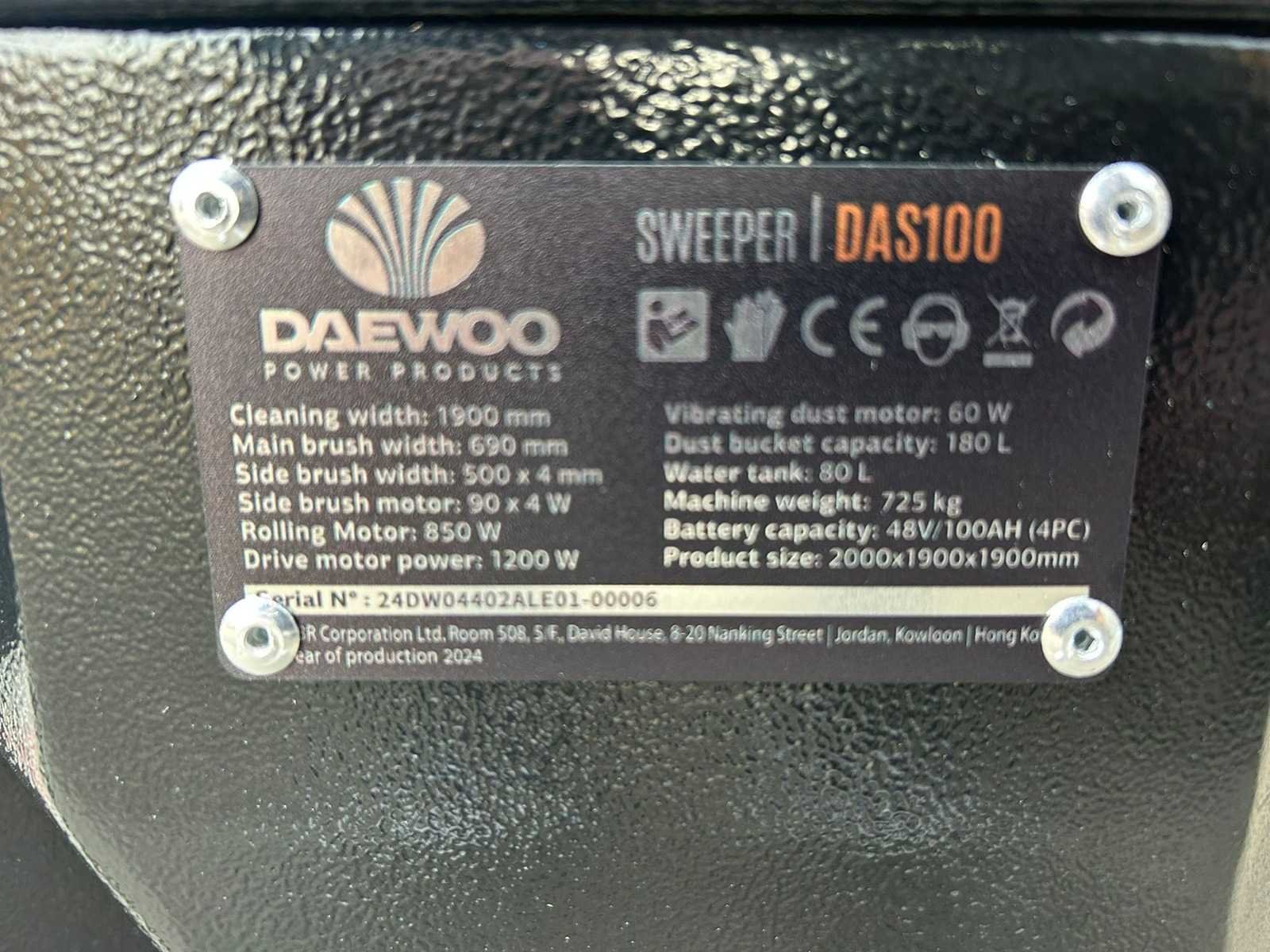 Werkbreedte: 1900mm; Met accu lader 230v; batterij capaciteit 48v/100AH 4stuks; opvangbak capaciteit 180 liter; watertank 80 liter; ongebruikt; verpakkingsmaat 2115 x 1325 x 2110mm;claxon;4 ledlampen voor; met waternevel sproeisysteem , antistof , dubbele veegborstel voor; wordt uitgeleverd in transportkrat; 5072 Merk: Daewoo Type: DAS100 Bouwjaar: 2025 Afgelezen urenstand: 0 Elektrisch aangedreven: true Brandstof: elektrisch Met oplader: true Eigen gewicht: 780kg Schoonwatertank: true Inhoud waterreservoir: 80l Werkbreedte: 1900mm Totale afmeting L: 2200mm Totale afmeting Breedte: 1900mm Totale afmeting Hoogte: 1890mm