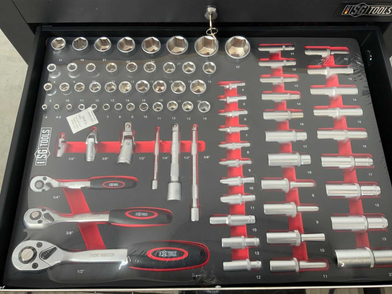 258 delig; schroevendraaiers; bitset; tangen; sleutels; etc; zwenkwielen met rem; 7 lades; 6 gevuld; Merk: Stahlgruppe Type: SG11 Bouwjaar: 2023 Aantal laden: 7 Met inhoud: true Eigen gewicht: 80kg Totale afmeting L: 760mm Totale afmeting Breedte: 460mm Totale afmeting Hoogte: 980mm
