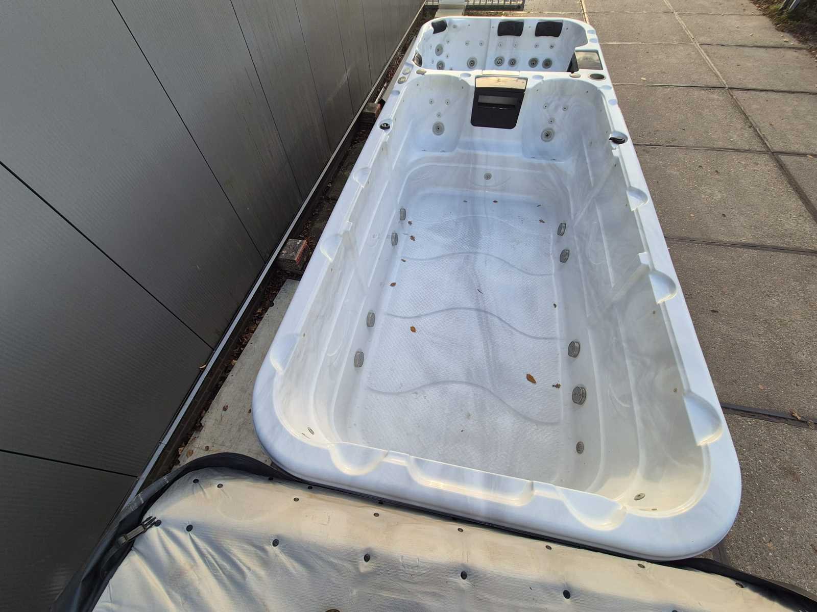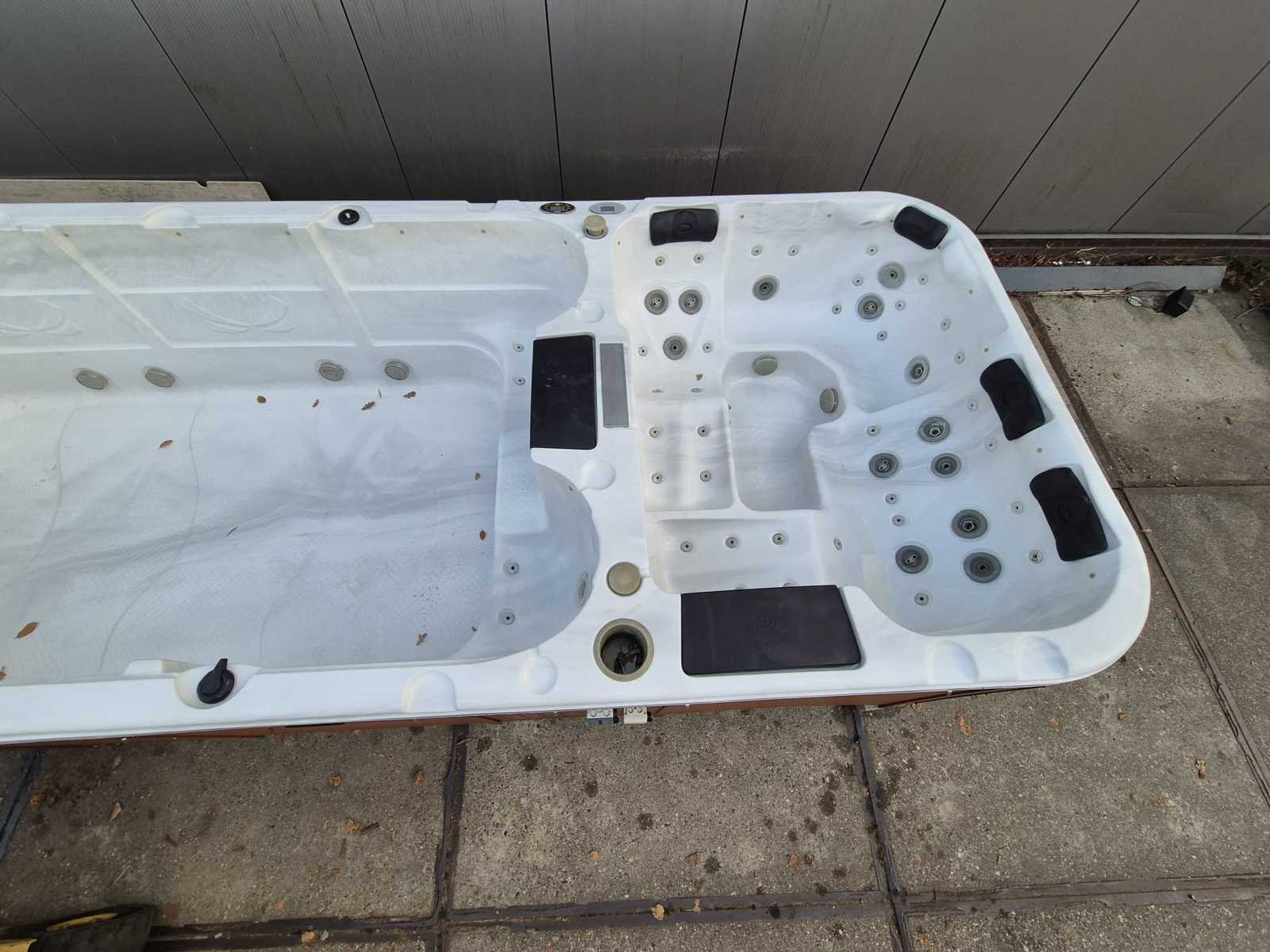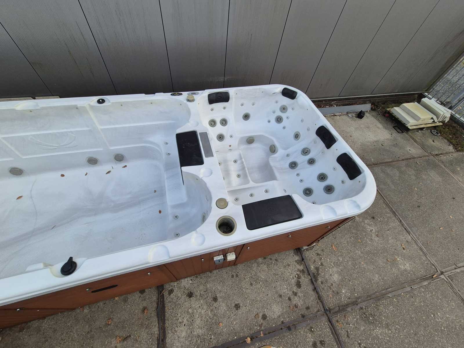Voorzien van jacuzzi gedeelte; 2 ligplaatsen; 4 zitplaatsen; waterval; nek/schouder massage; automatisch filtersysteem; speakers; wijnkoeler; kunststof omkasting; rol dek voor isolatie; zwemgedeelte voorzien van 2 zit plaatsen; jets om tegen in te zwemmen (Marge, geen BTW) Model: 15 persoons Product type: Dubbele cabine Verlichting: Ja Jets: 66 Aantal personen: 15 Lengte: 585cm Breedte: 225cm Hoogte: 123cm