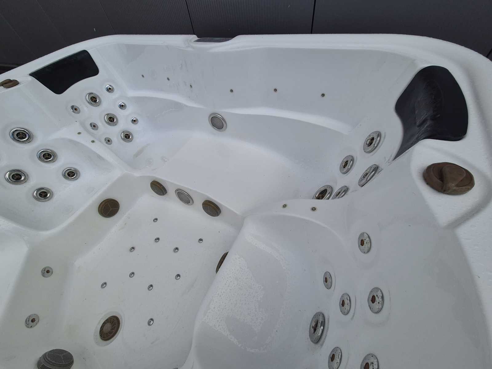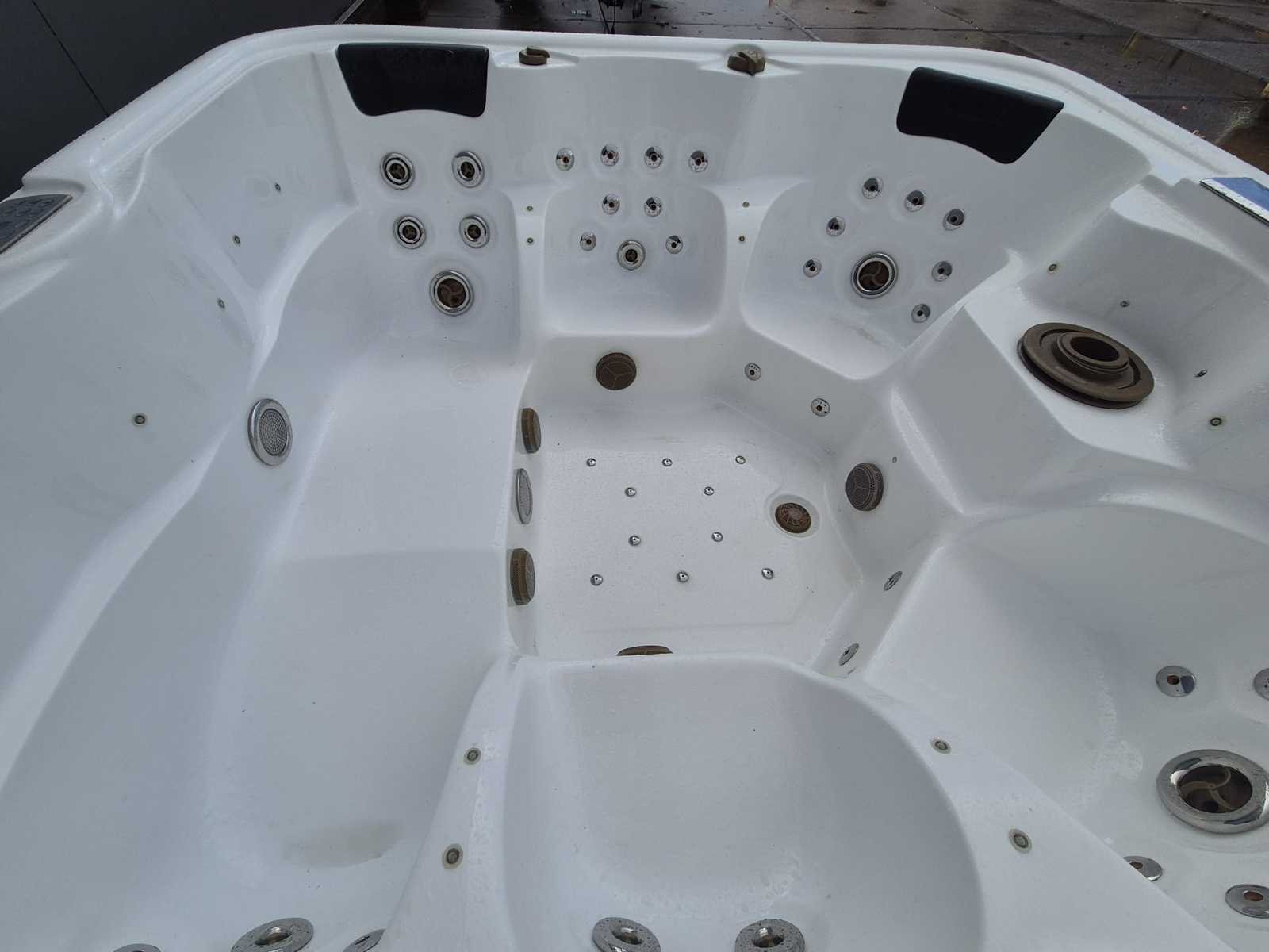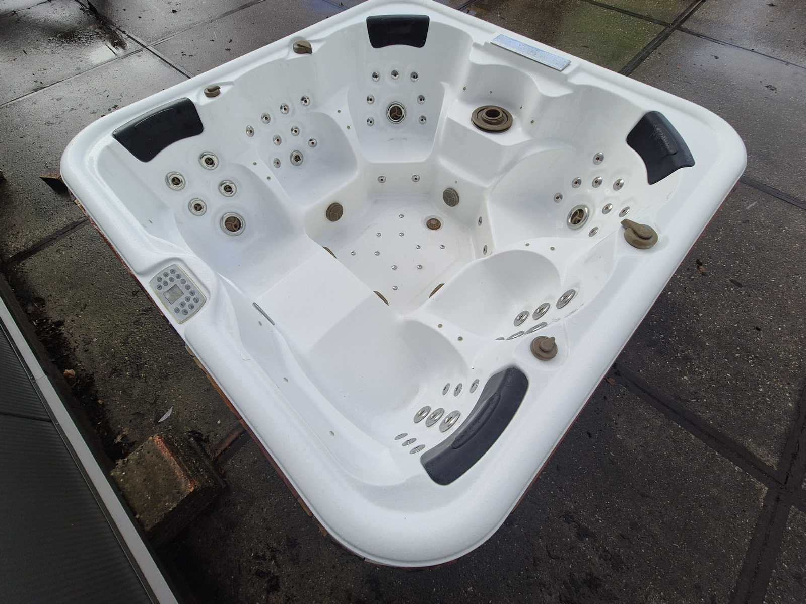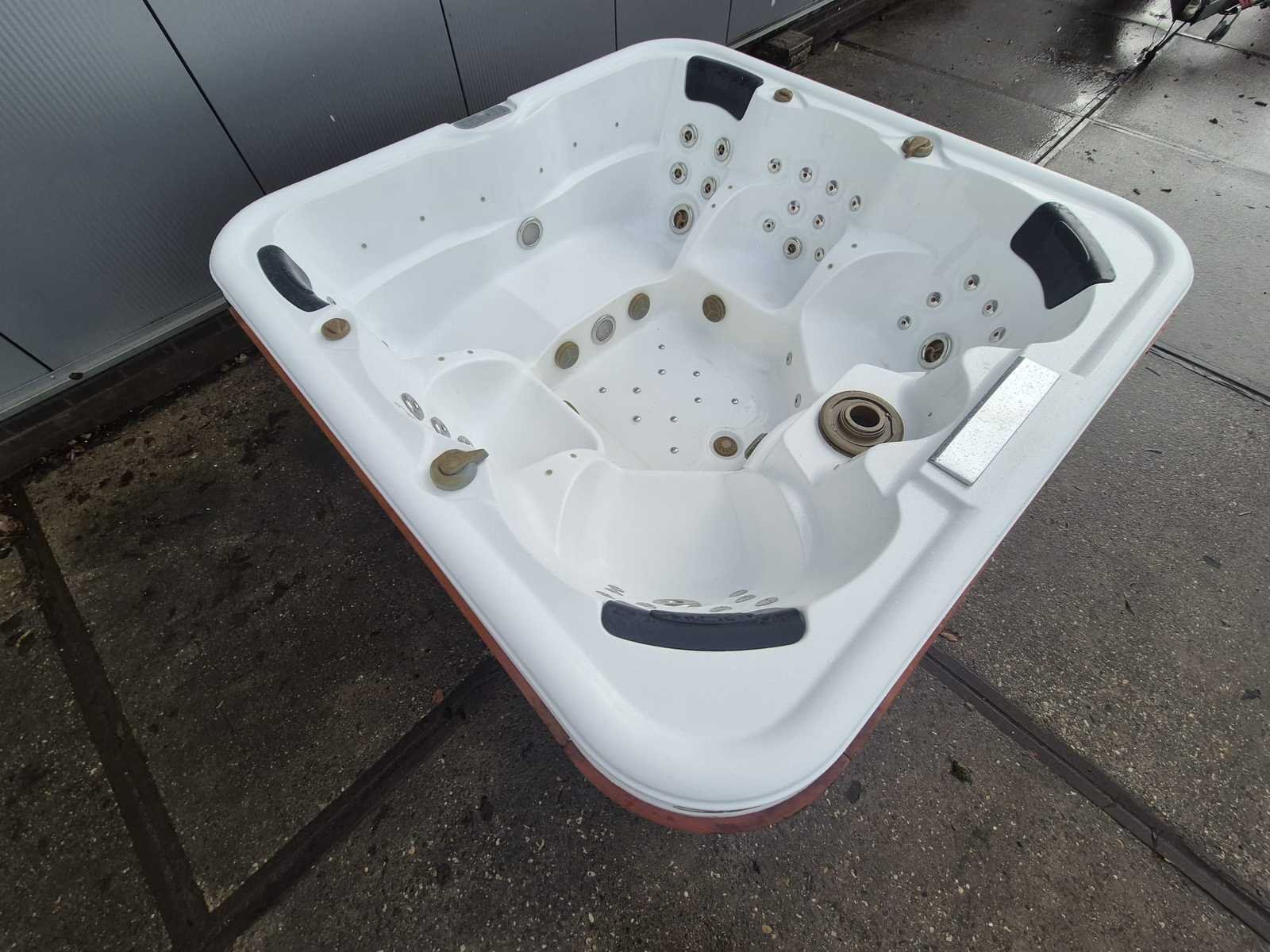 Voorzien van 2 ligplaatsen tegenover elkaar; 4 zitplaatsen; waterval; hoofdkussens; speakers; automatisch filtersysteem; RVS massage jets; Niet getest op functioneren (Marge, geen BTW) Model: 6 persoons Verlichting: Ja Jets: 50 Aantal personen: 6 Lengte: 210cm Breedte: 210cm Hoogte: 92cm