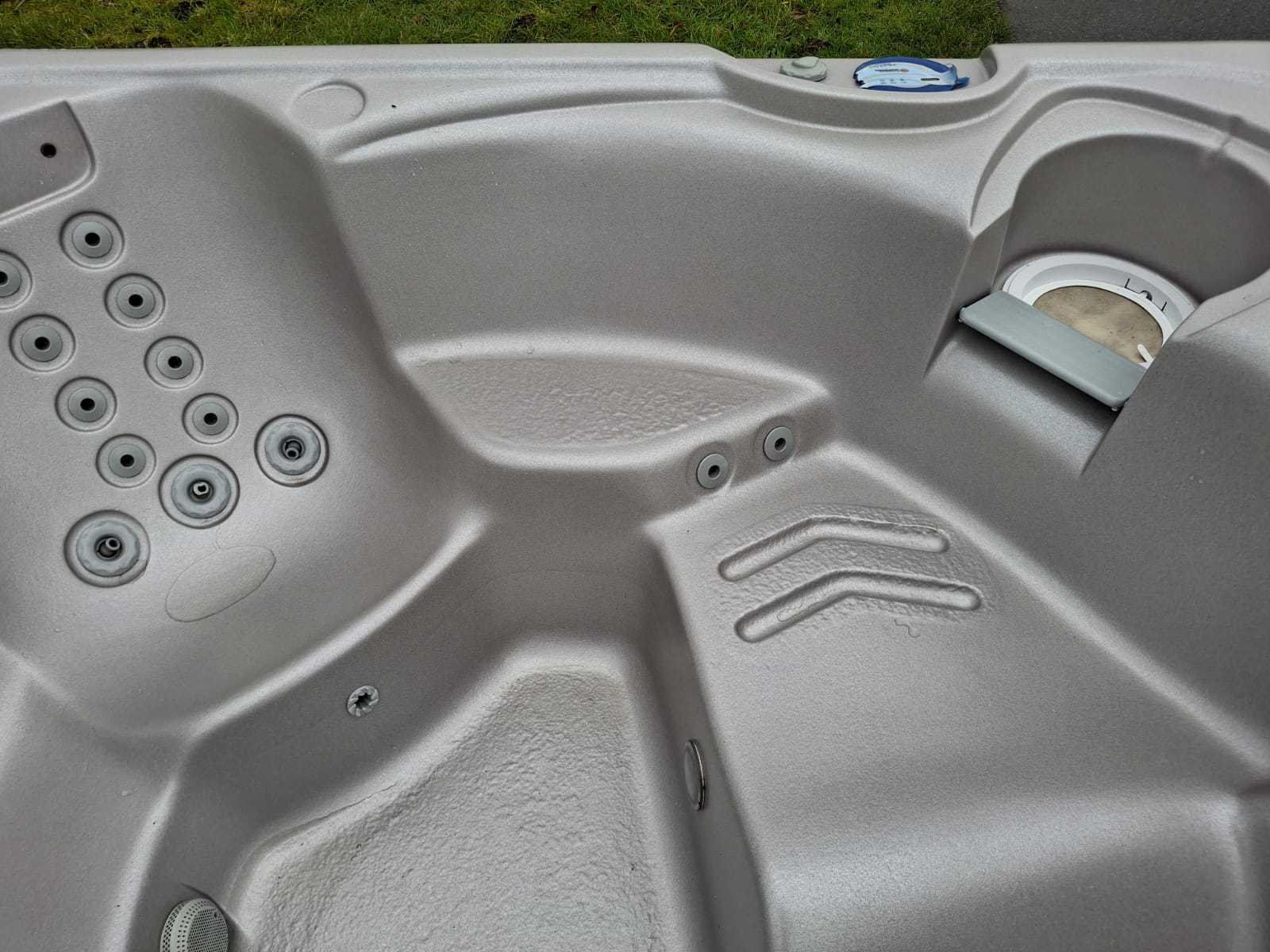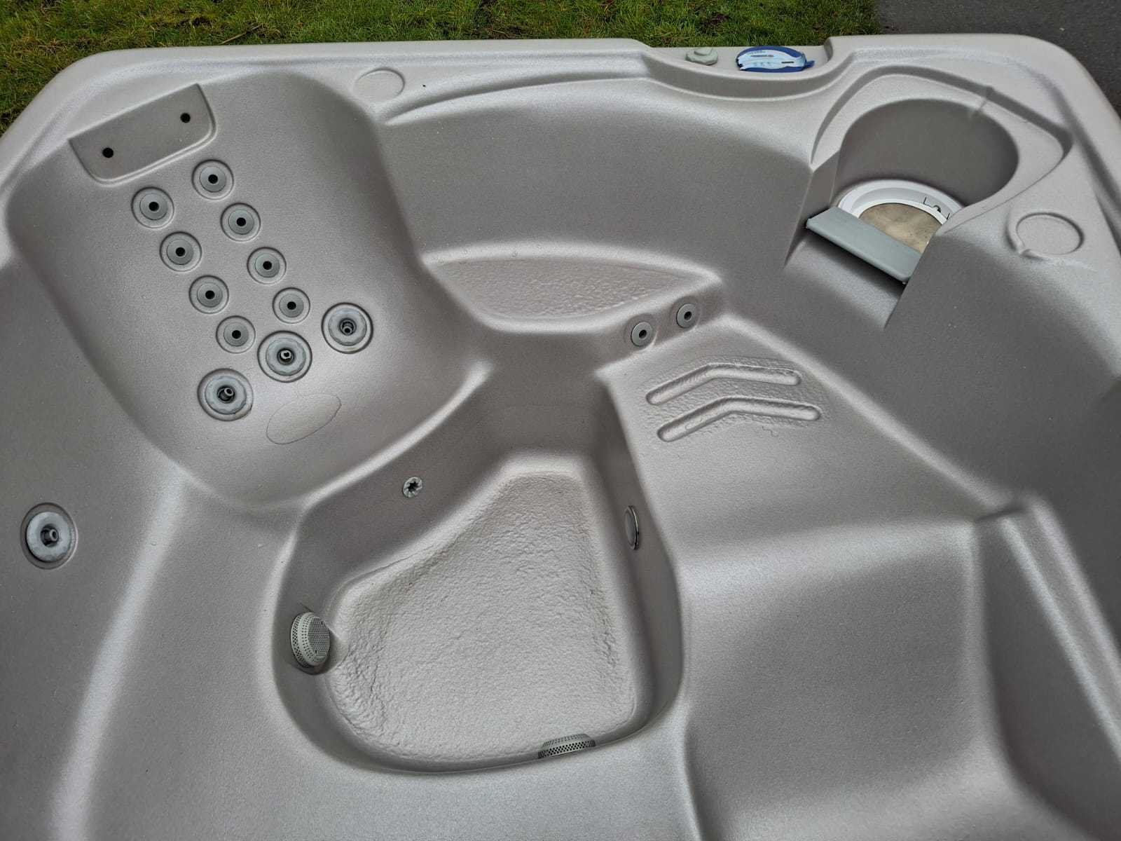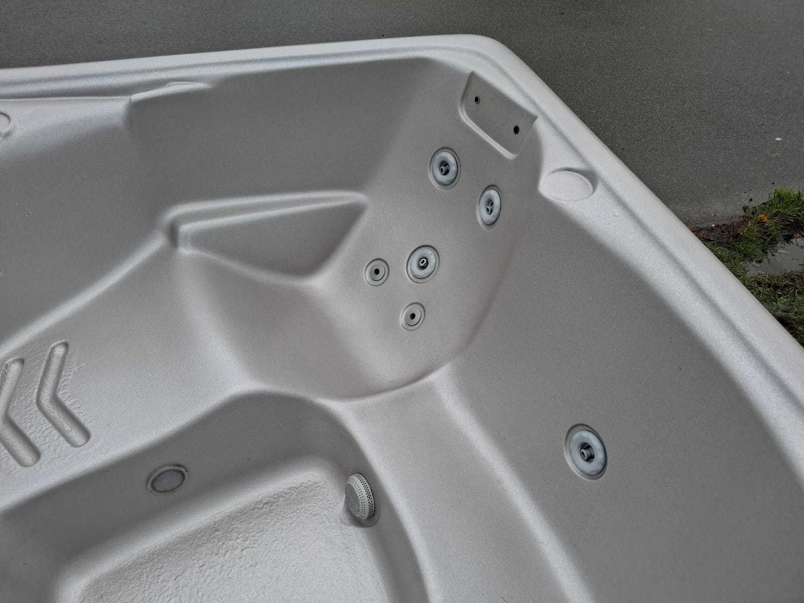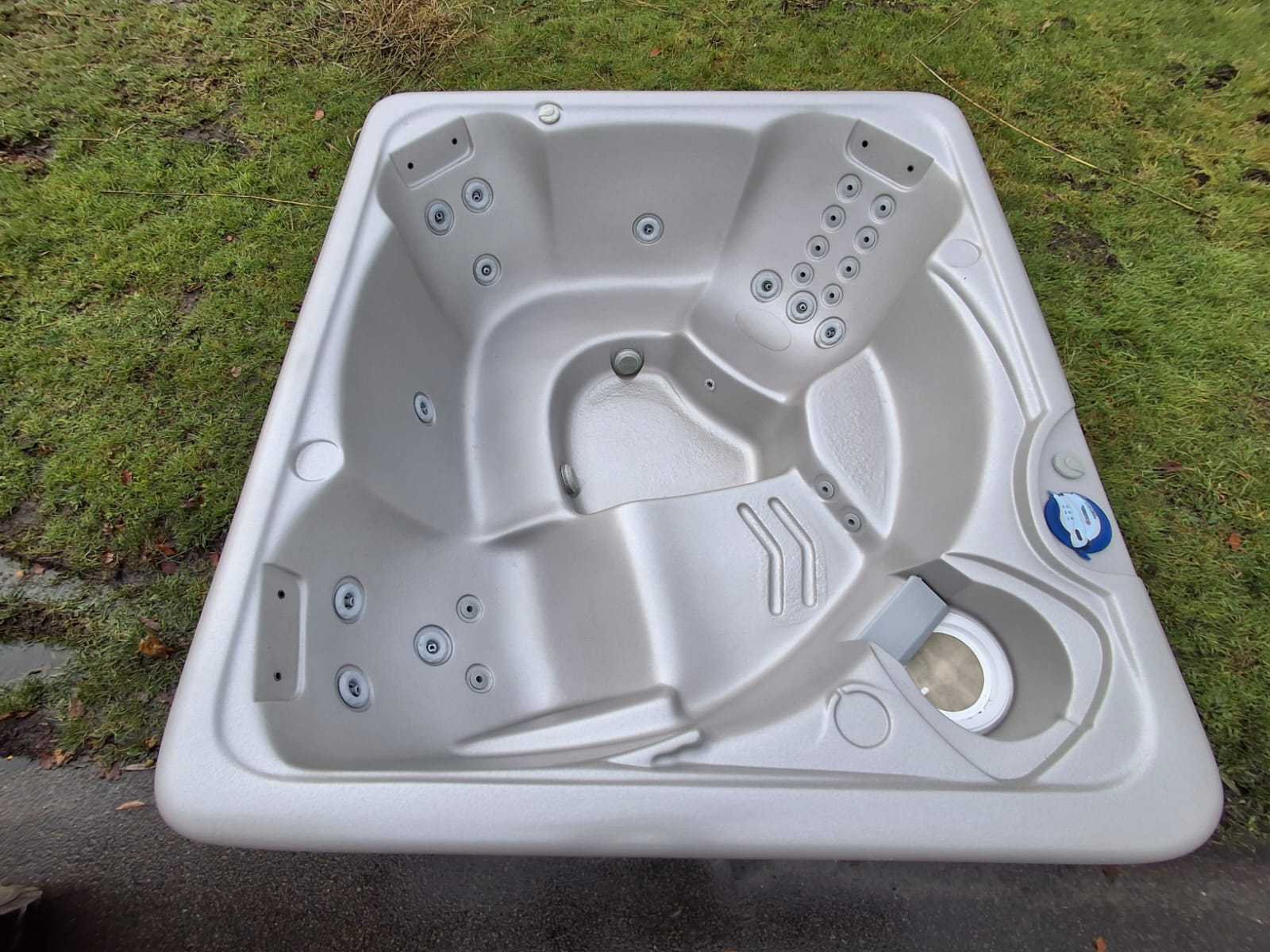 Voorzien van 1 ligplaats; 4 zitplaatsen; automatisch filtersysteem; kunststof omkasting; Niet getest op functioneren (Marge, geen BTW) Merk: California cooperage Model: 5 persoons Jets: 22 Aantal personen: 5 Lengte: 200cm Breedte: 200cm Hoogte: 74cm
