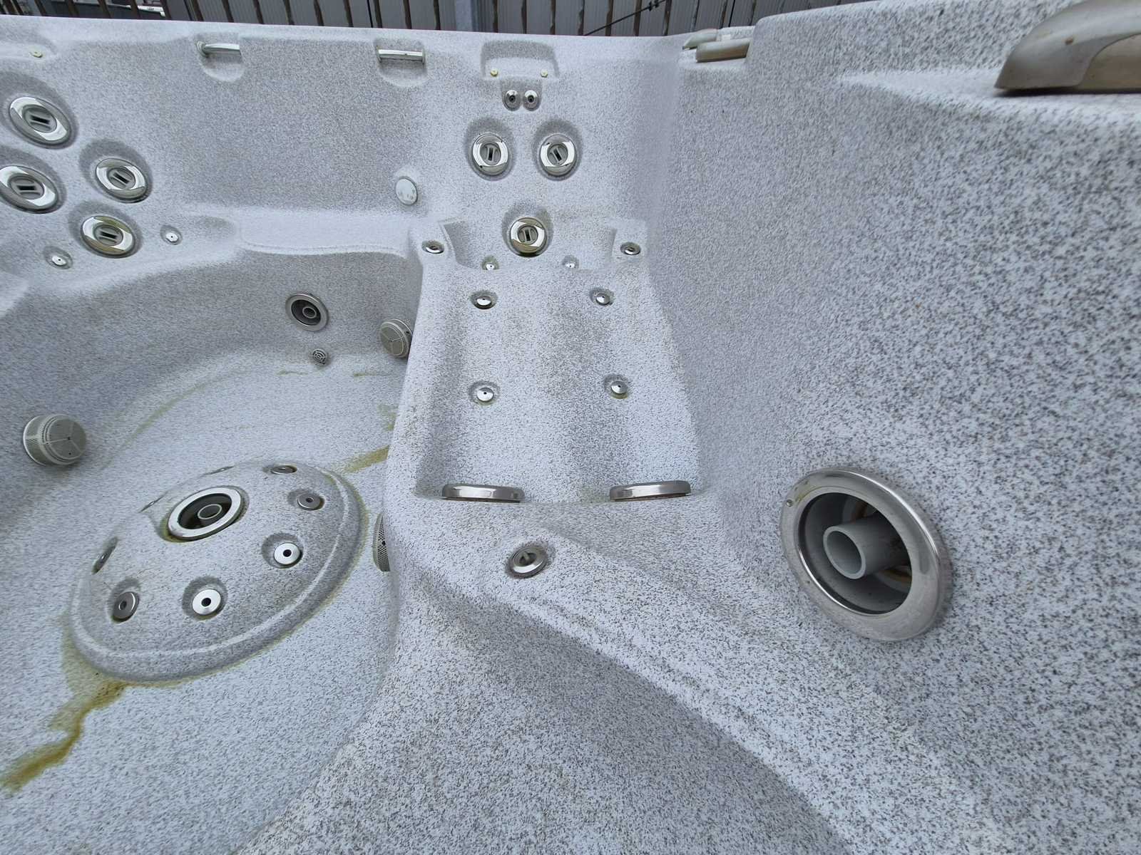 Voorzien van Amerikaanse jacuzzi; nek/schouder massage; 1 lig plaats; 3 zit plaatsen; automatisch filtersysteem; 2 watervallen; kunststof omkasting; niet getest op functioneren (Marge, geen BTW) Merk: Sundance Spa Model: 4 persoons Verlichting: Ja Jets: 51 Aantal personen: 4 Lengte: 270cm Breedte: 230cm Hoogte: 108cm