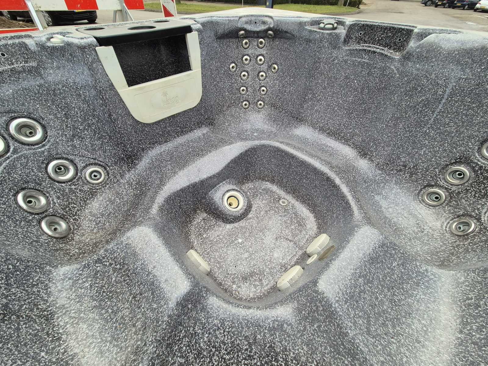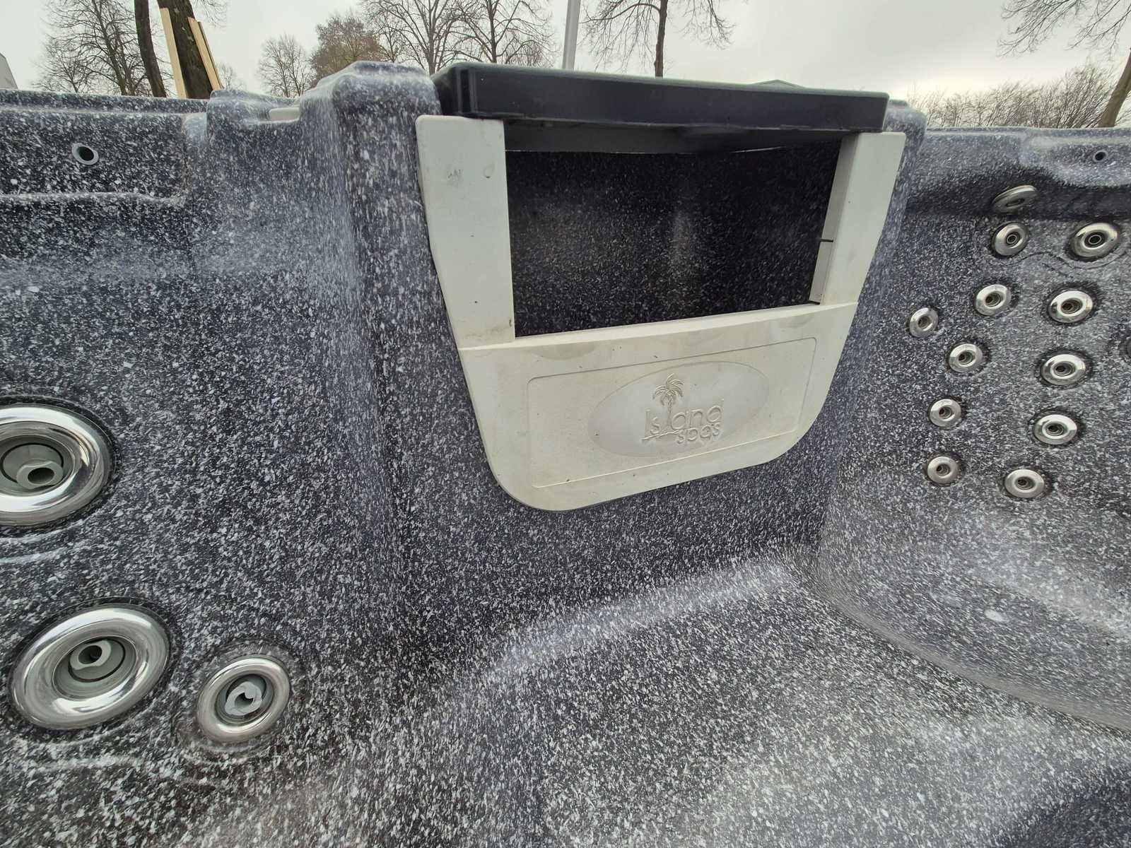 Voorzien van 7 zitplaatsen; kunststof omkasting; beker houder; automatisch filtersysteem; Niet getest op functioneren (Marge, geen BTW) Merk: Island spa Model: 7 persoons Verlichting: Ja Jets: 36 Aantal personen: 7 Lengte: 210cm Breedte: 210cm Hoogte: 95cm