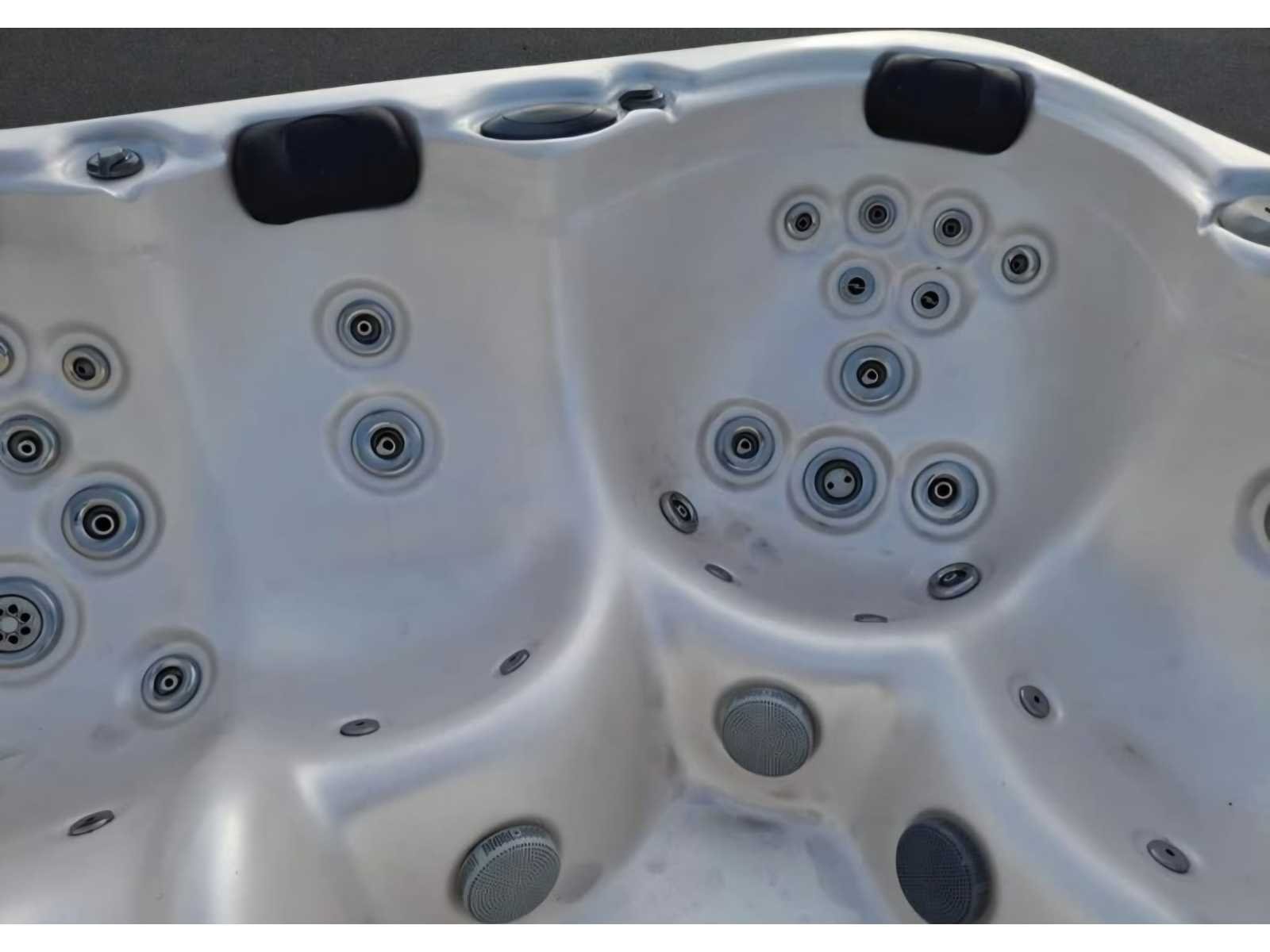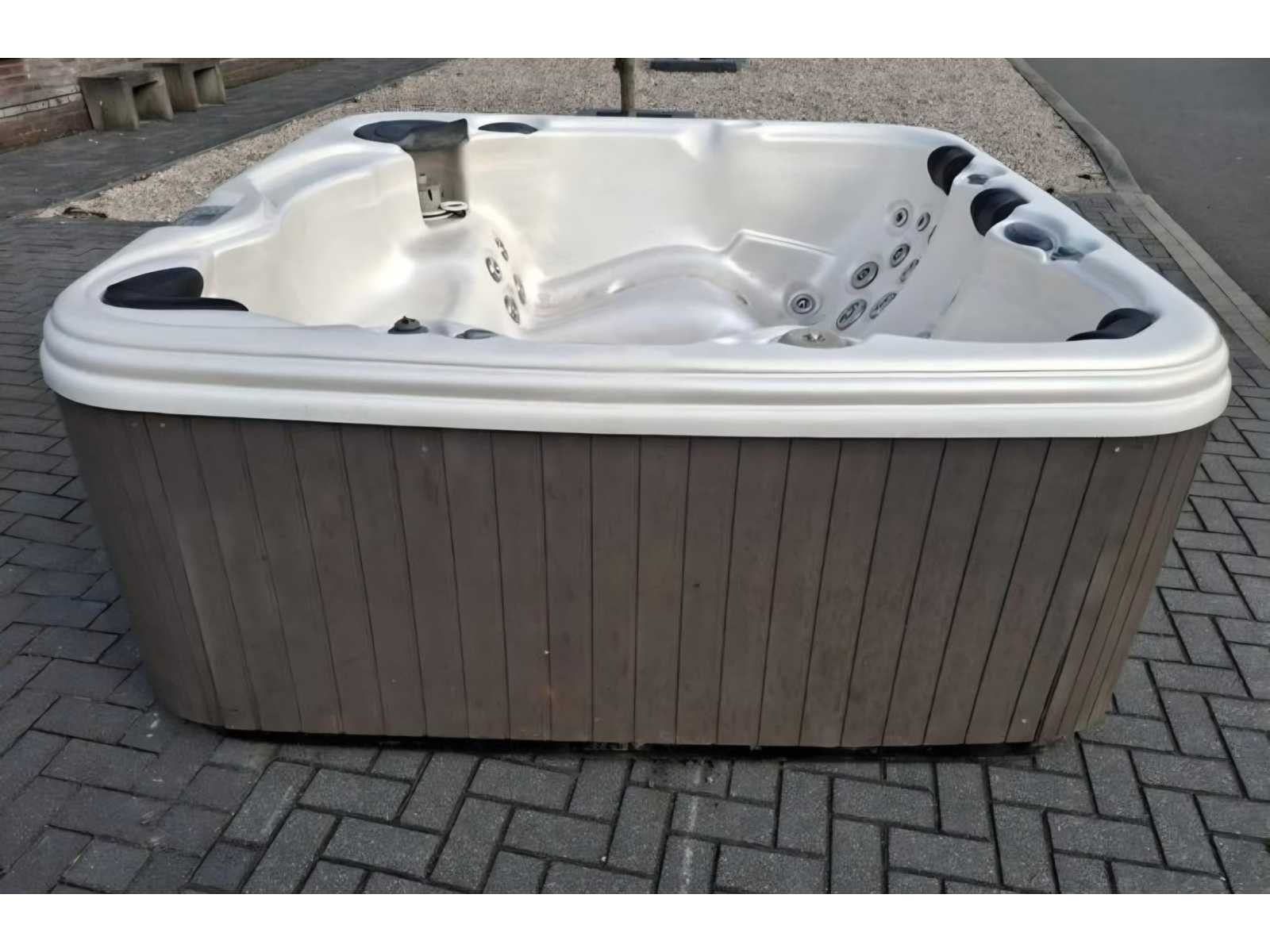 Voorzien van waterval; speakers; verlichting; 4 zitplaatsen; 1 ligplaats; hoofdkussens; kunststof omkasting; automatisch filtersysteem; Niet getest op functioneren (Marge, geen BTW) Model: 5 persoons Verlichting: Ja Jets: 52 Aantal personen: 5 Lengte: 220cm Breedte: 220cm Hoogte: 98cm