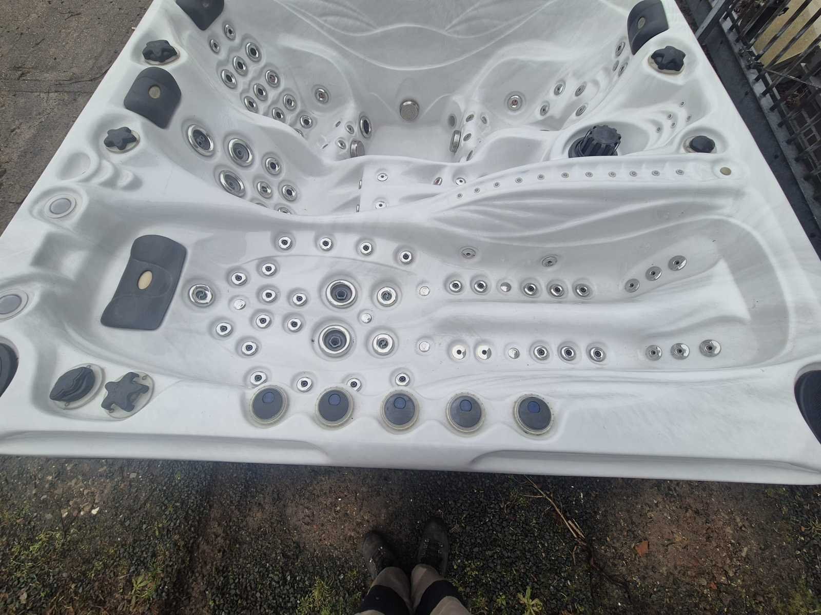 Voorzien van 2 ligplaatsen; 2 zitplaatsen; hoofdkussens; Amerikaanse spa; kunststof omkasting; fonteinen; buitenkant verlichting; Niet getest op functioneren (Marge, geen BTW) Merk: Sunbelt spas Model: 4 persoons Verlichting: Ja Jets: 89 Aantal personen: 4 Lengte: 230cm Breedte: 230cm Hoogte: 95cm