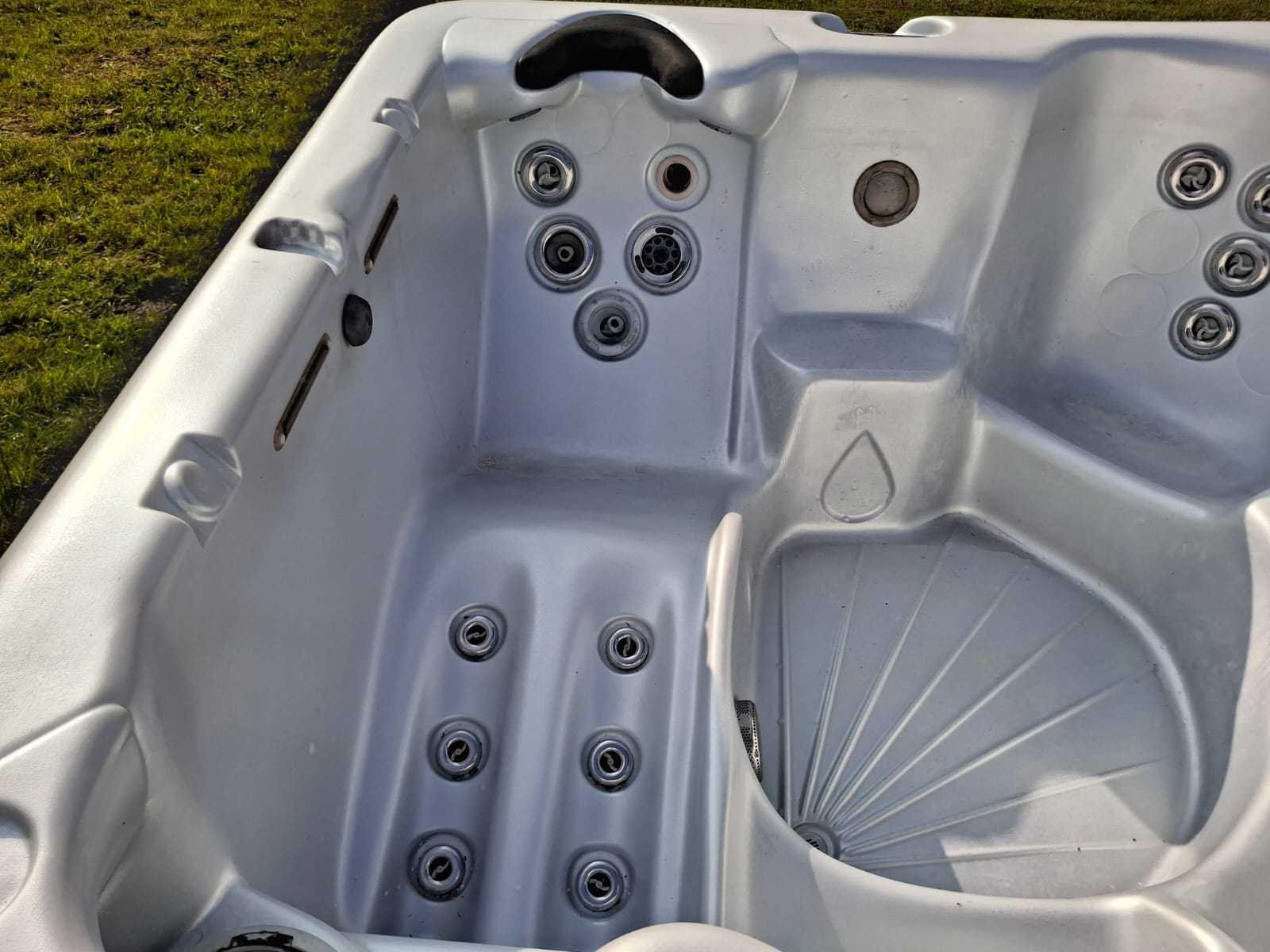 Voorzien van speakers; 2 watervallen; 4 zitplaatsen; 1 ligplaats; Balboa besturing; nek massage; Niet getest op functioneren (Marge, geen BTW) Merk: Balboa Model: 5 persoons Verlichting: Ja Jets: 20 Aantal personen: 5 Lengte: 210cm Breedte: 210cm Hoogte: 92cm