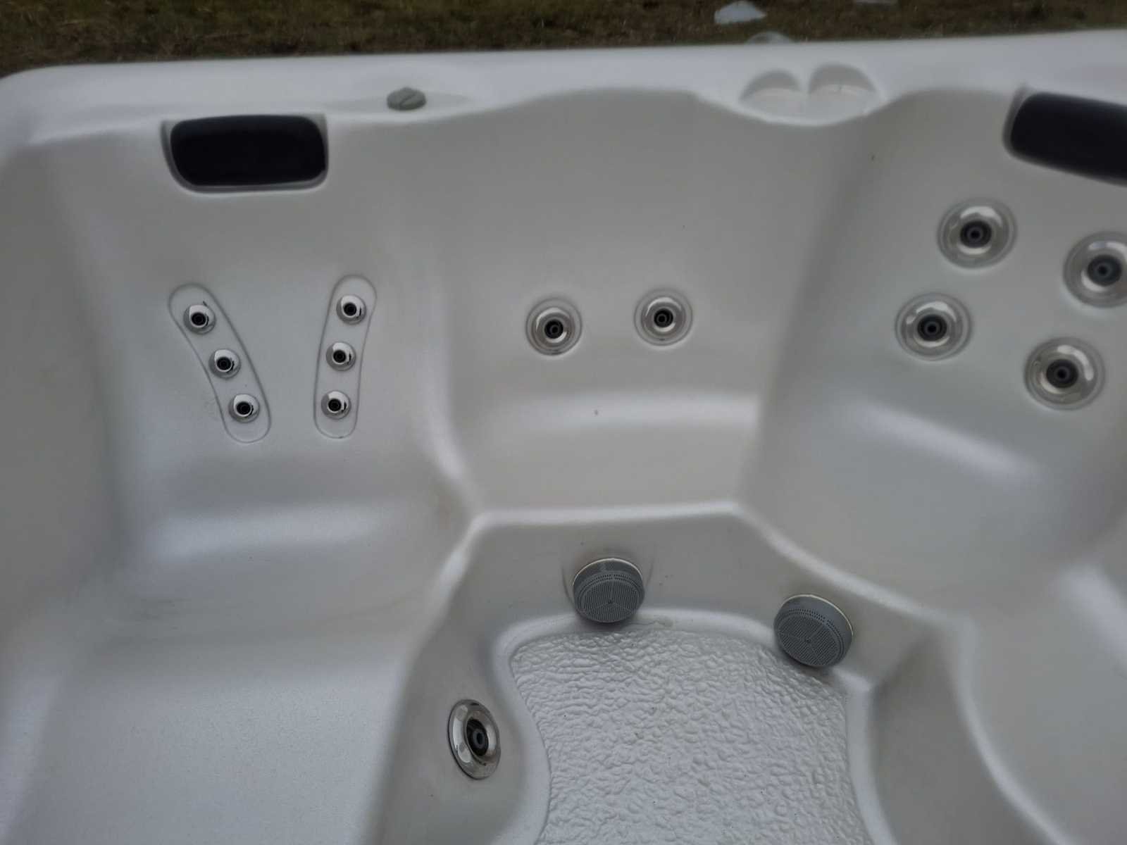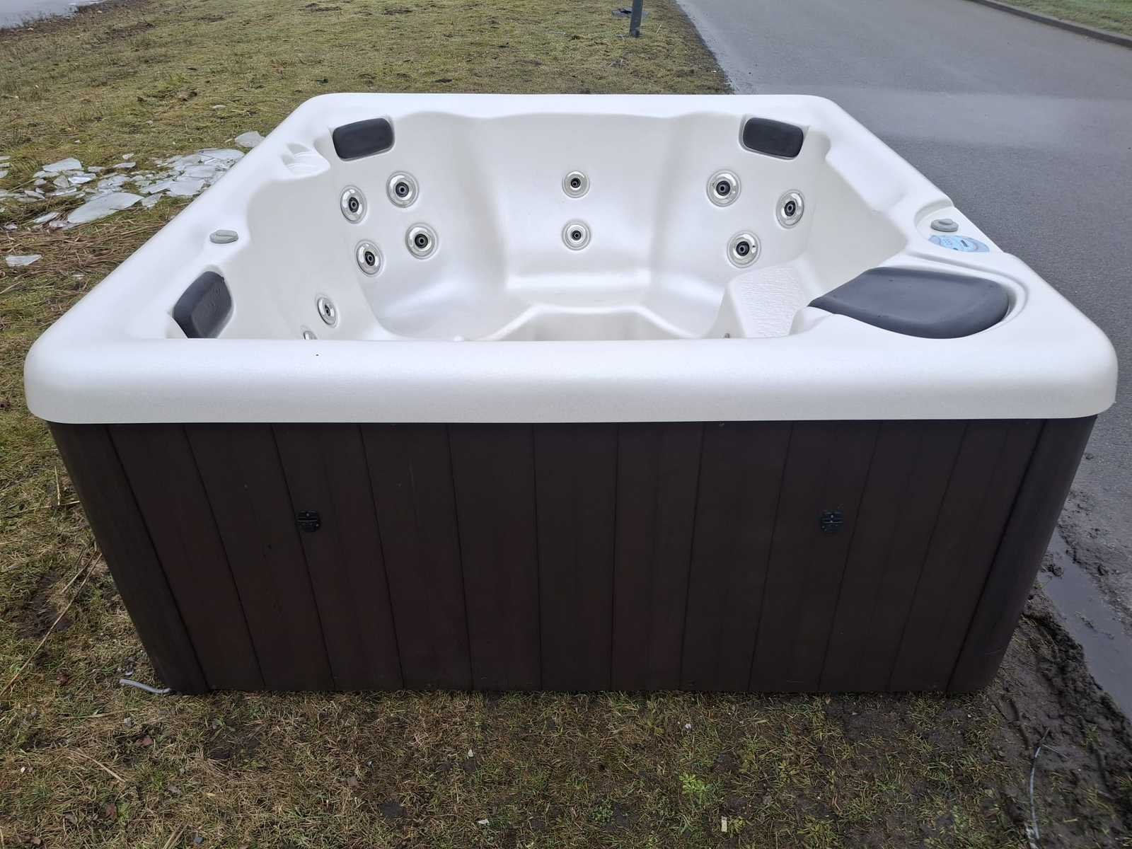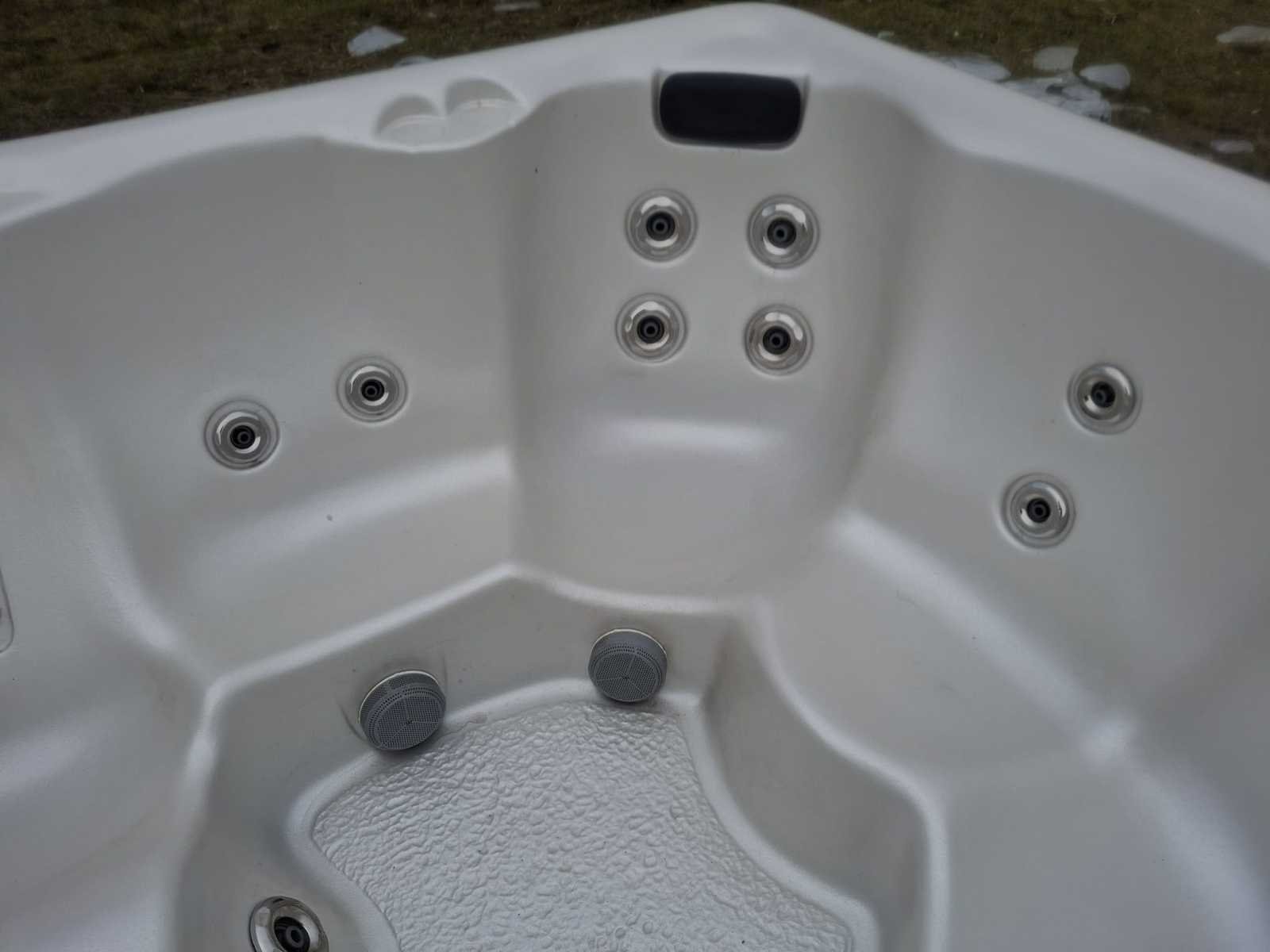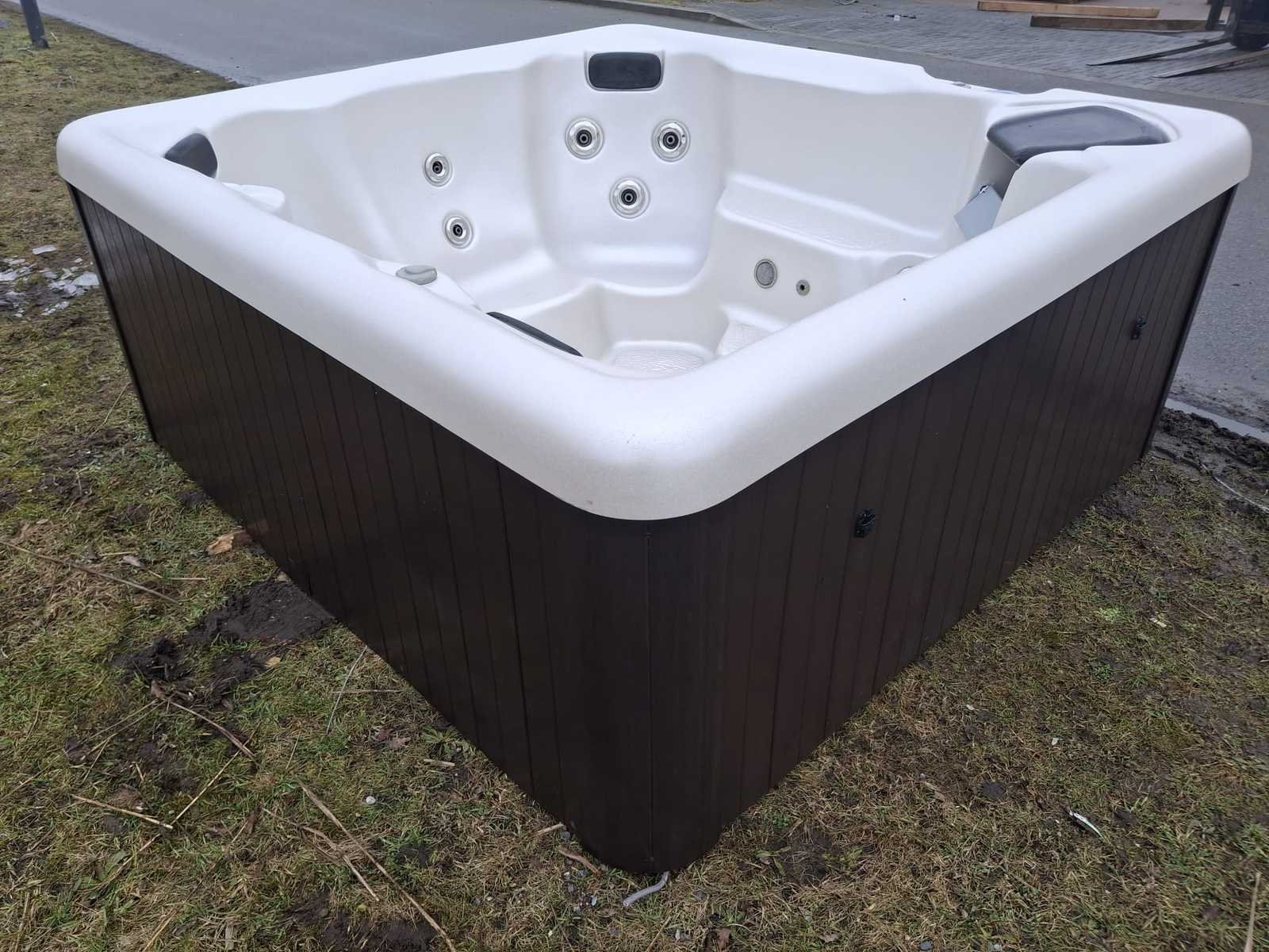 Voorzien van 1 ligplaatsen; 4 zitplaatsen; RVS massage jets; kunststof omkasting; hoofdkussens; automatisch filtersysteem; Niet getest op functioneren (Marge, geen BTW) Merk: California cooperage Model: 5 persoons Verlichting: Ja Jets: 18 Aantal personen: 5 Lengte: 205cm Breedte: 195cm Hoogte: 84cm