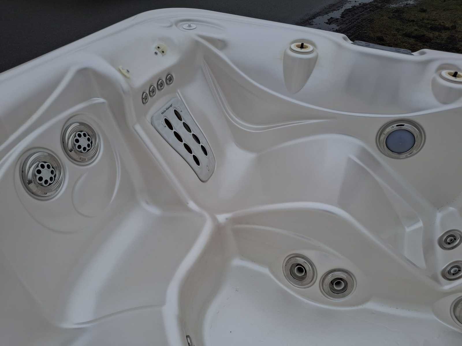 Voorzien van 1 ligplaatsen; 4 zitplaatsen; fonteinen; RVS massagejets; kunststof omkasting; automatisch filtersysteem; Niet getest op functioneren (Marge, geen BTW) Merk: Hotspring Model: 5 persoons Verlichting: Ja Jets: 34 Aantal personen: 5 Lengte: 220cm Breedte: 220cm Hoogte: 92cm