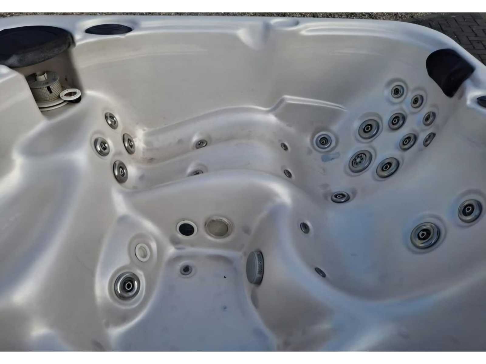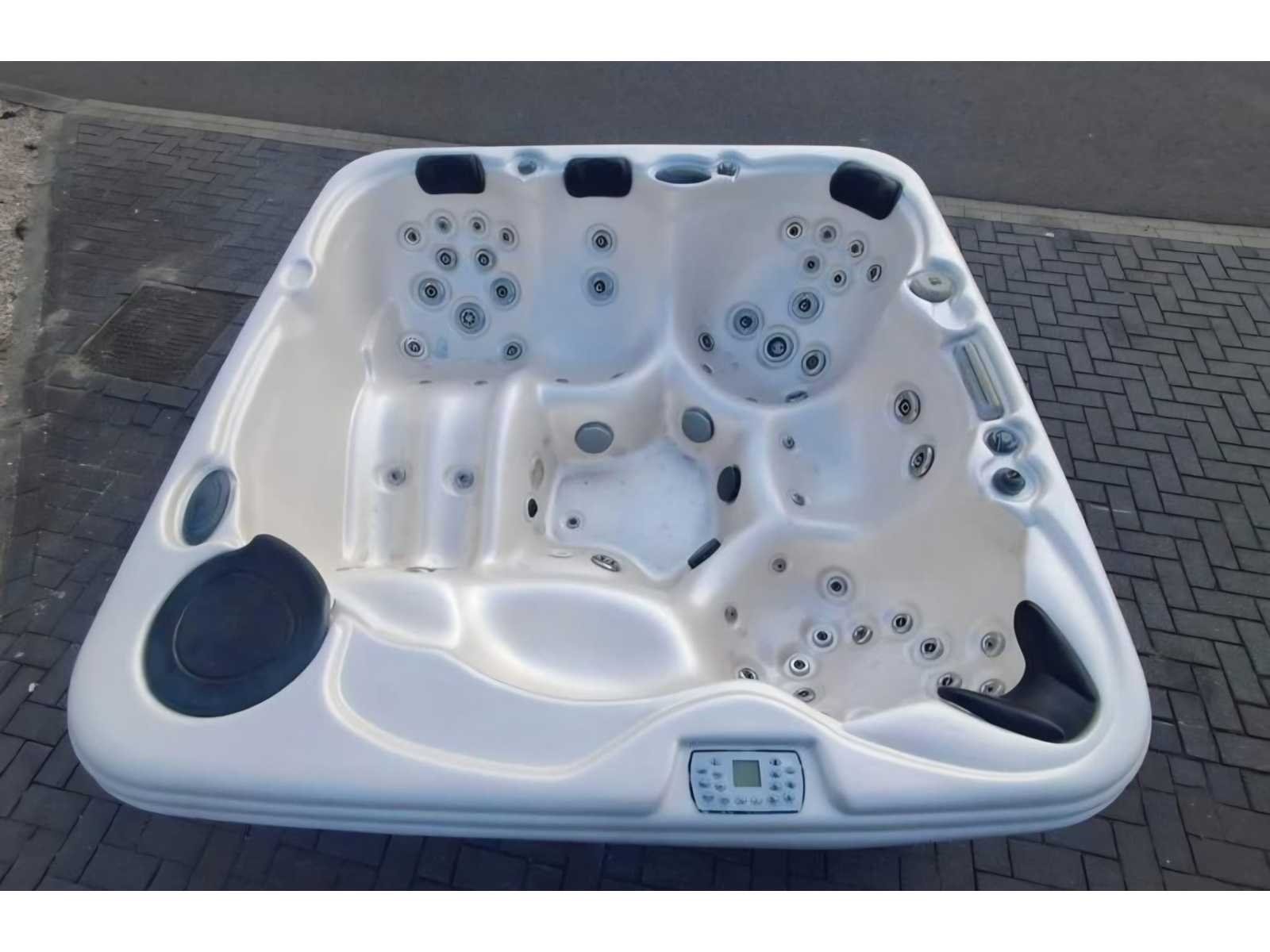 Voorzien van waterval; speakers; verlichting; 4 zitplaatsen; 1 ligplaats; hoofdkussens; kunststof omkasting; automatisch filtersysteem; Niet getest op functioneren (Marge, geen BTW) Model: 5 persoons Verlichting: Ja Jets: 52 Aantal personen: 5 Lengte: 220cm Breedte: 220cm Hoogte: 98cm