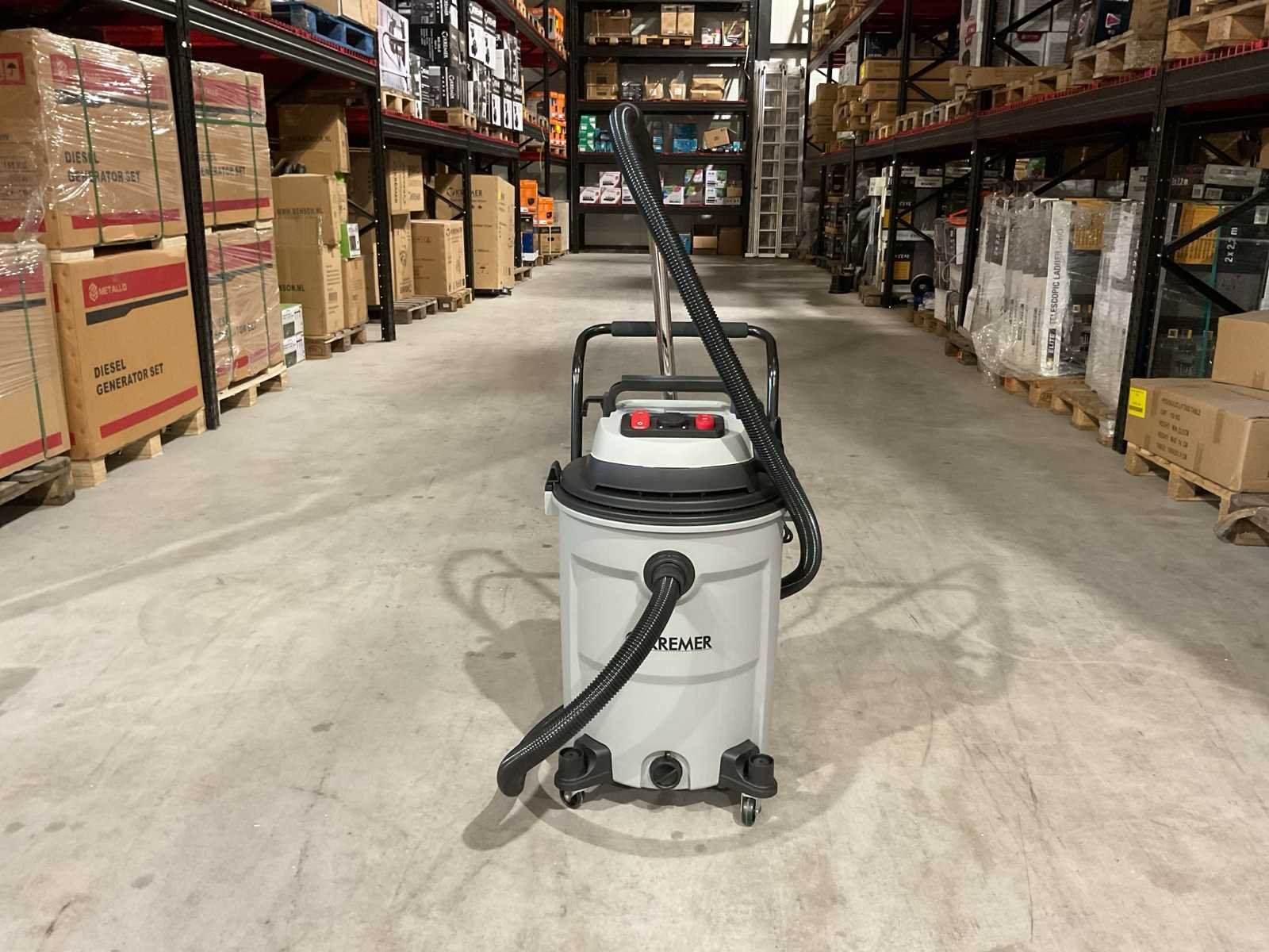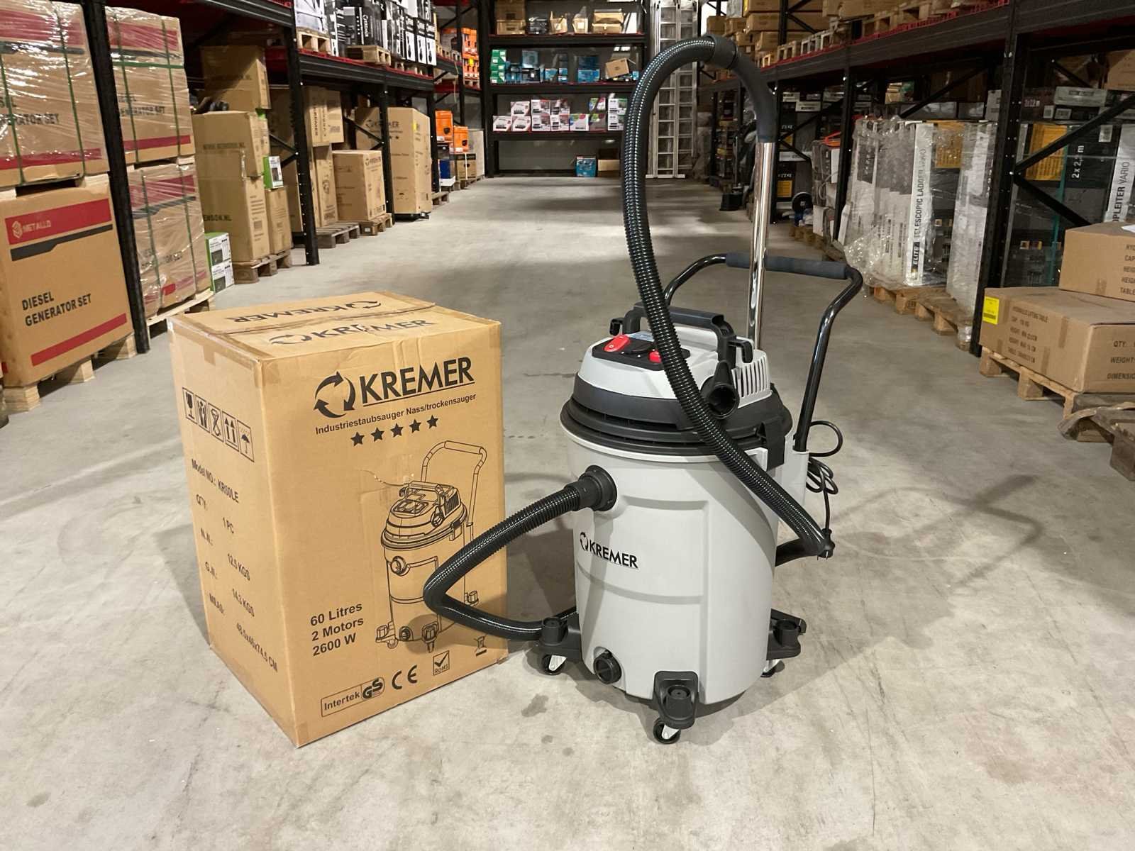 Voorzien van; 4 zwenkwielen; Nat- en droog stofzuiger; Inhoud 60 Liter; Kunststof ketel; 2 Motoren onafhankelijk; 3400W; Blaasfunctie; Stekkerdoos; Stofzuiger slang; Externe machine start; Aflaat dop; 12,5 kg; Ongebruikt in doos (Afmeting transport verpakking 485 x 460 x 745 mm 14,3 kg) Merk: Kremer Type: KR60LE Bouwjaar: 2025 Vermogen: 2600W Zakloos: true Nat/droog zuiger: true Stopcontact: true Aansluiting: 220V